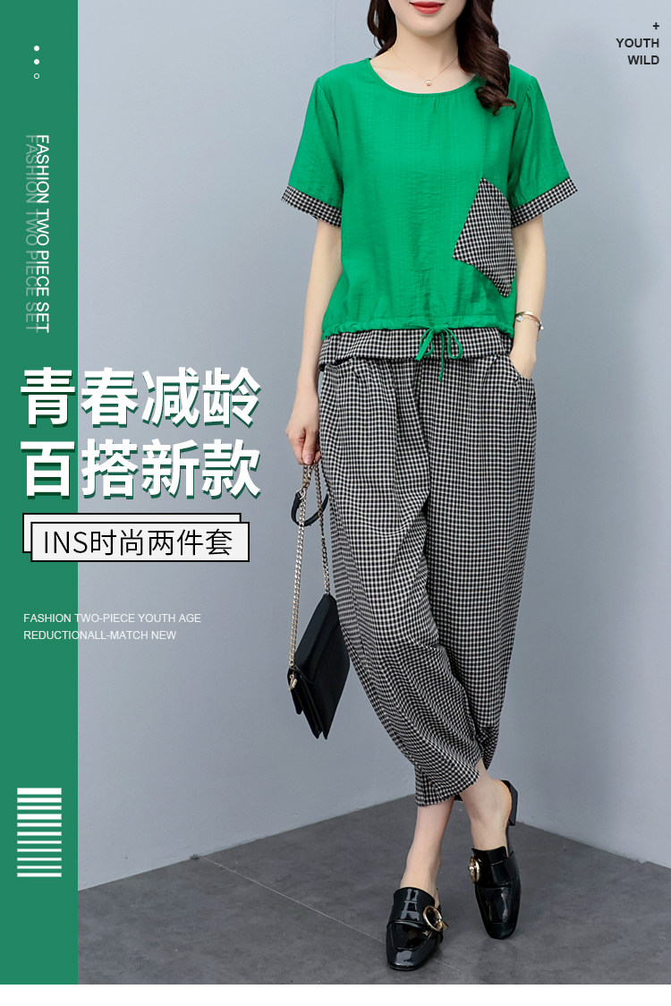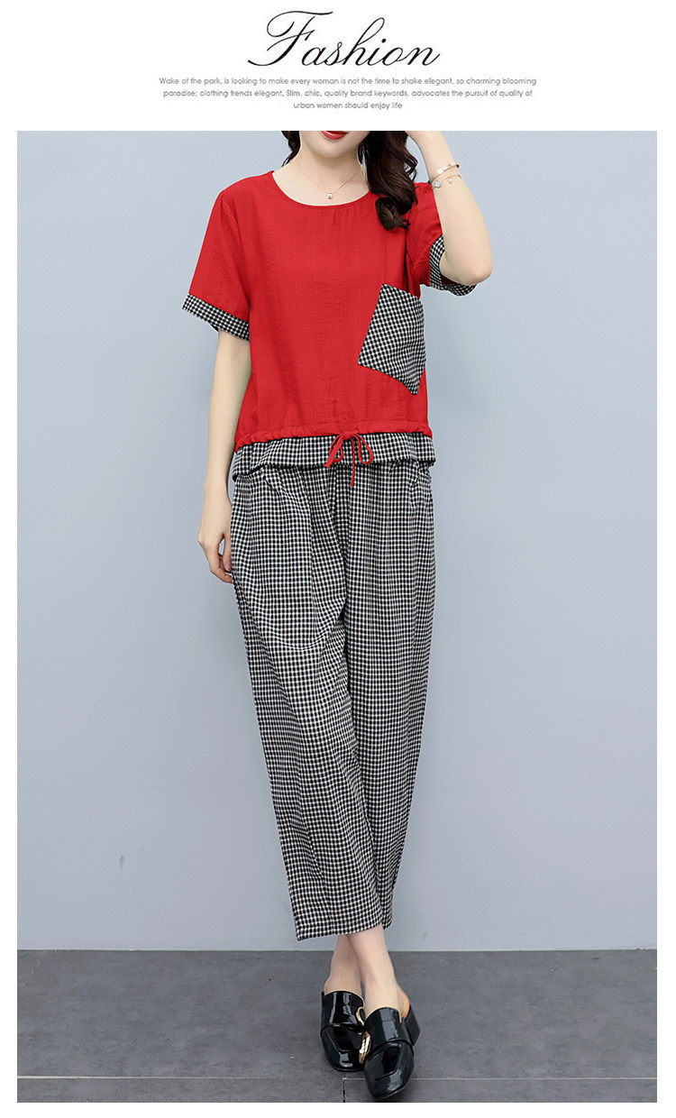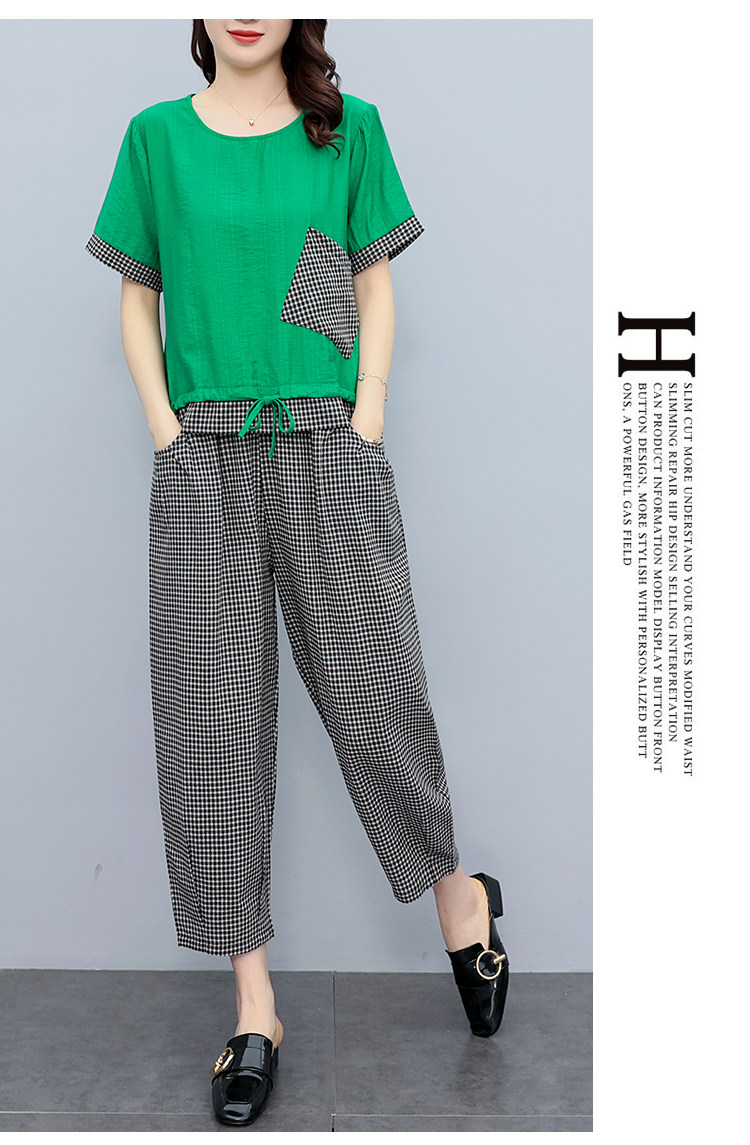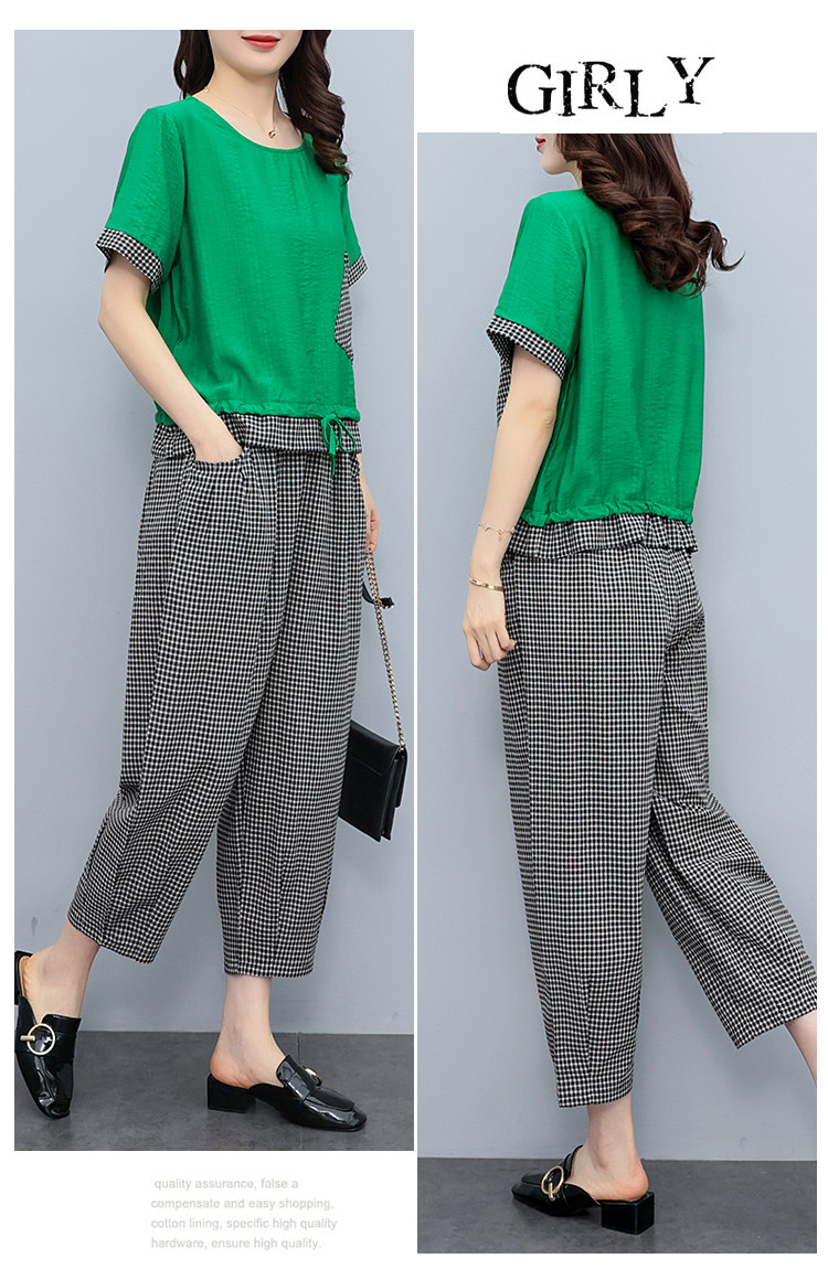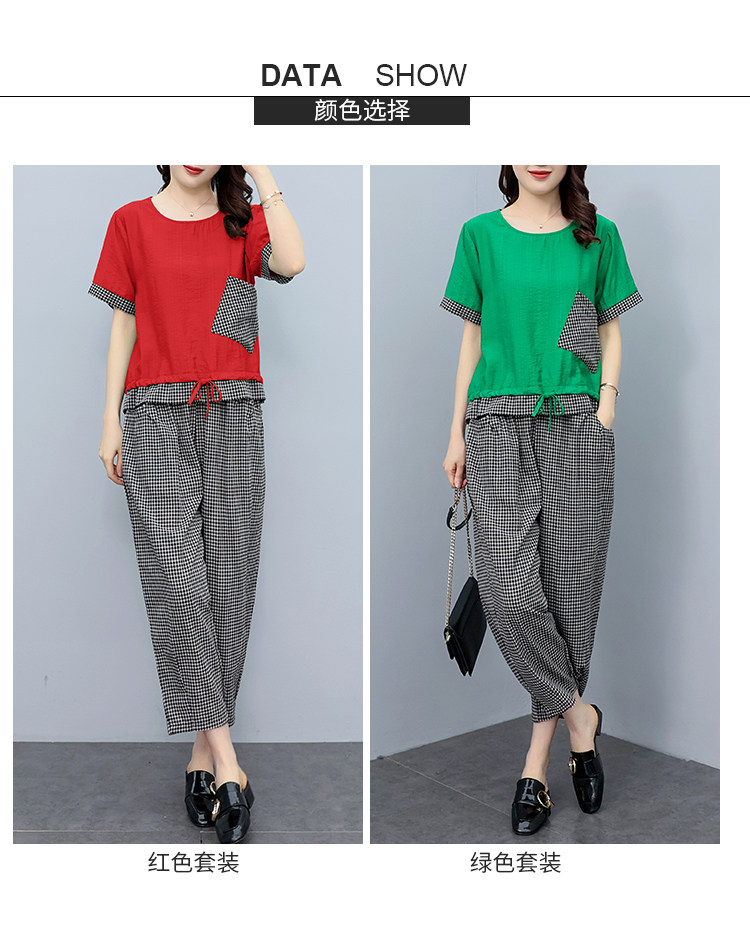 RM19344#大码女装2023年新款胖mm减龄遮肚休闲短袖九分裤套装