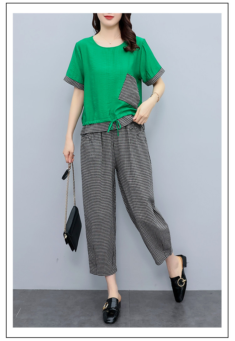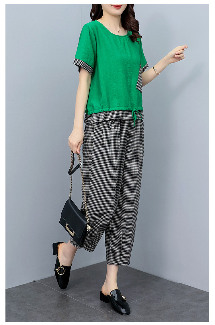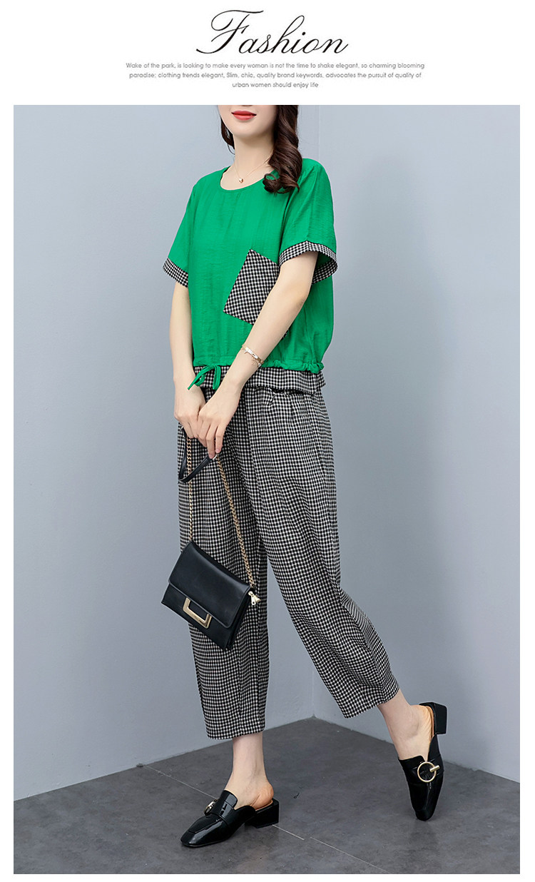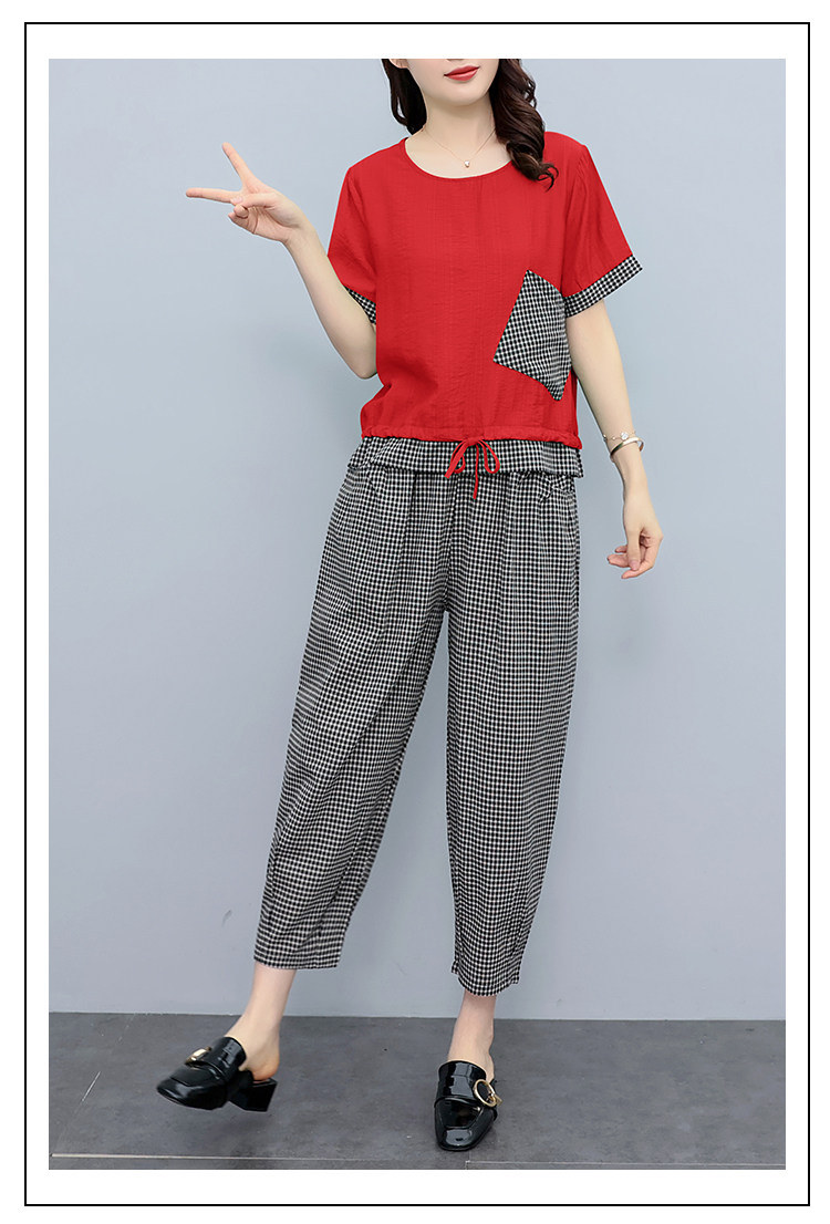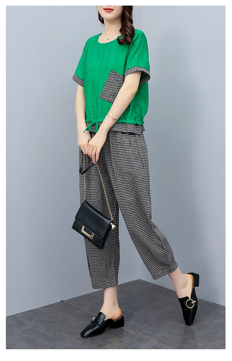 RM19344#大码女装2023年新款胖mm减龄遮肚休闲短袖九分裤套装