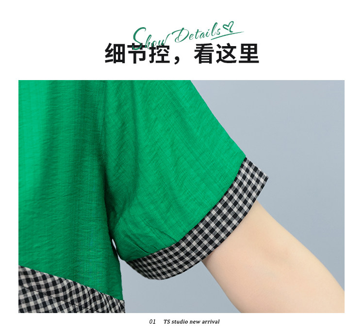 RM26457#夏季新款纯棉短袖印花大码200斤拼色宽松女装中长T恤