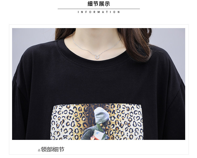 RM28780#氨纶猫咪印花圆领修身显瘦长袖打底衫女潮