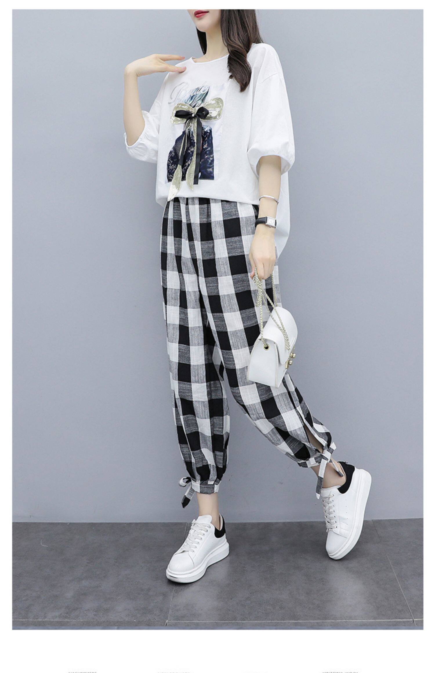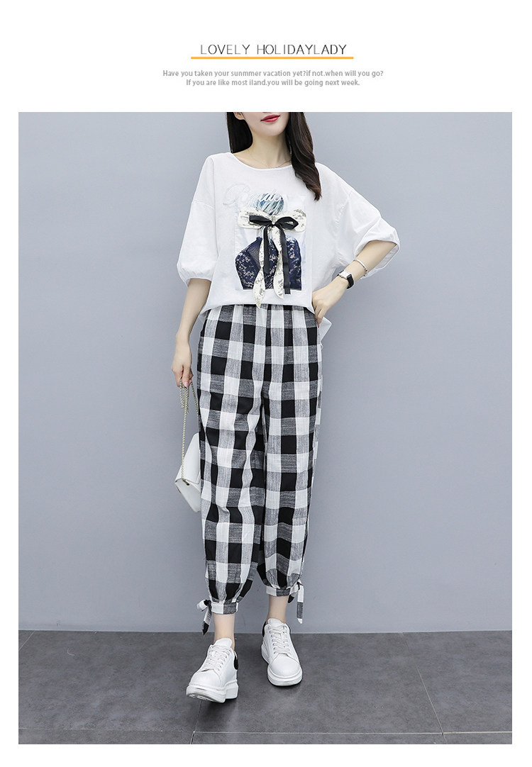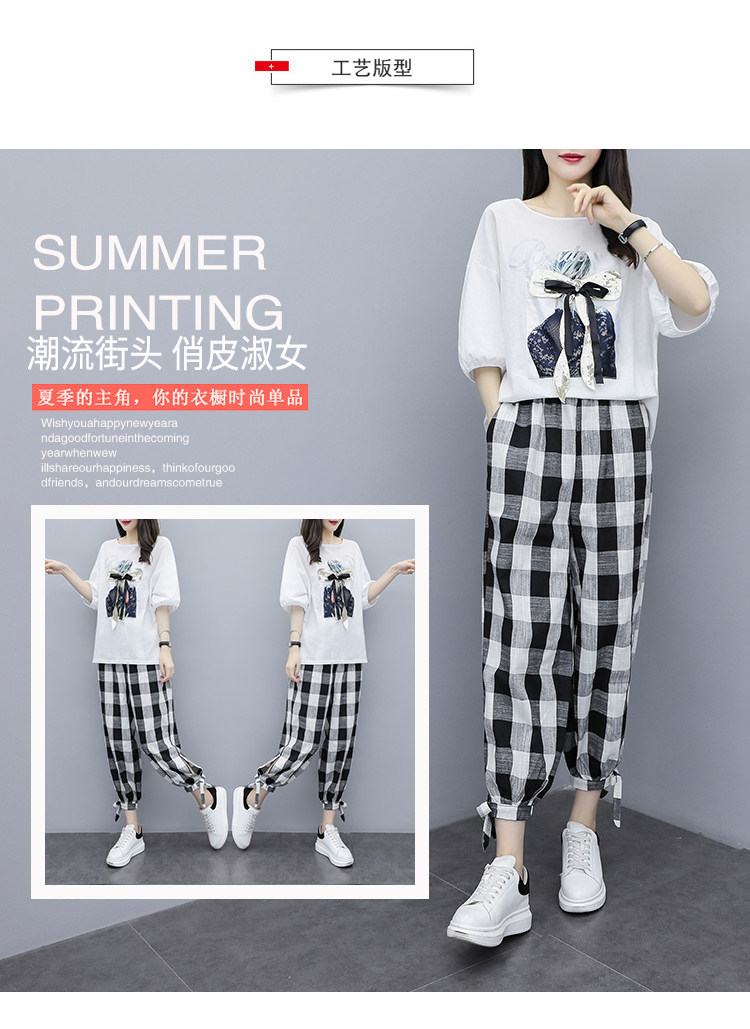 RM19346#夏季新款大码女装短袖两件套胖MM遮肚显瘦套装