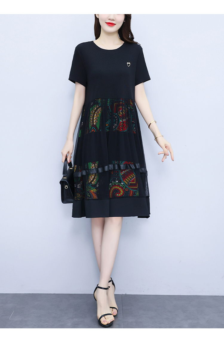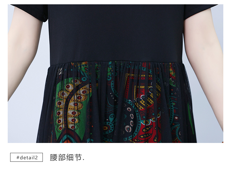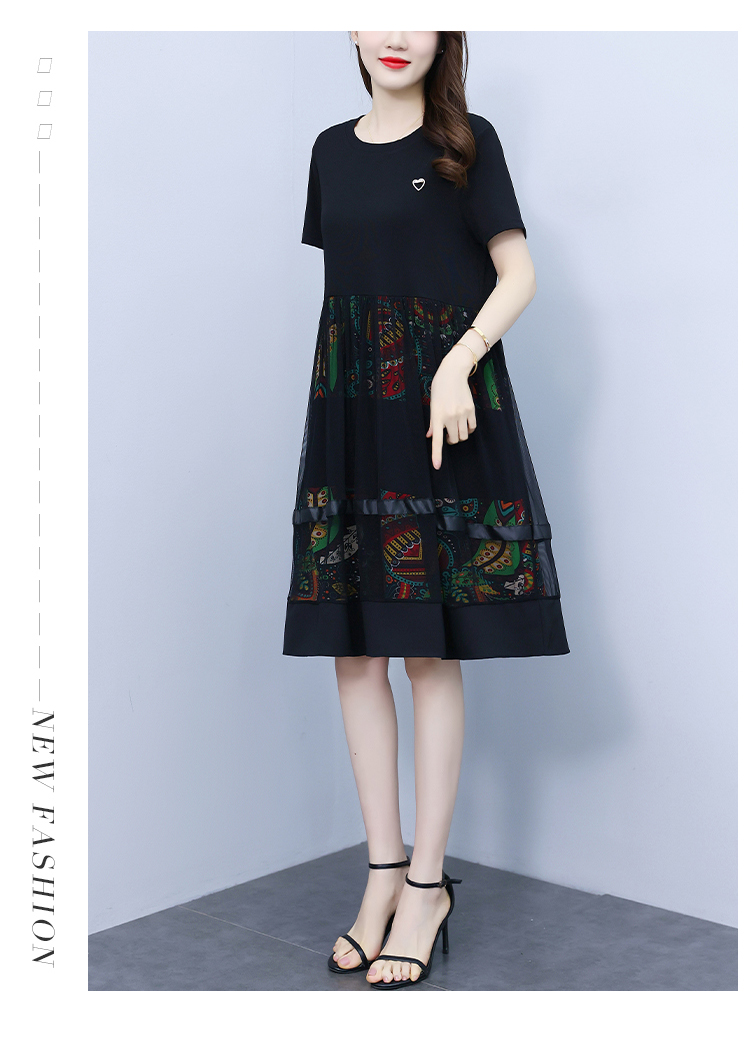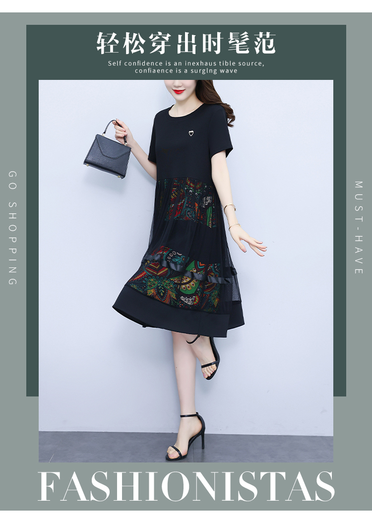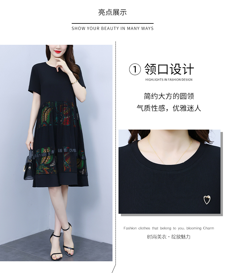 RM19356#夏季新款大码女装妈妈高档印花纱网时尚洋气显瘦连衣裙