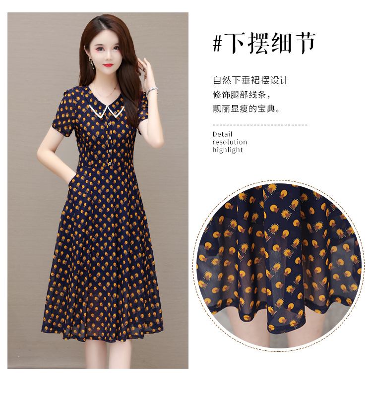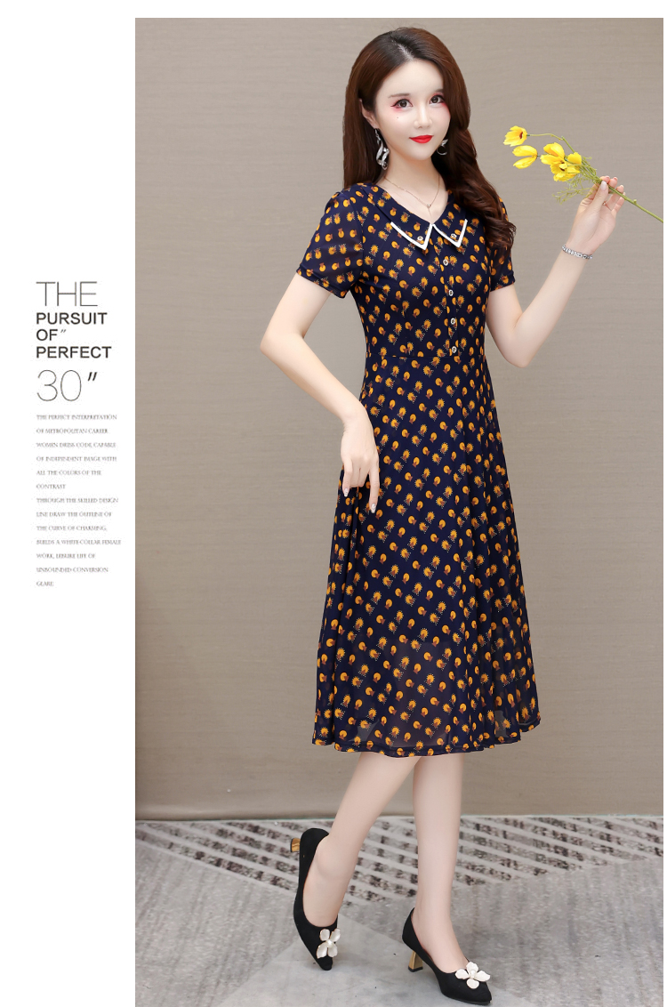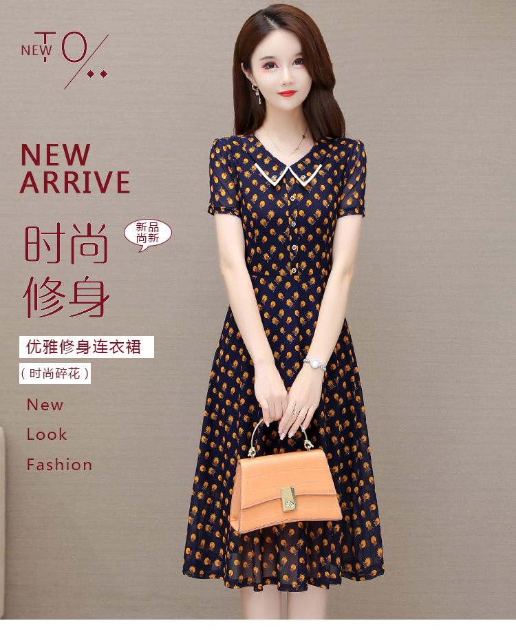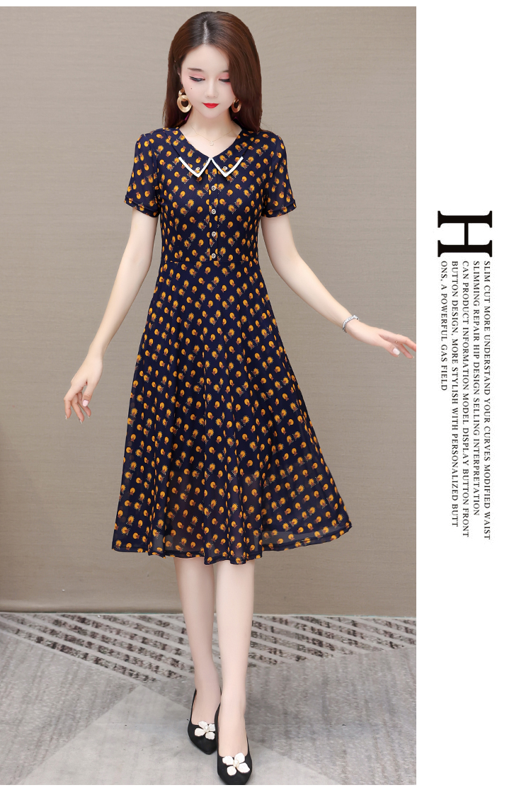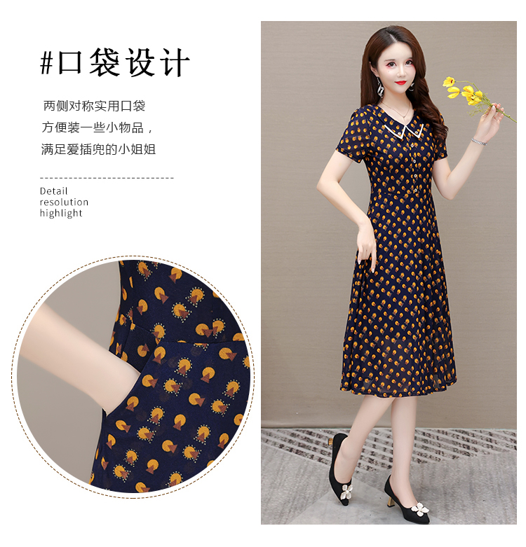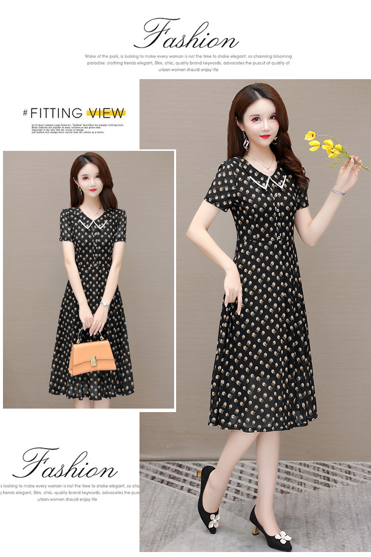RM19358#夏季新款短袖连衣裙娃娃领妈妈装修身A字裙名媛风