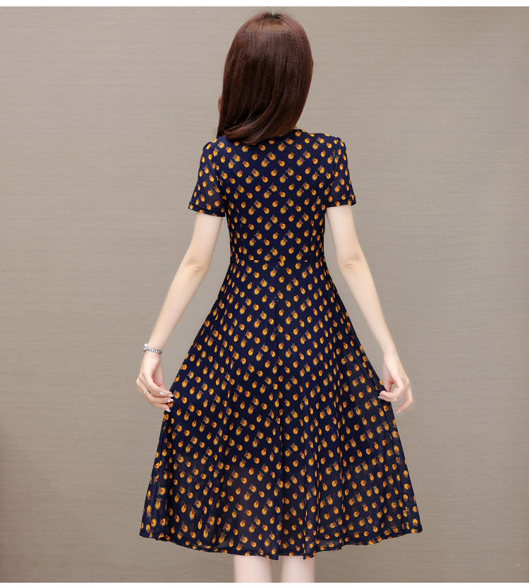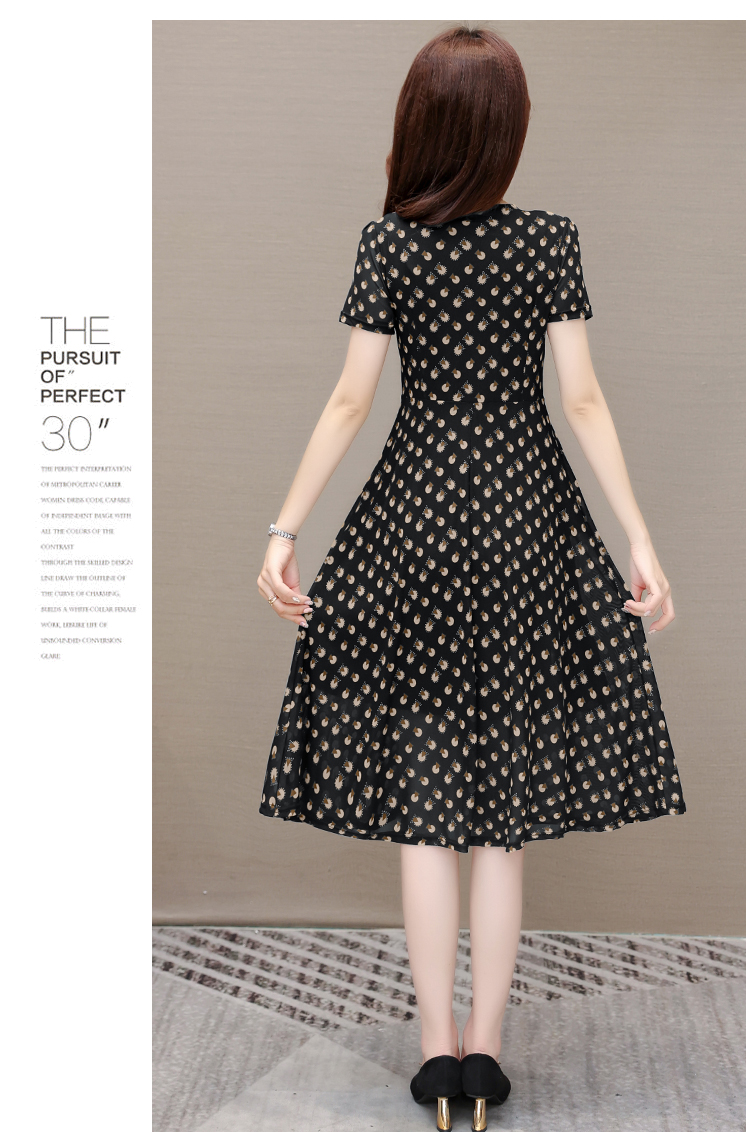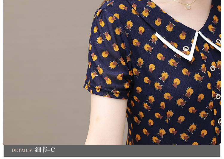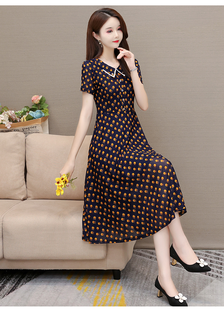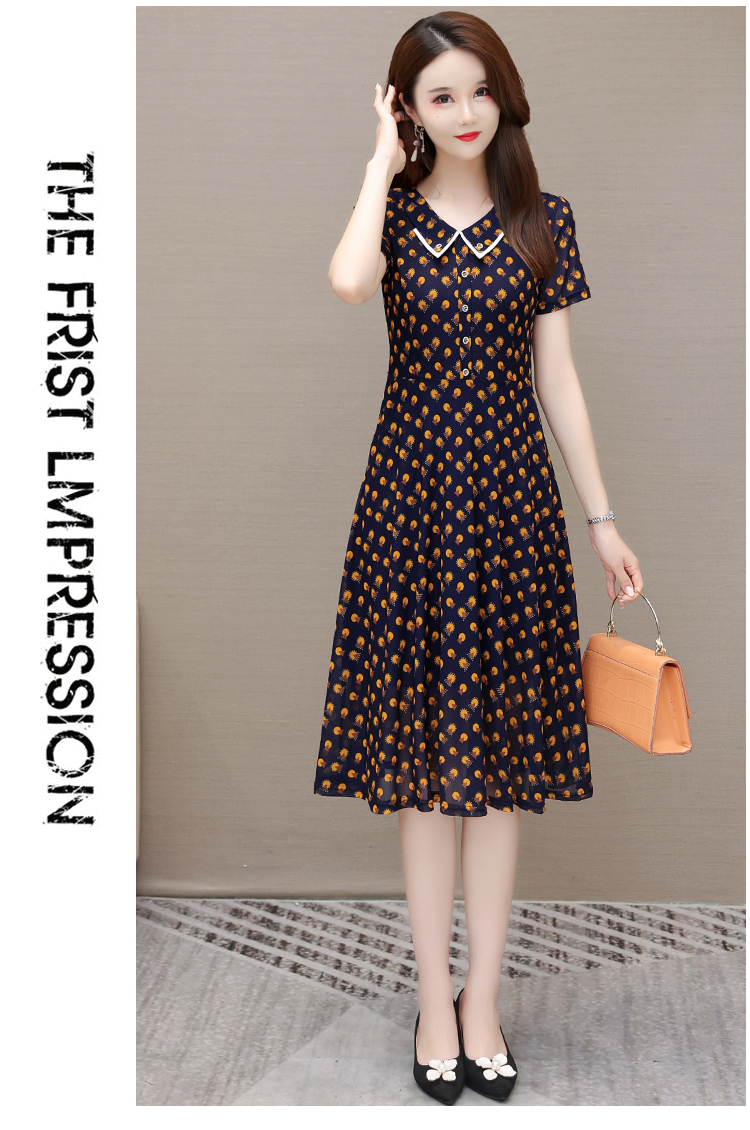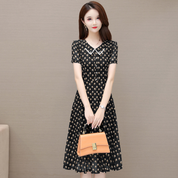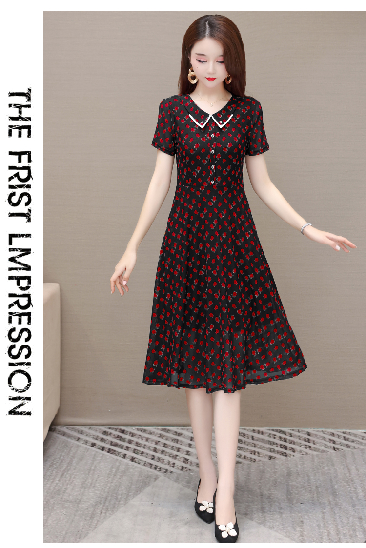 RM19358#夏季新款短袖连衣裙娃娃领妈妈装修身A字裙名媛风