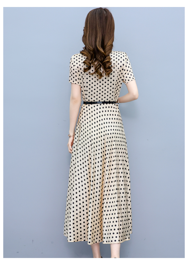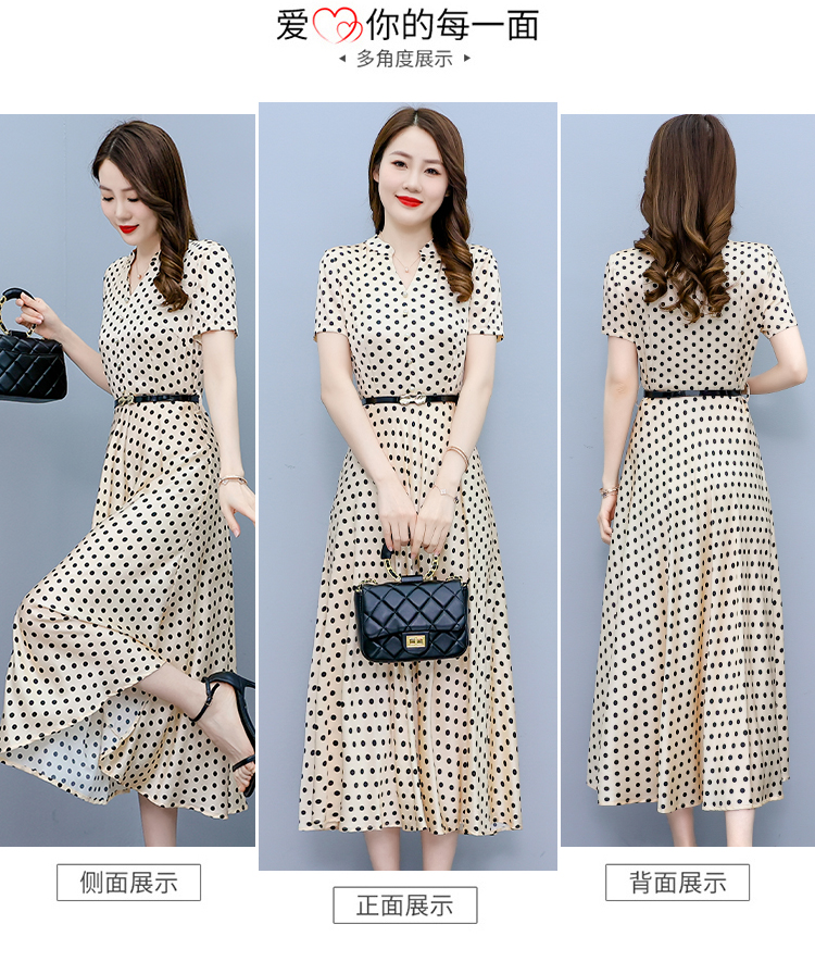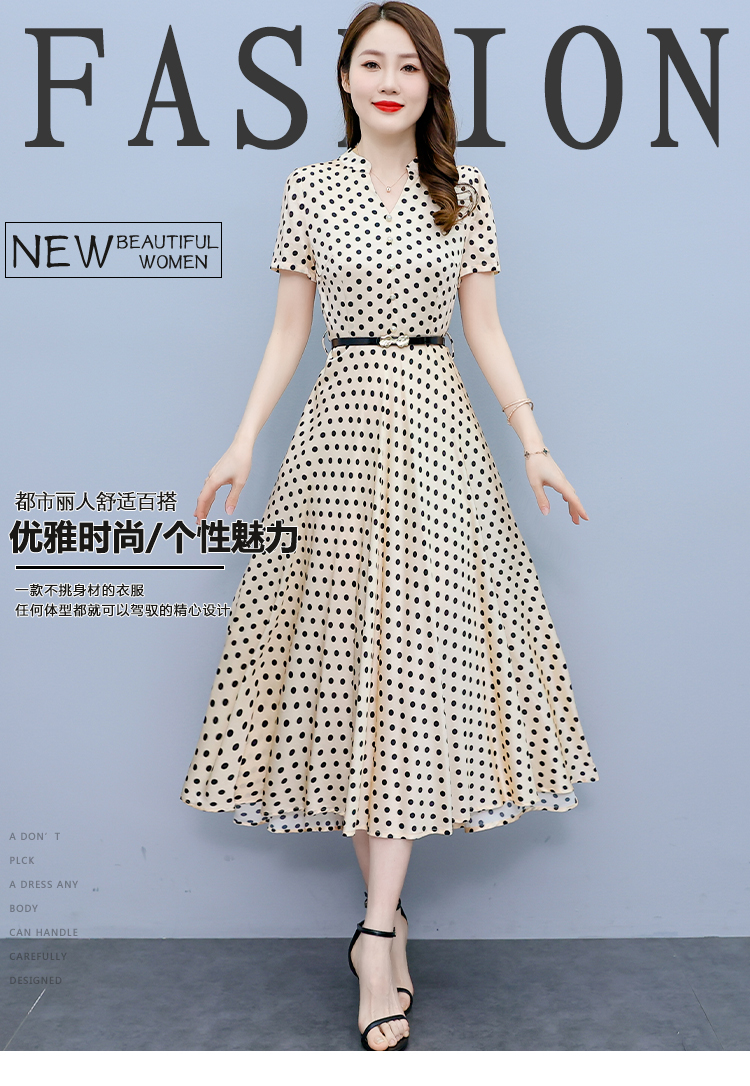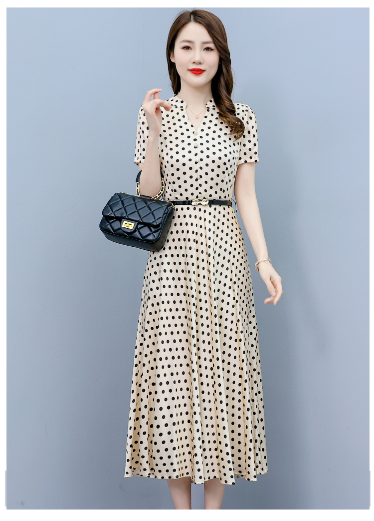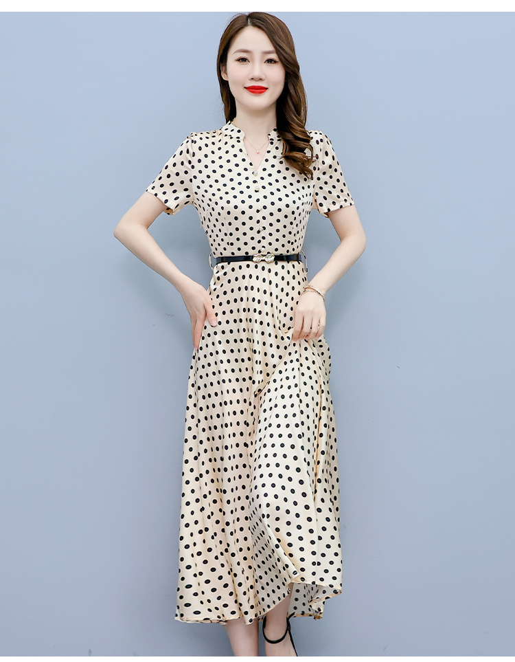RM19368#醋酸缎面短袖印花连衣裙气质显瘦2023夏季洋气遮肚女装