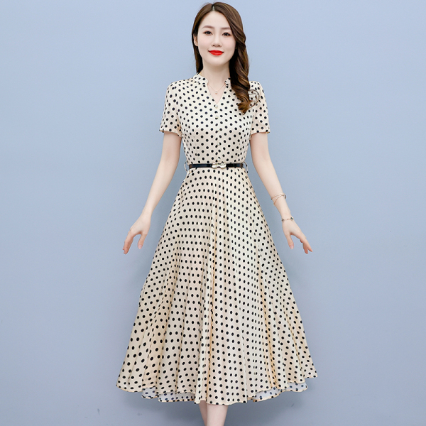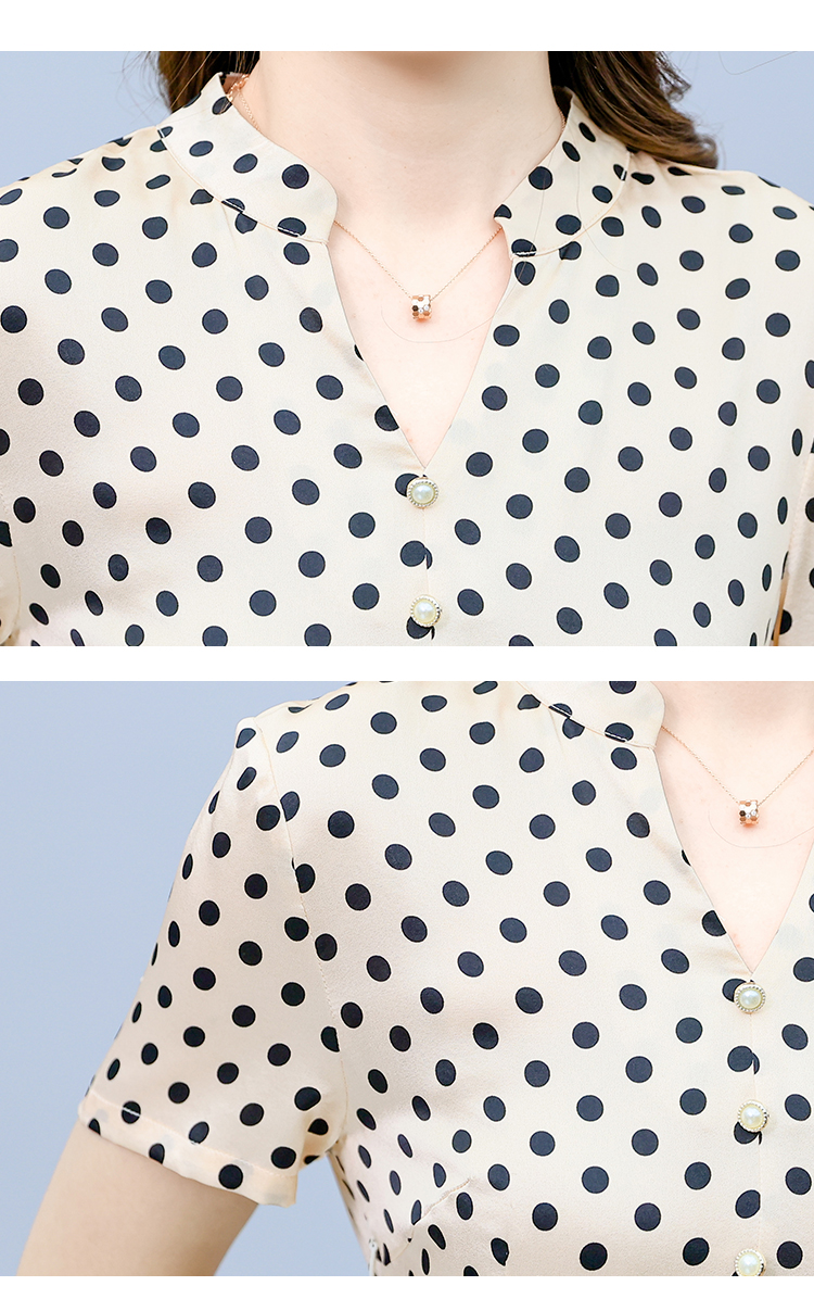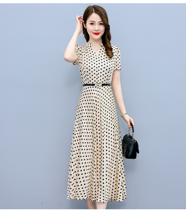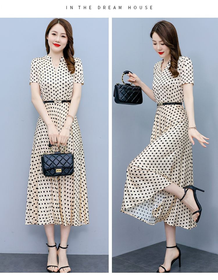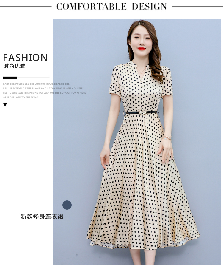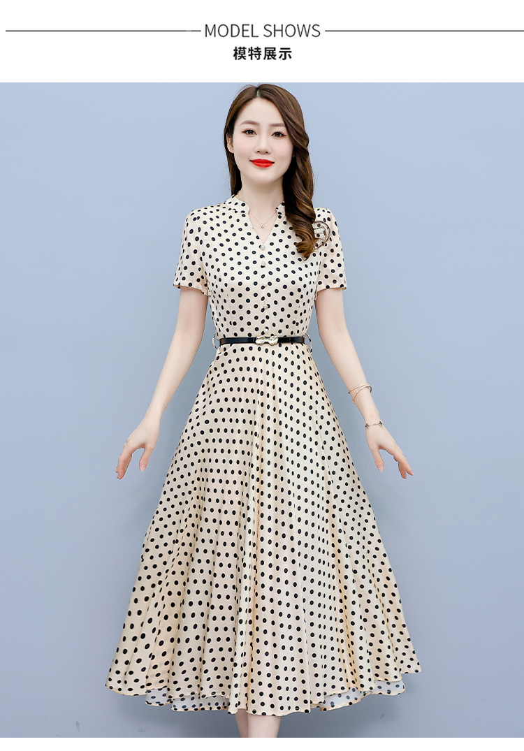 RM19368#醋酸缎面短袖印花连衣裙气质显瘦2023夏季洋气遮肚女装