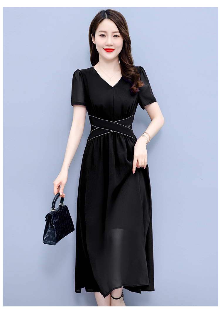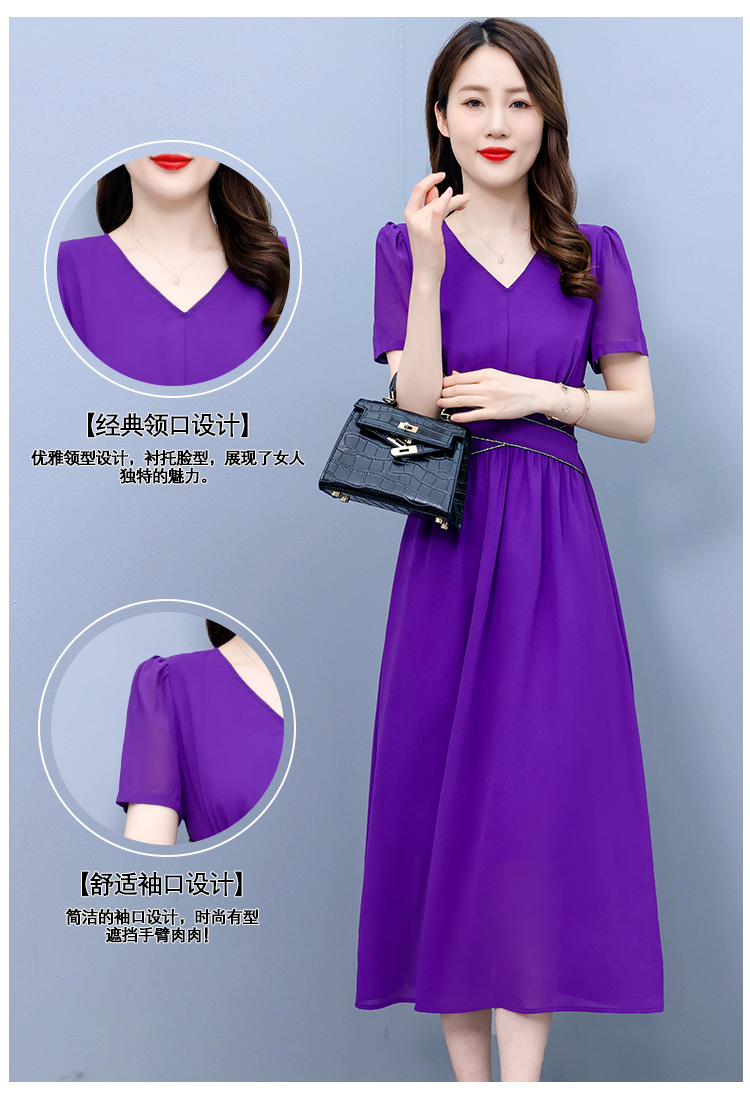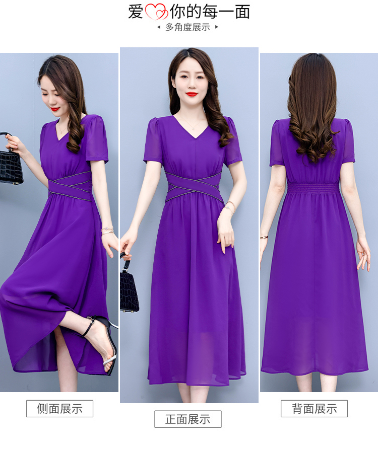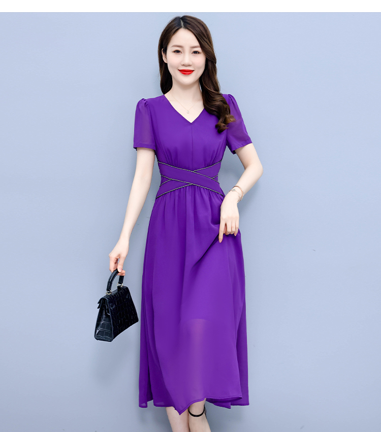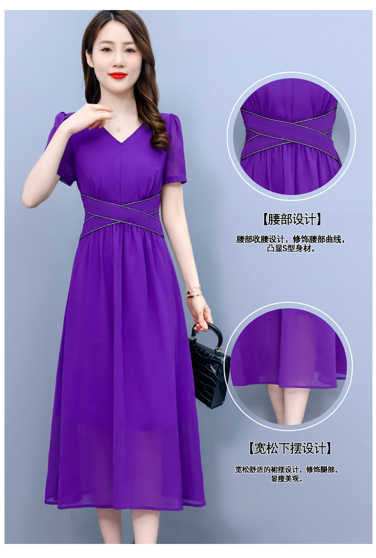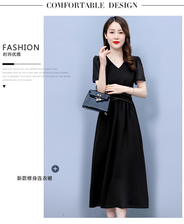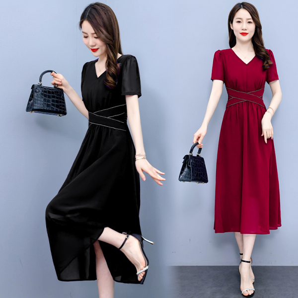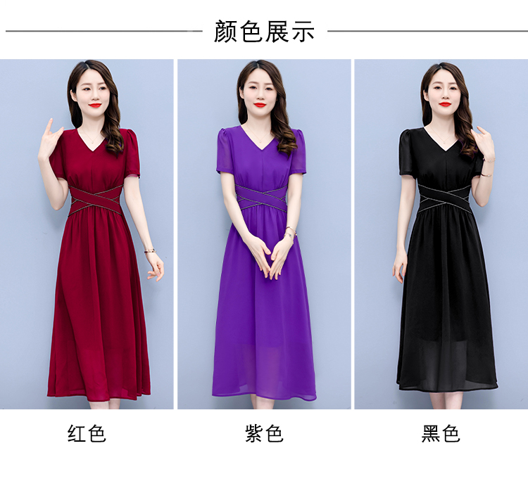 RM19370#夏季新款连衣裙修身气质V领大摆雪纺沙滩连衣长裙