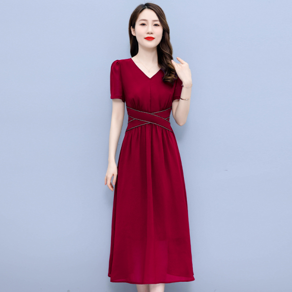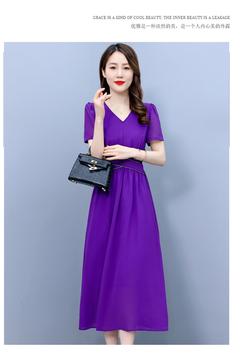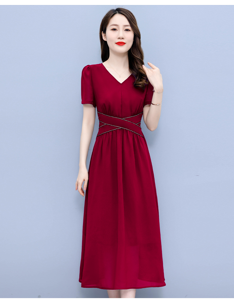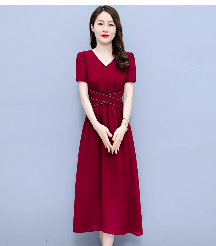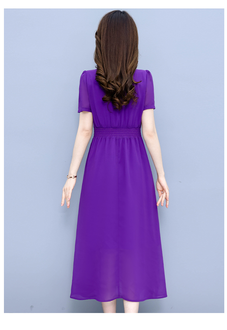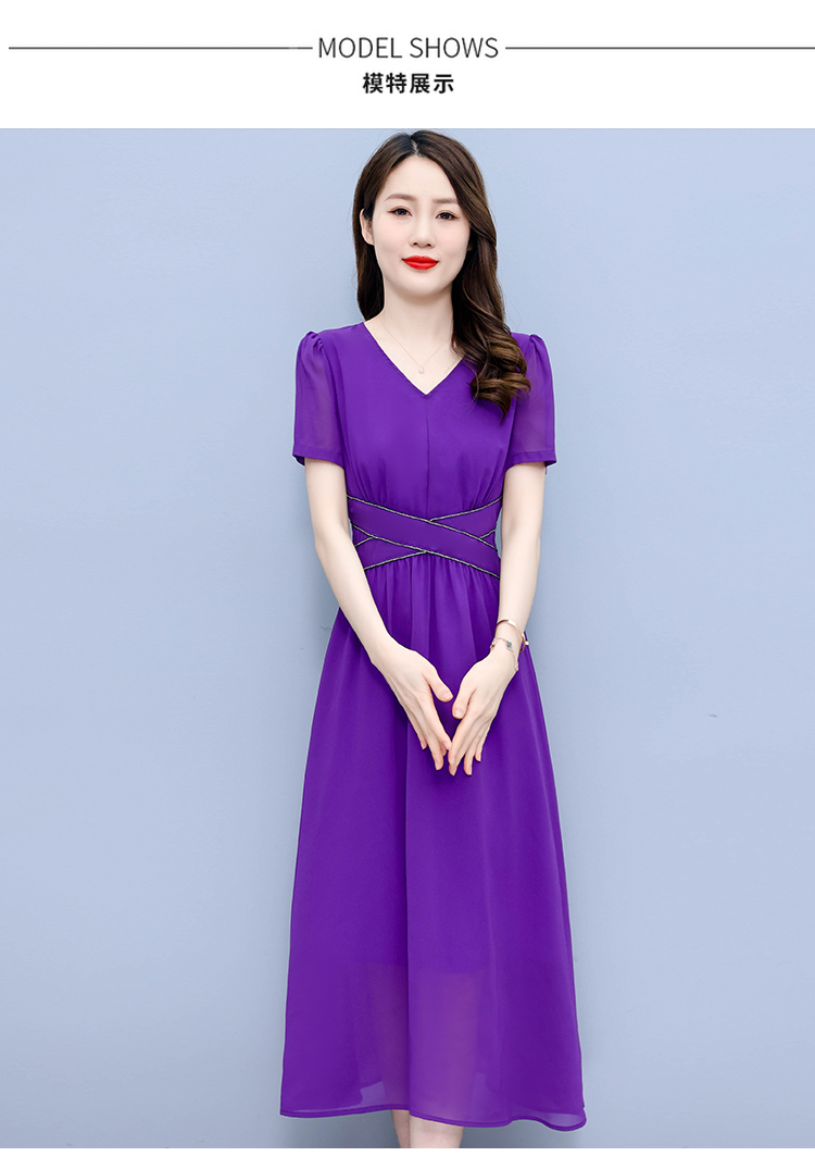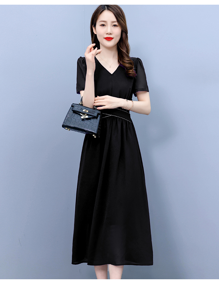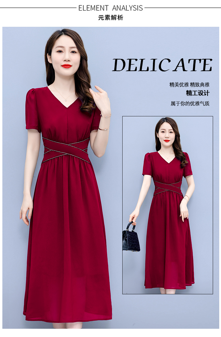 RM19370#夏季新款连衣裙修身气质V领大摆雪纺沙滩连衣长裙