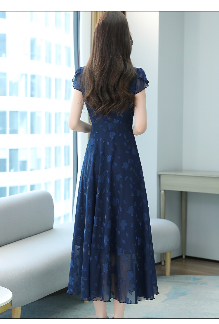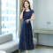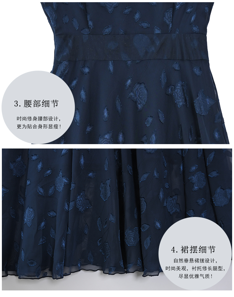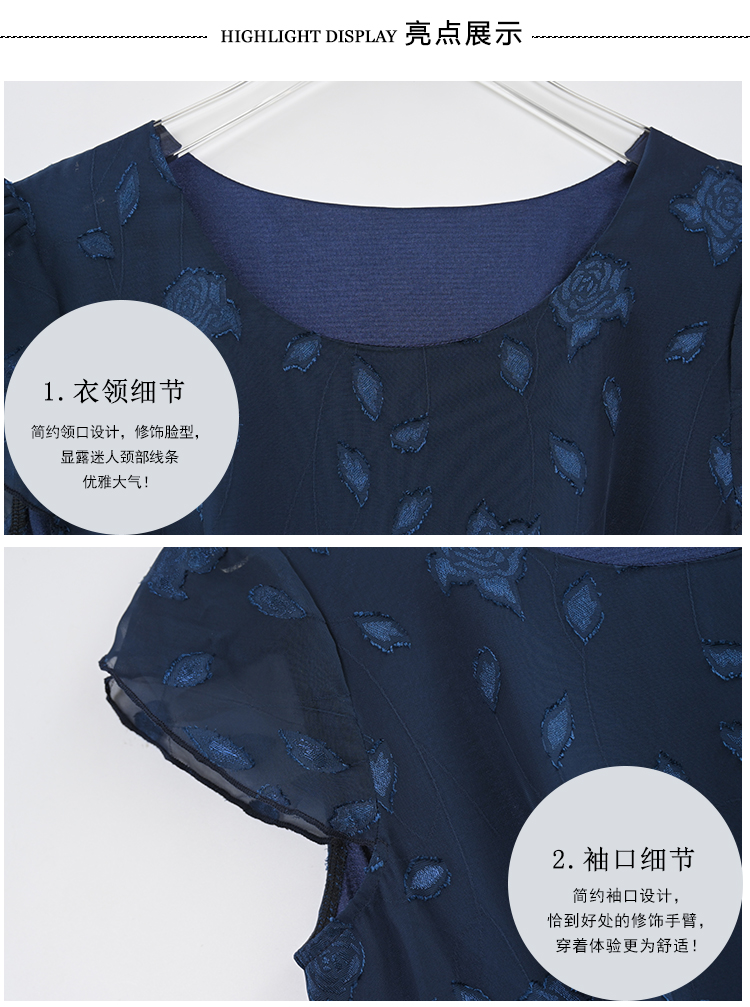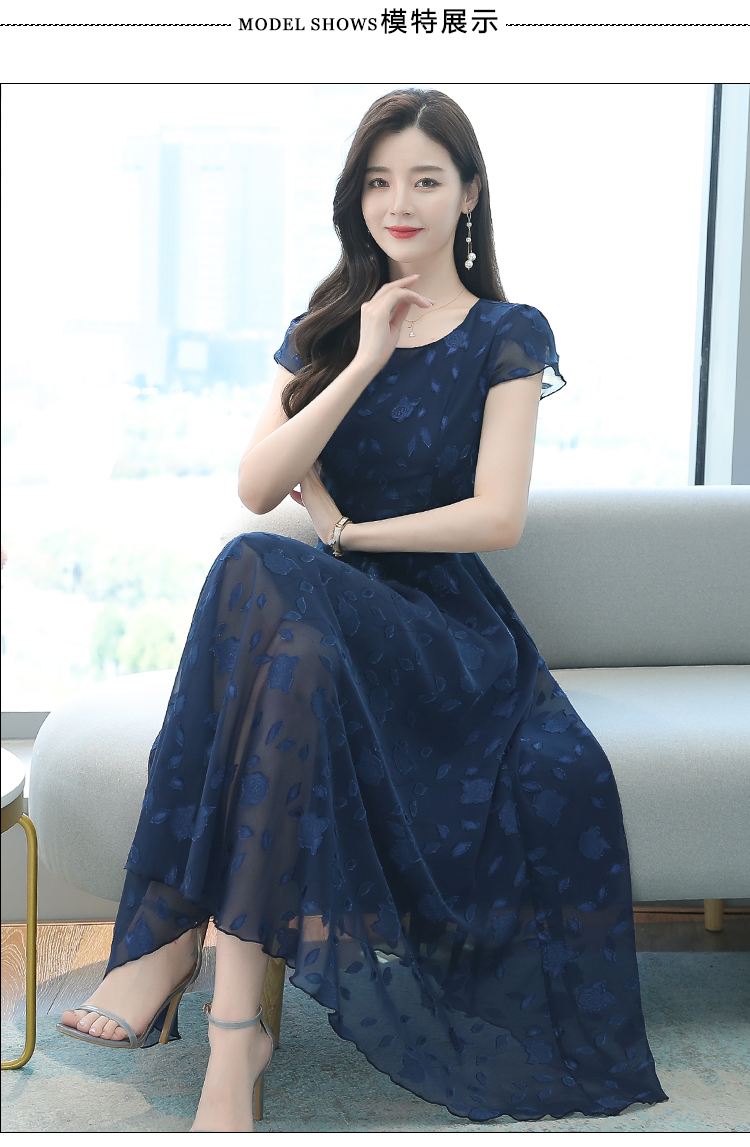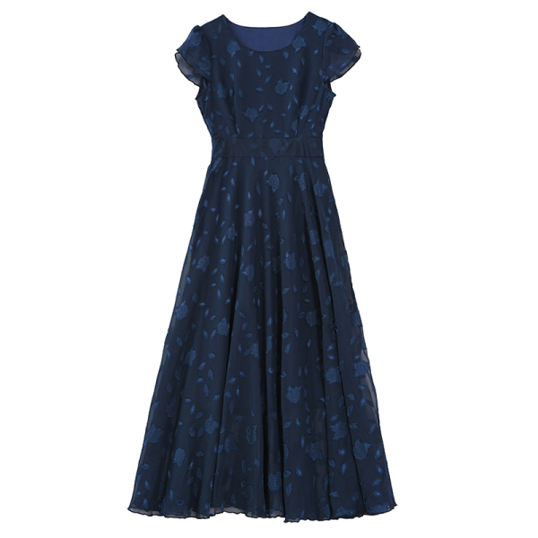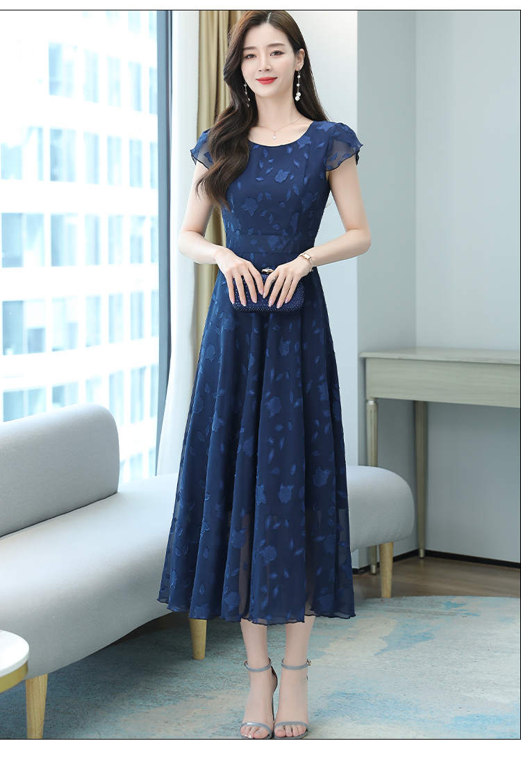 RM19371#夏季新款短袖圆领连衣裙提花收腰显瘦飘逸大摆裙女