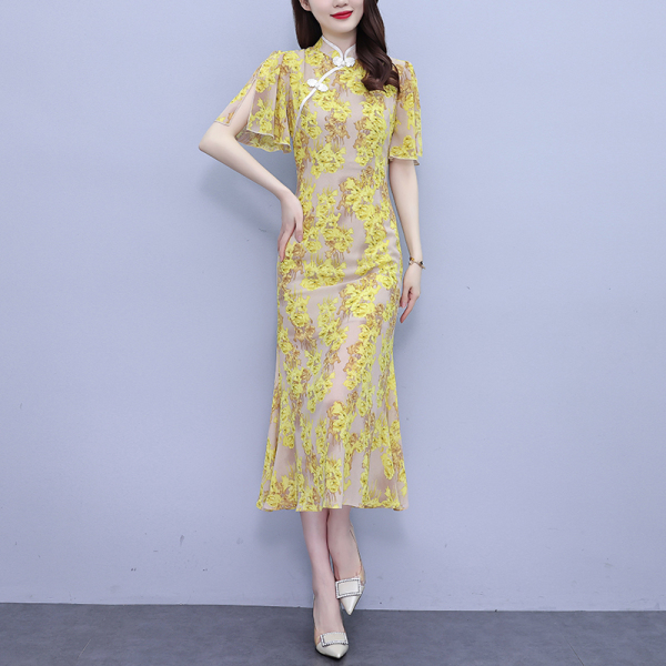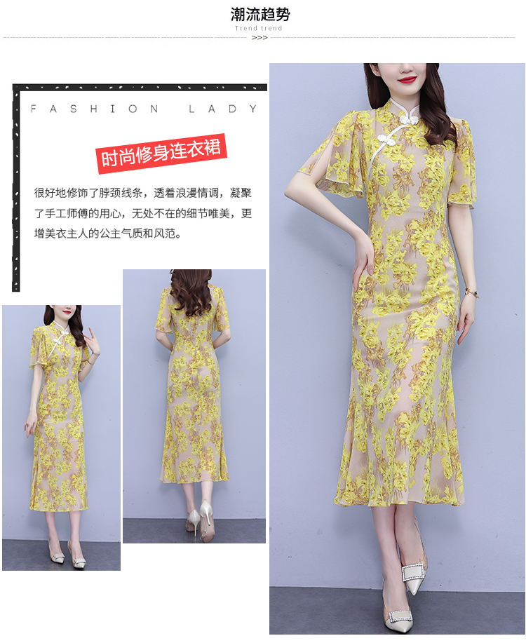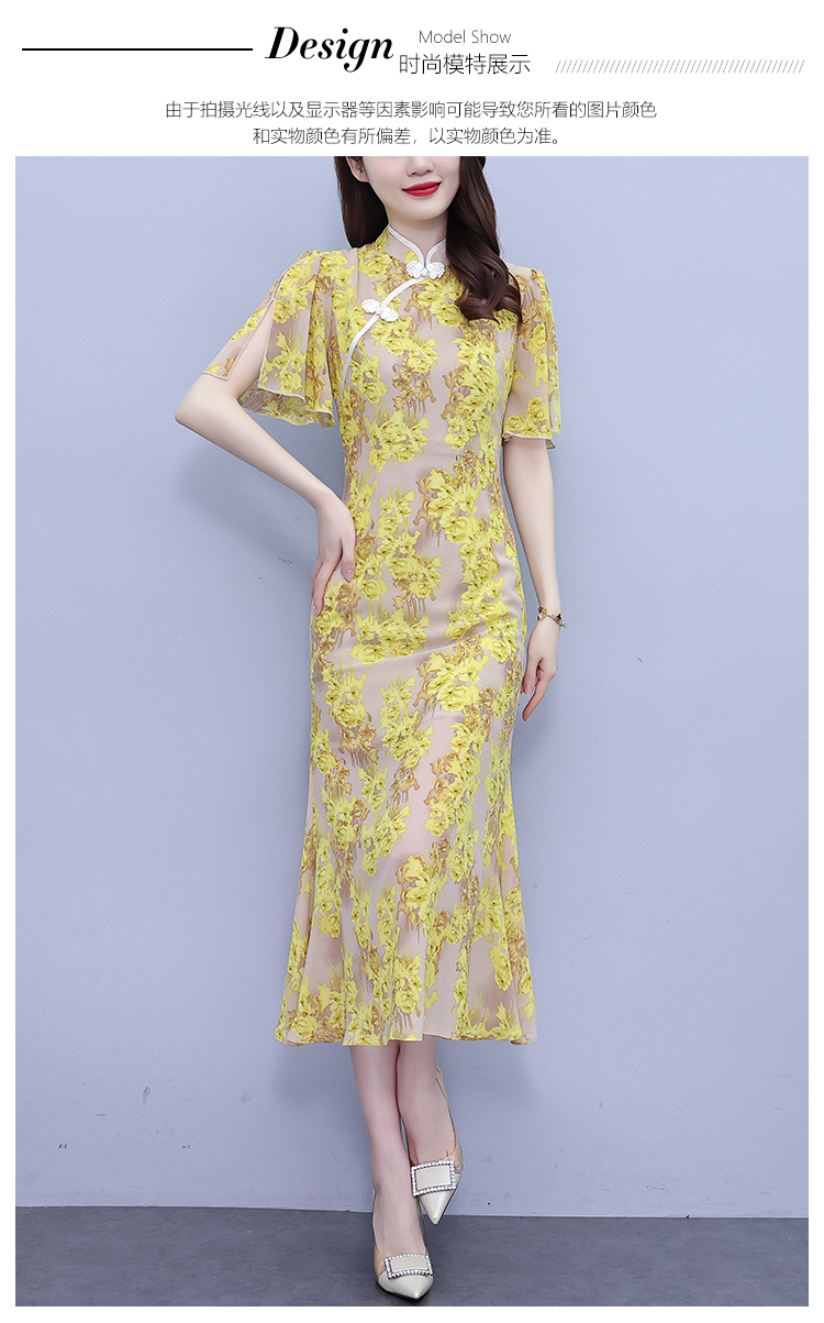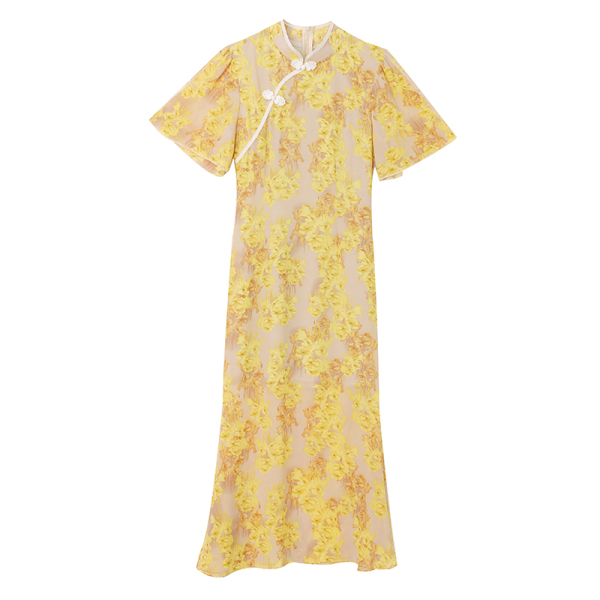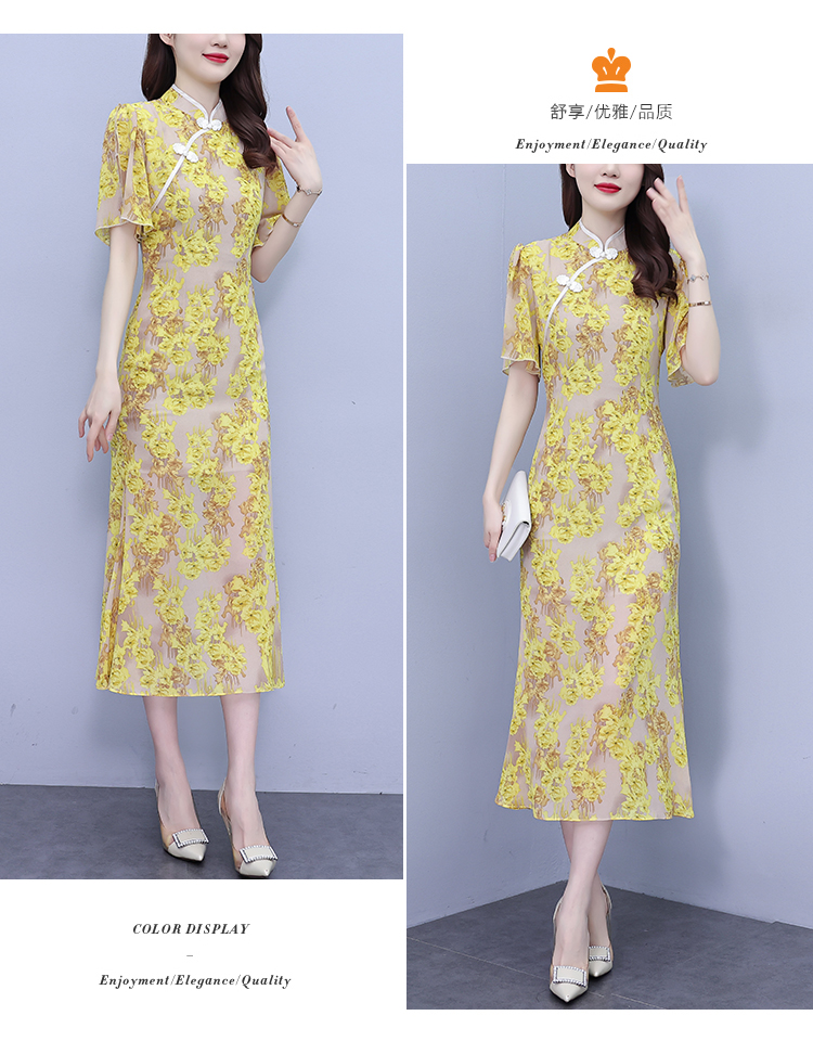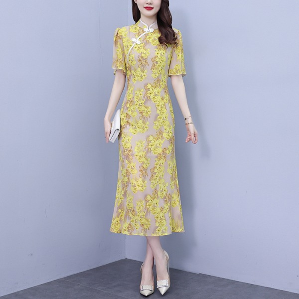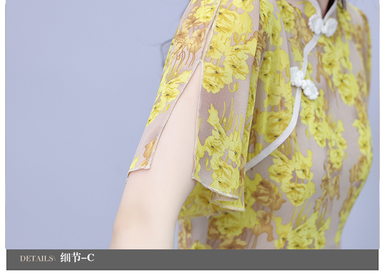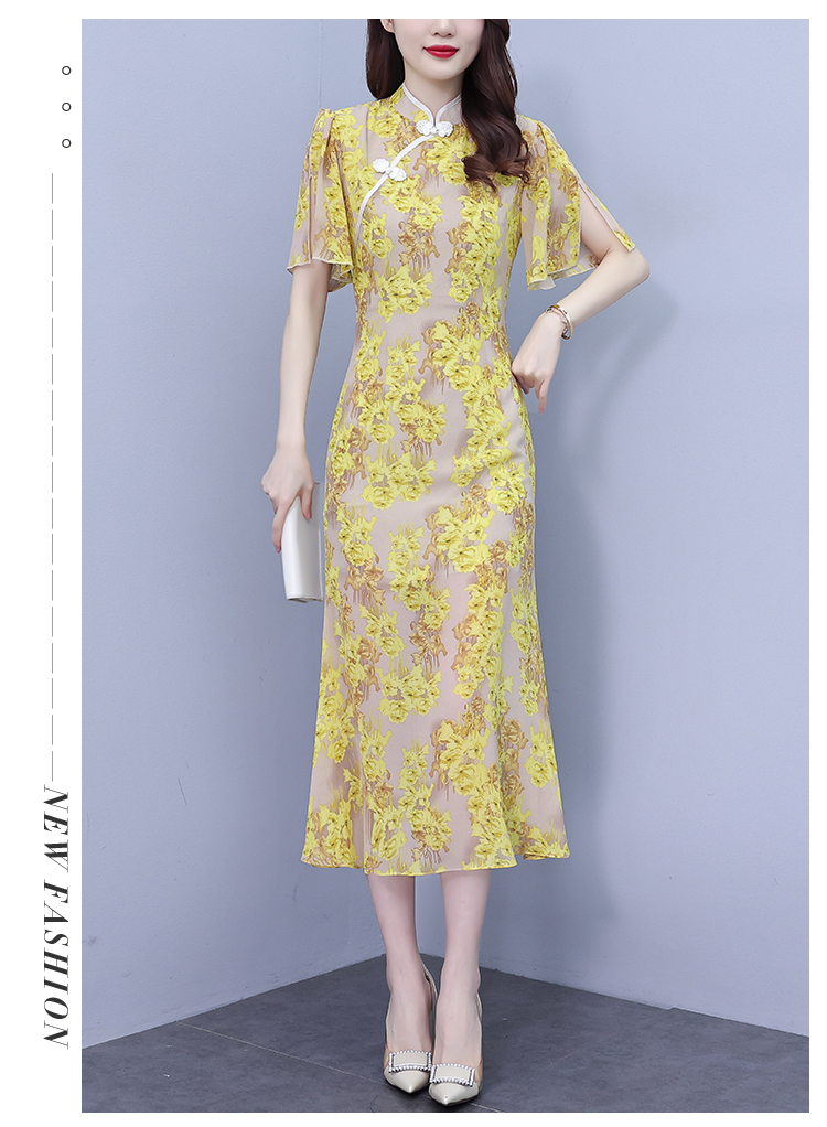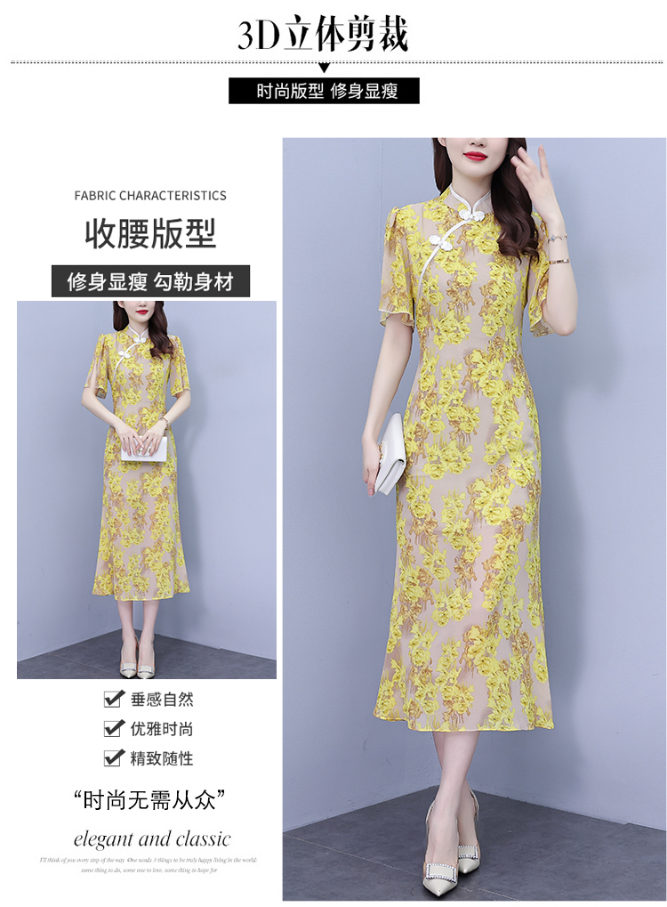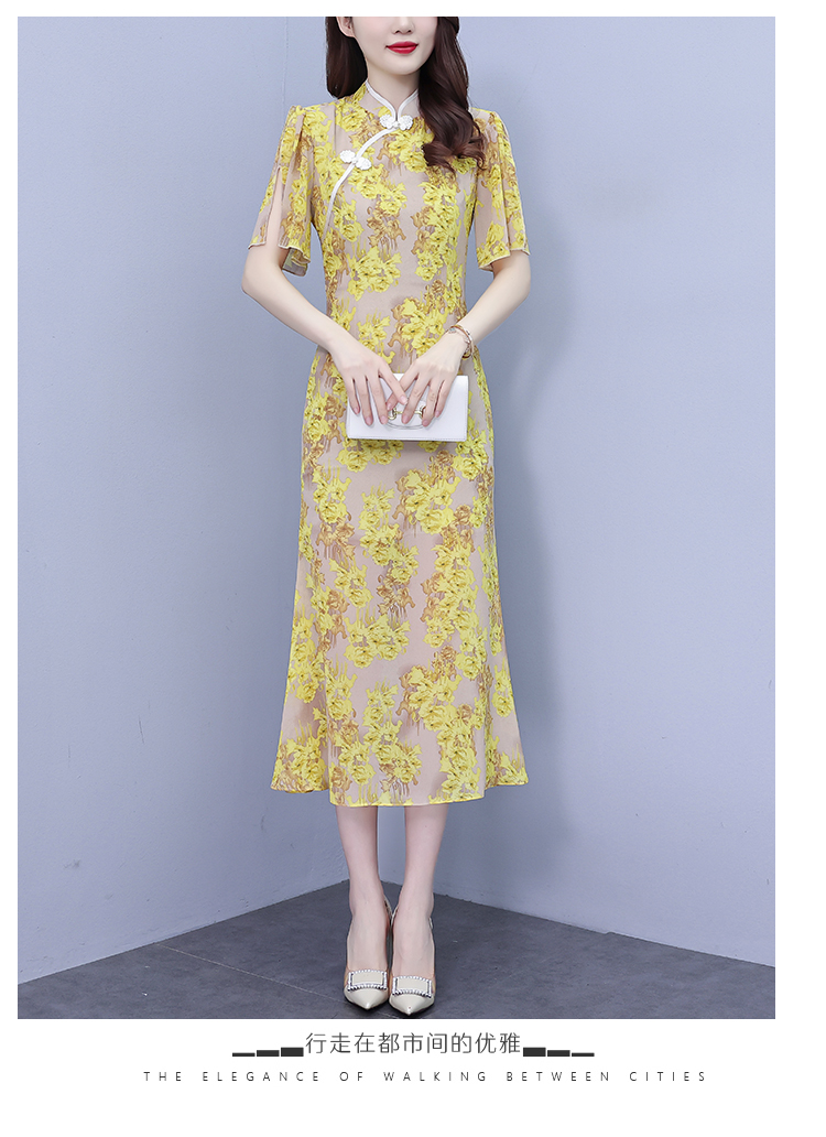 RM19378#改良旗袍夏款2023年新款春夏年轻款短袖时尚碎花雪纺连衣裙长款
