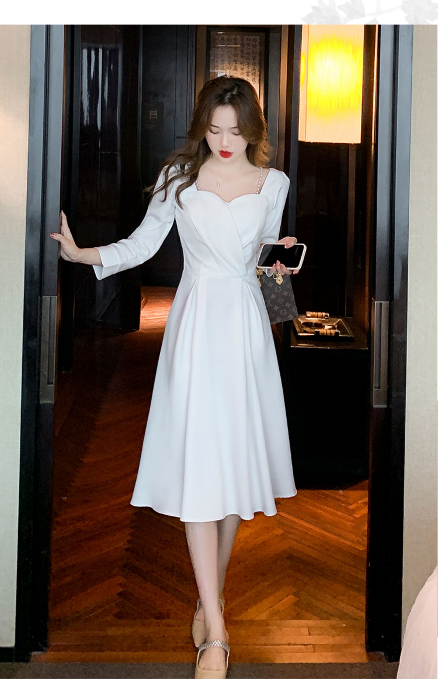 RM19408#敬酒服酒红色纱袖日常可穿礼服法式订婚裙子新娘回门便装连衣裙