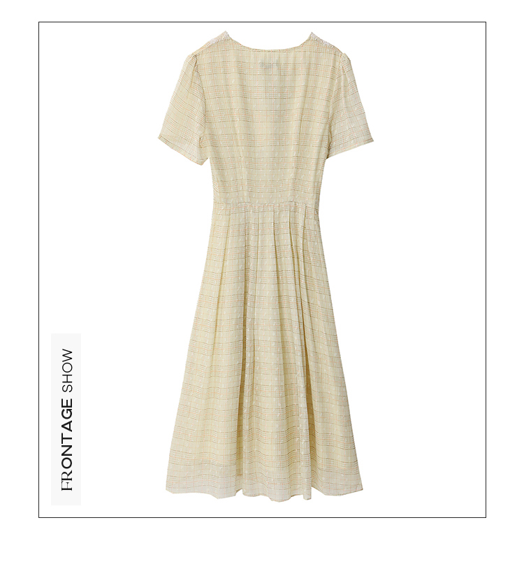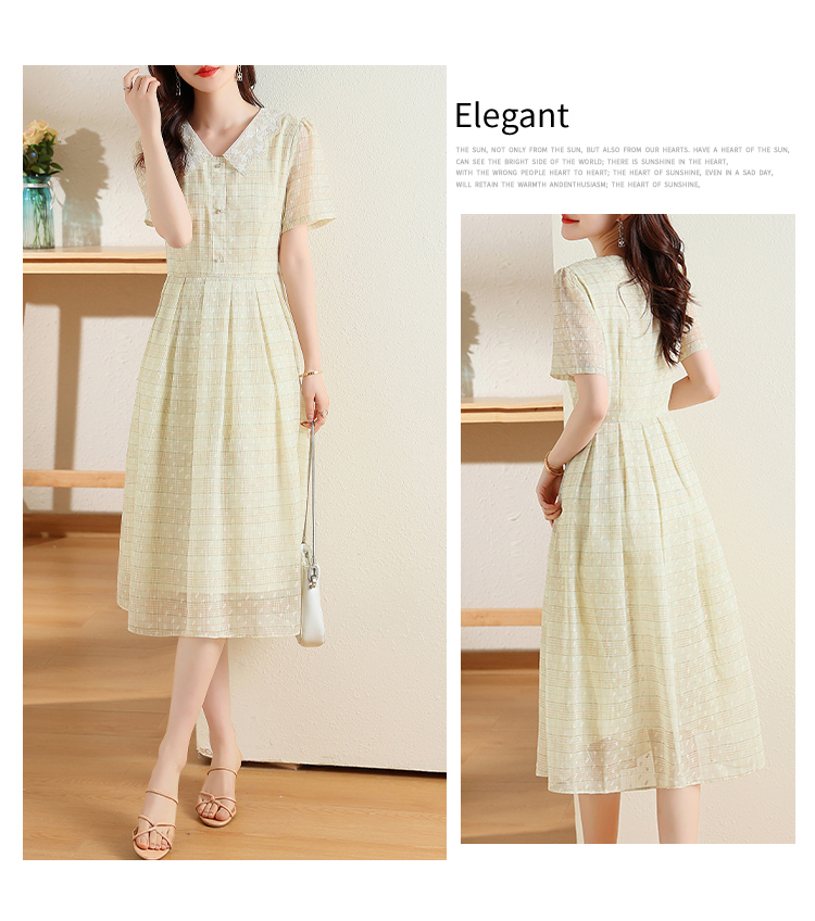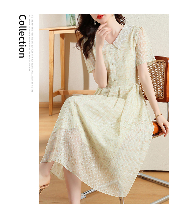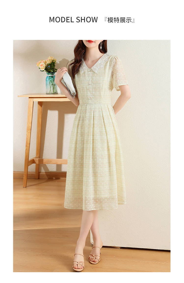 RM19466#雪纺提花连衣裙女夏2023夏装新款气质格子娃娃领长款裙子