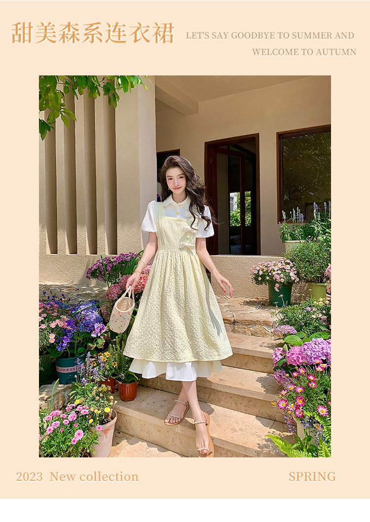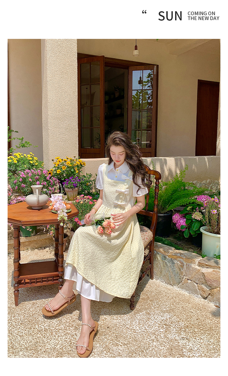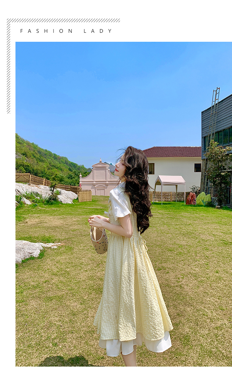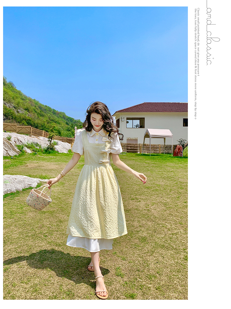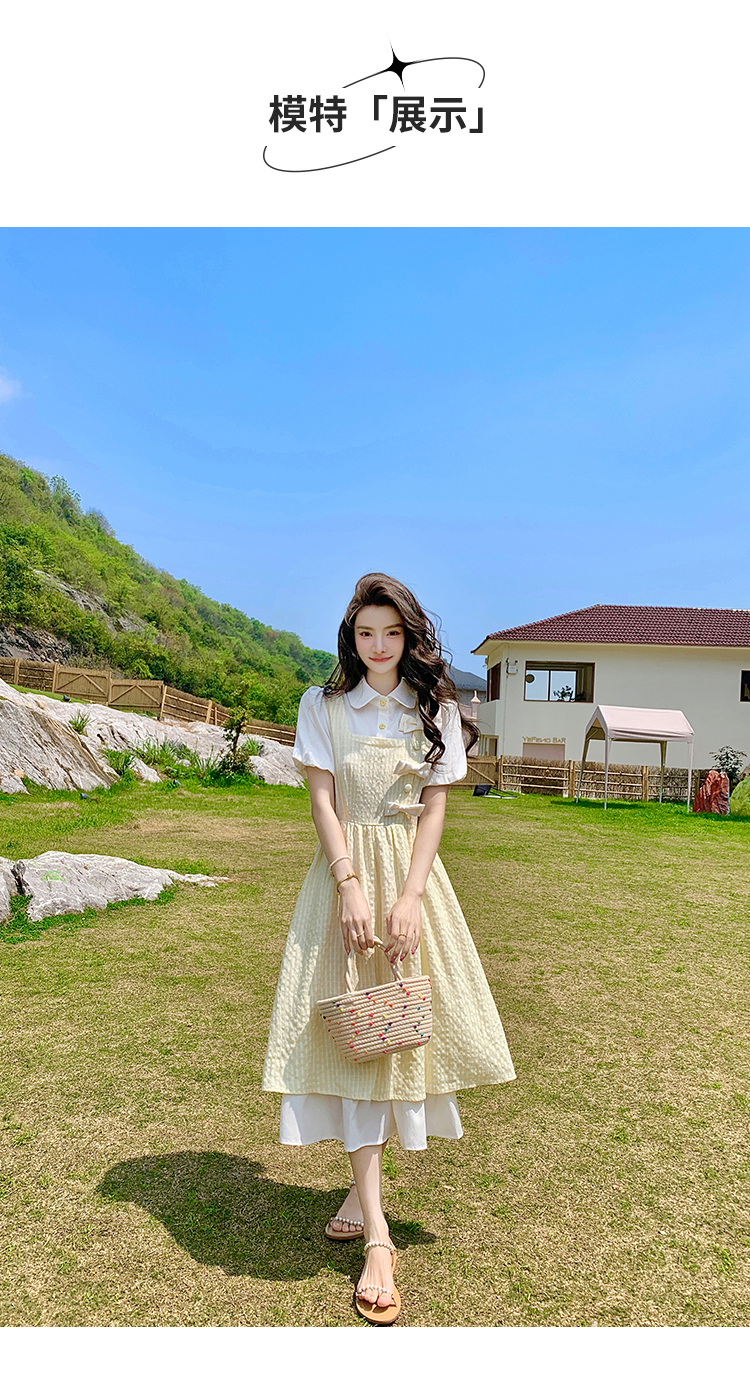 RM19467#夏季森系甜美假两件连衣裙女法式小个子奶乖温柔风长裙子