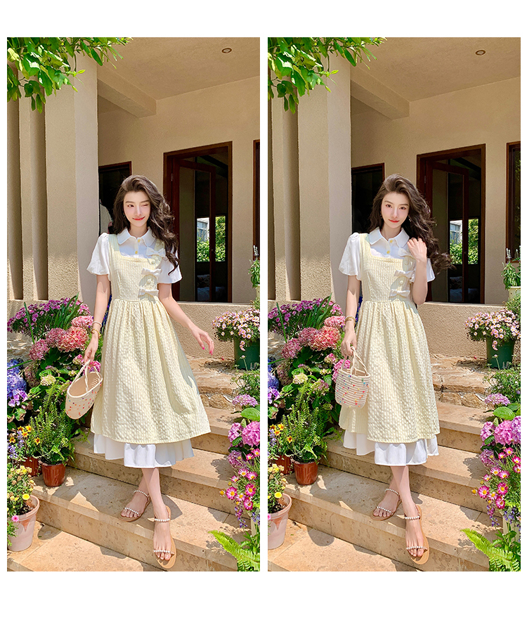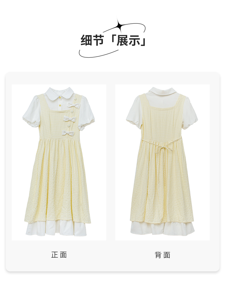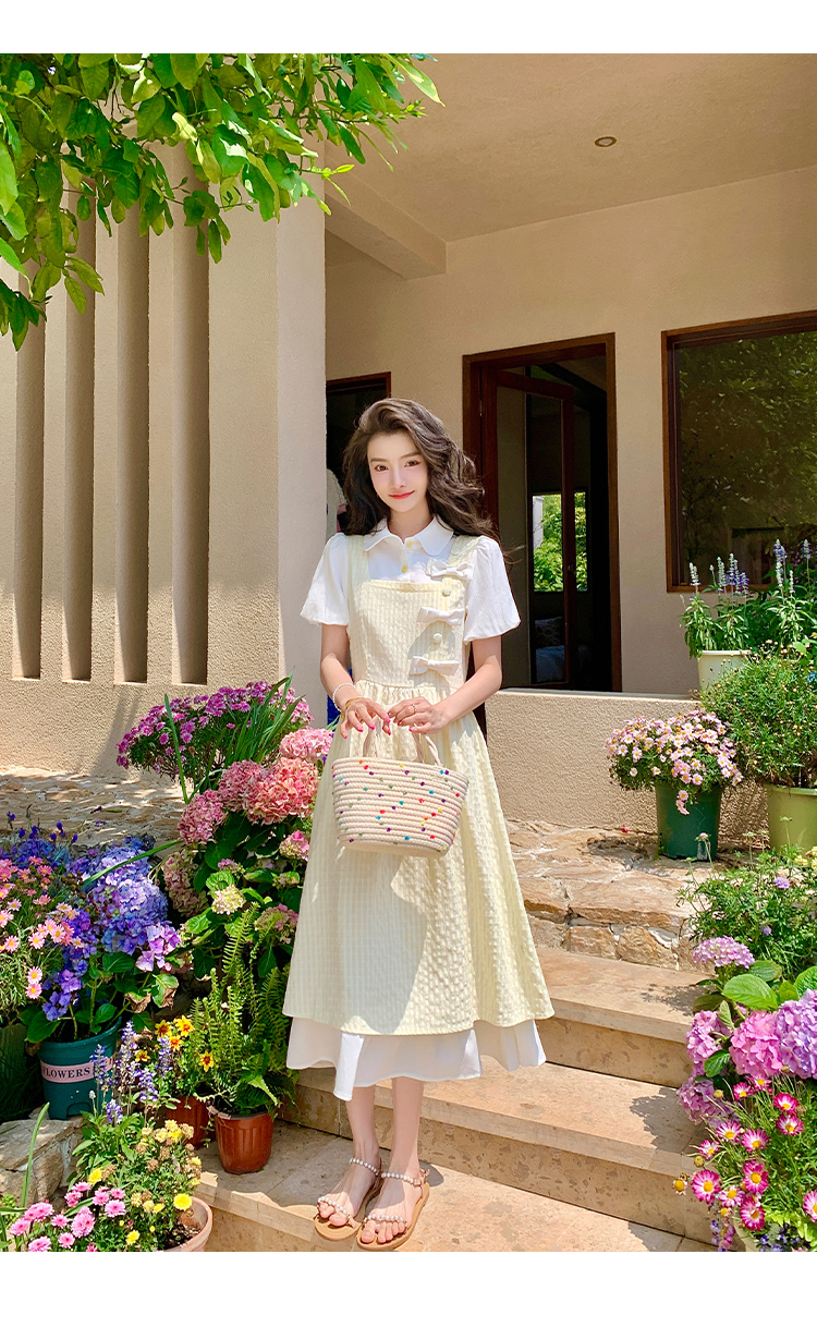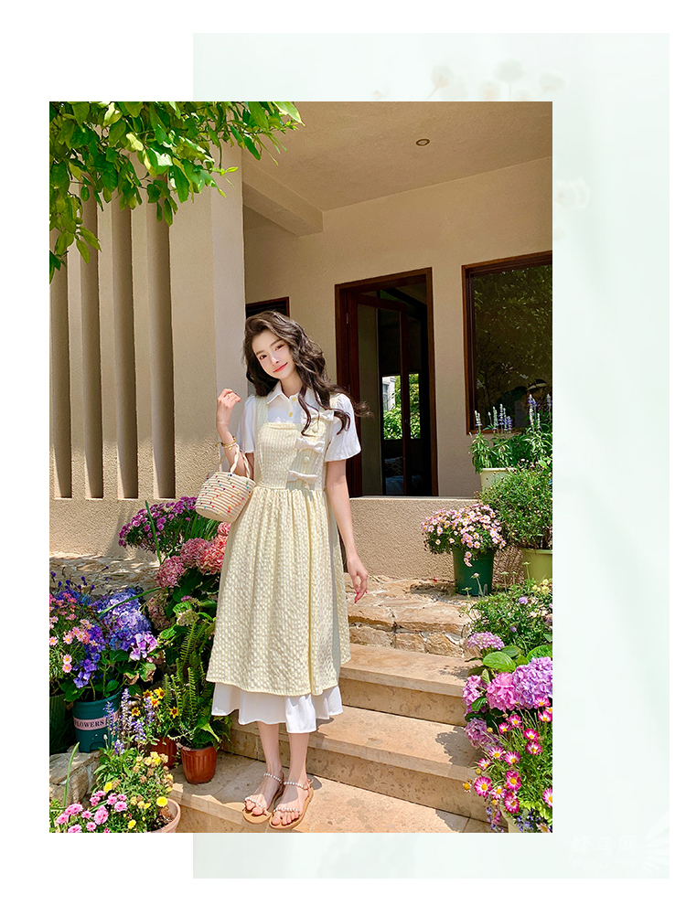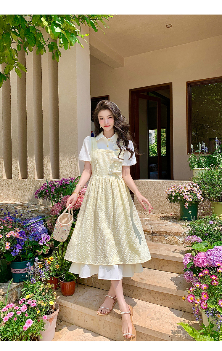RM19467#夏季森系甜美假两件连衣裙女法式小个子奶乖温柔风长裙子