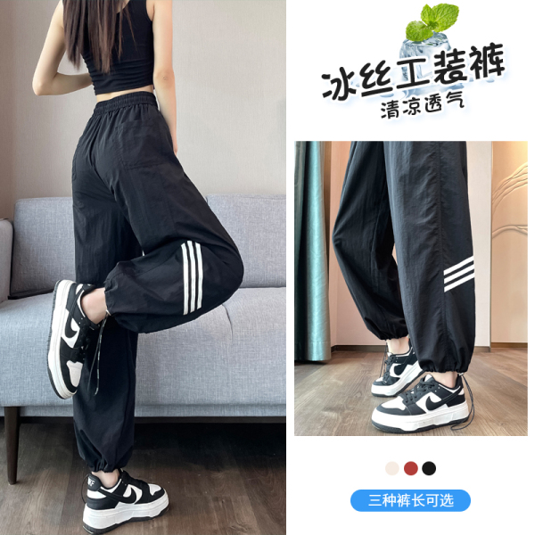 RM19509#美式冰丝速干工装裤女2023夏季薄款束脚阔腿高腰休闲运动裤