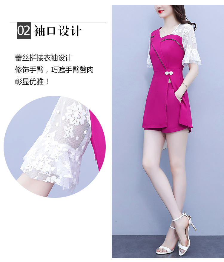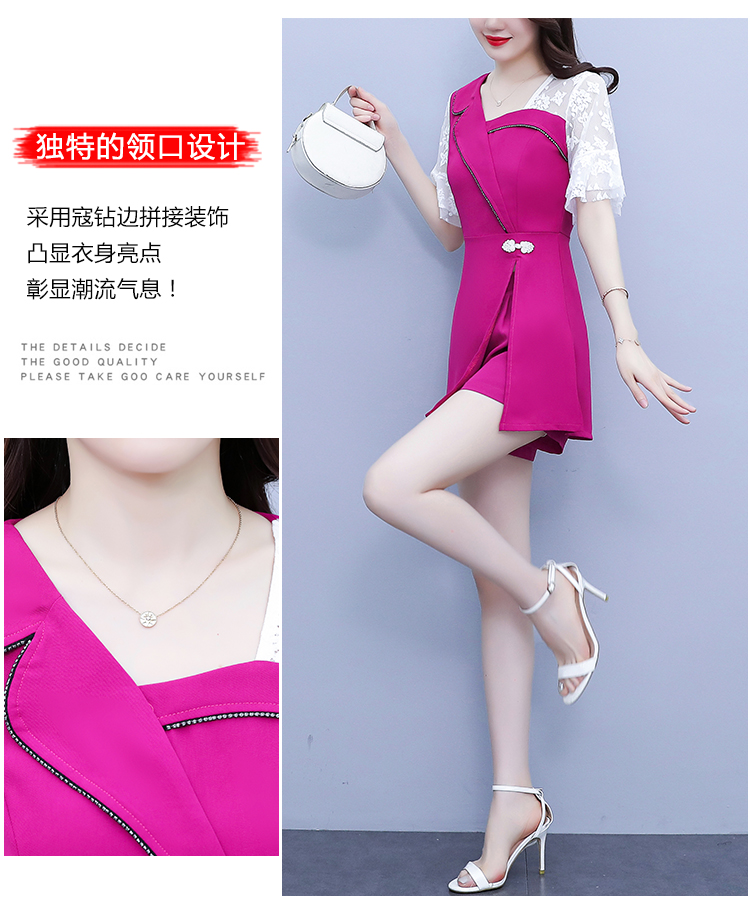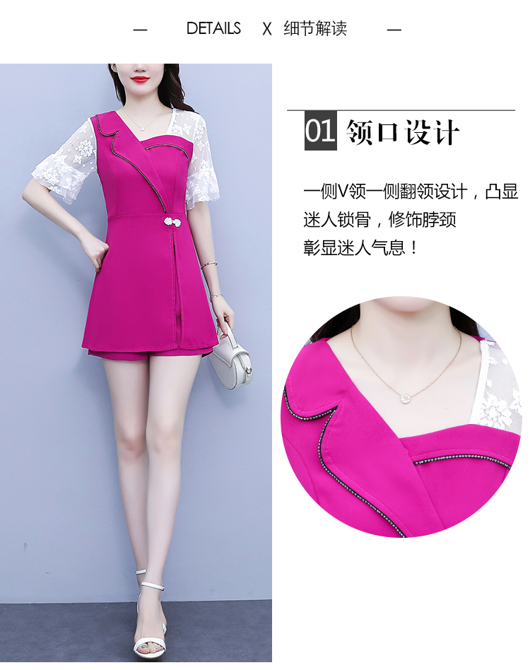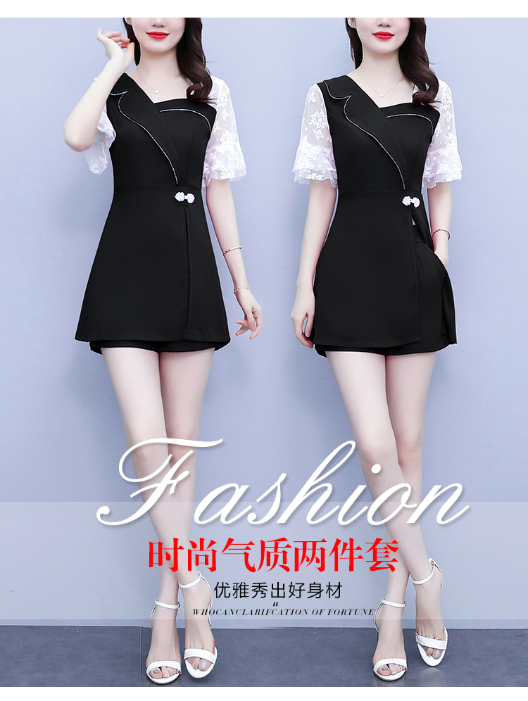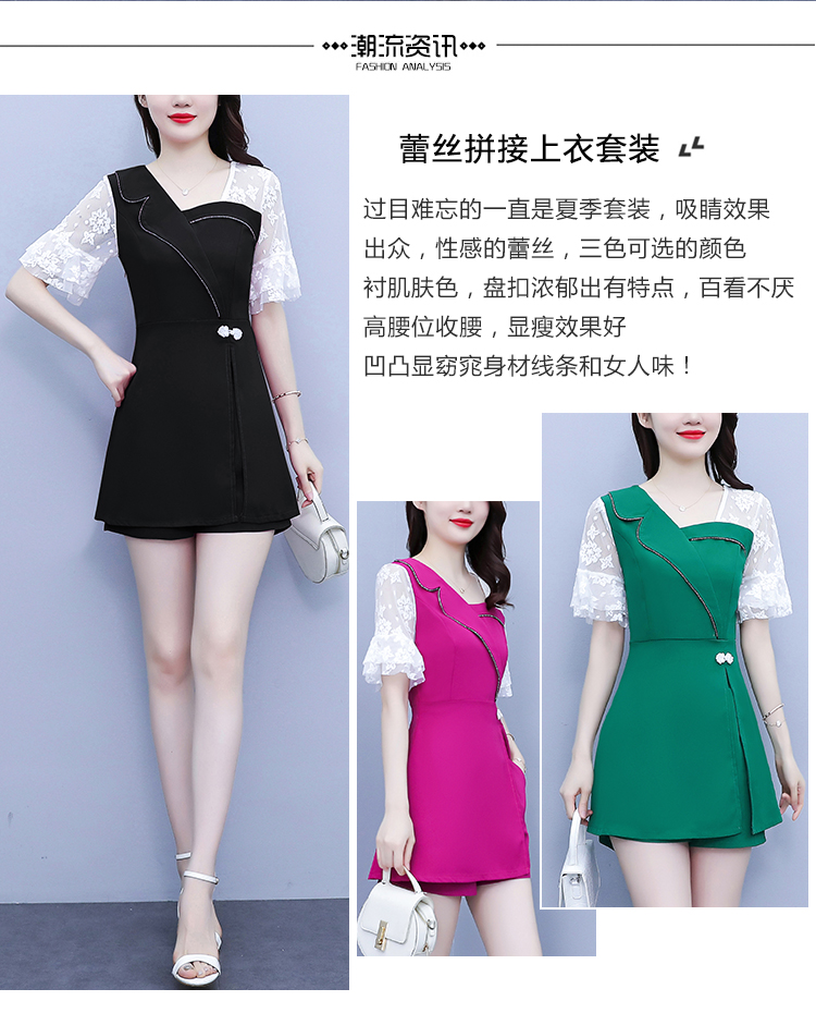 RM19856#大码女装2023年夏季新款胖MM蕾丝拼接时尚气质女神范俩件套套