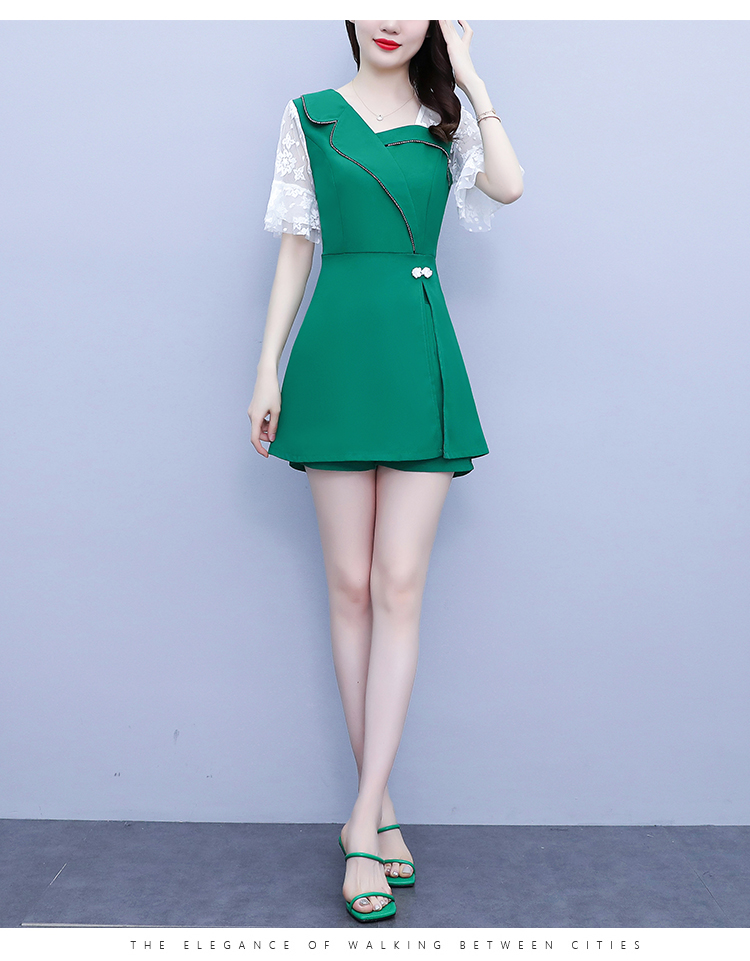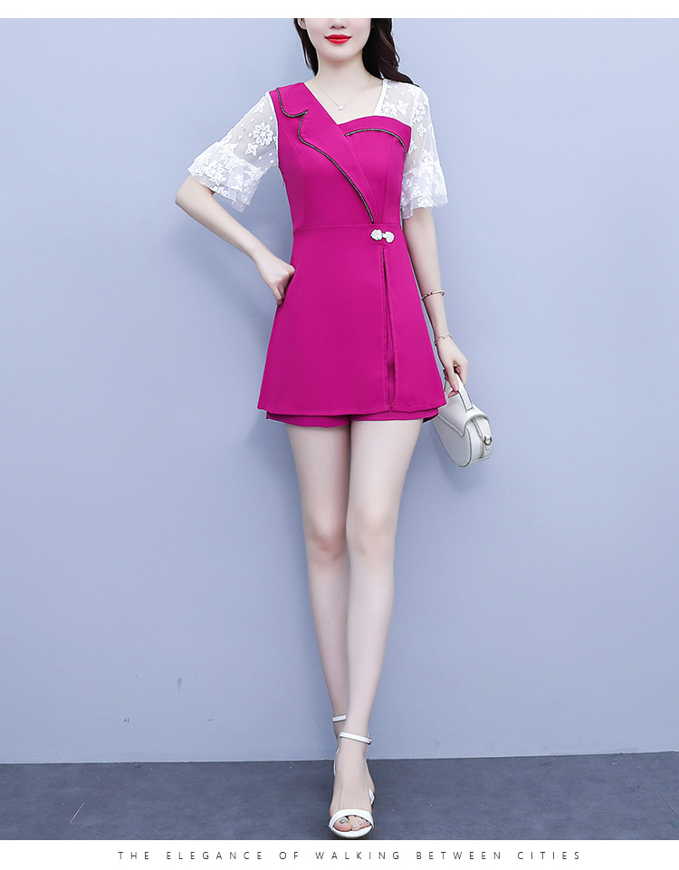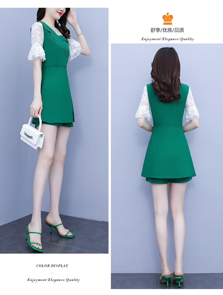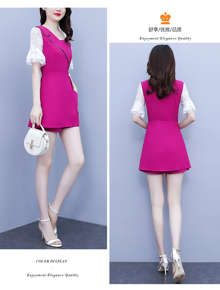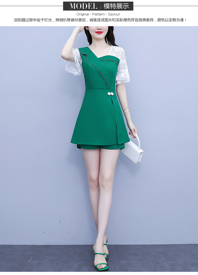 RM19856#大码女装2023年夏季新款胖MM蕾丝拼接时尚气质女神范俩件套套
