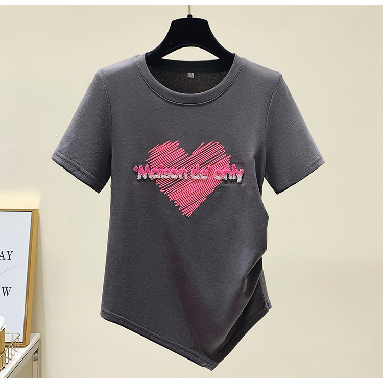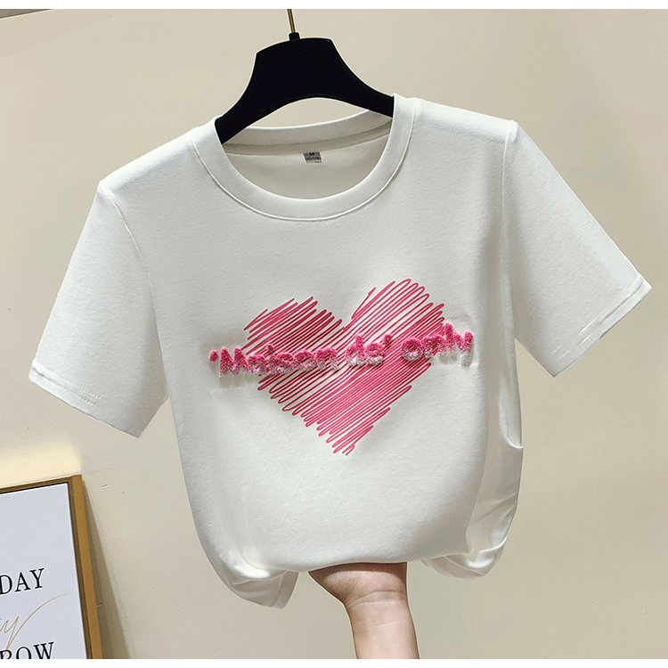 RM19694#短袖t恤女2023夏新款圆领牙刷绣爱心不规则ins上衣