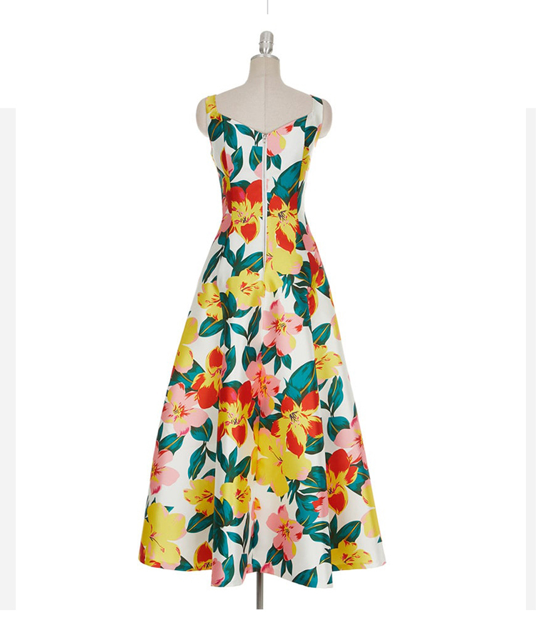 RM19919#夏季新款韩版时尚印花V领无袖吊带大摆长款修身显瘦连衣裙子