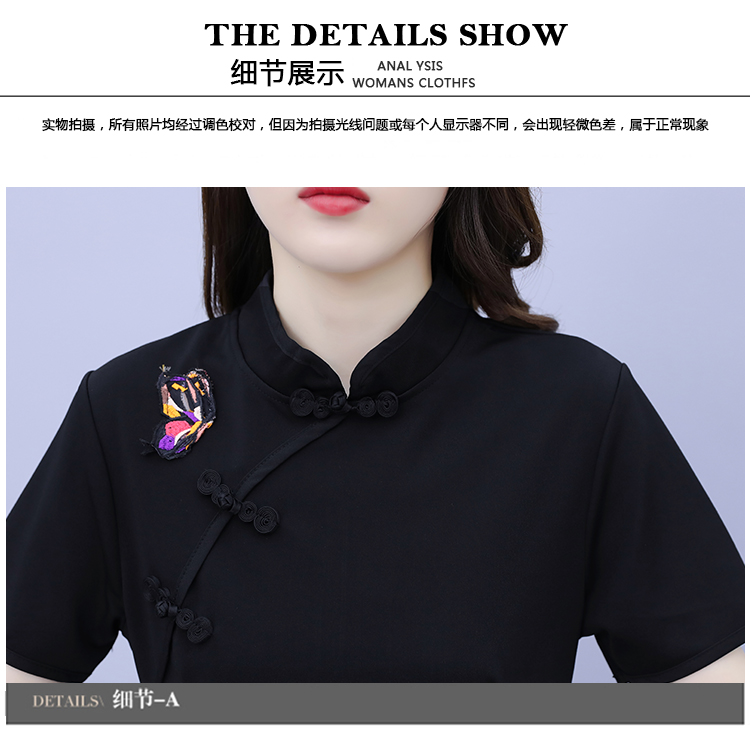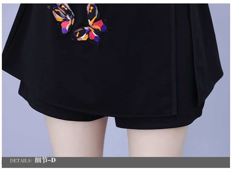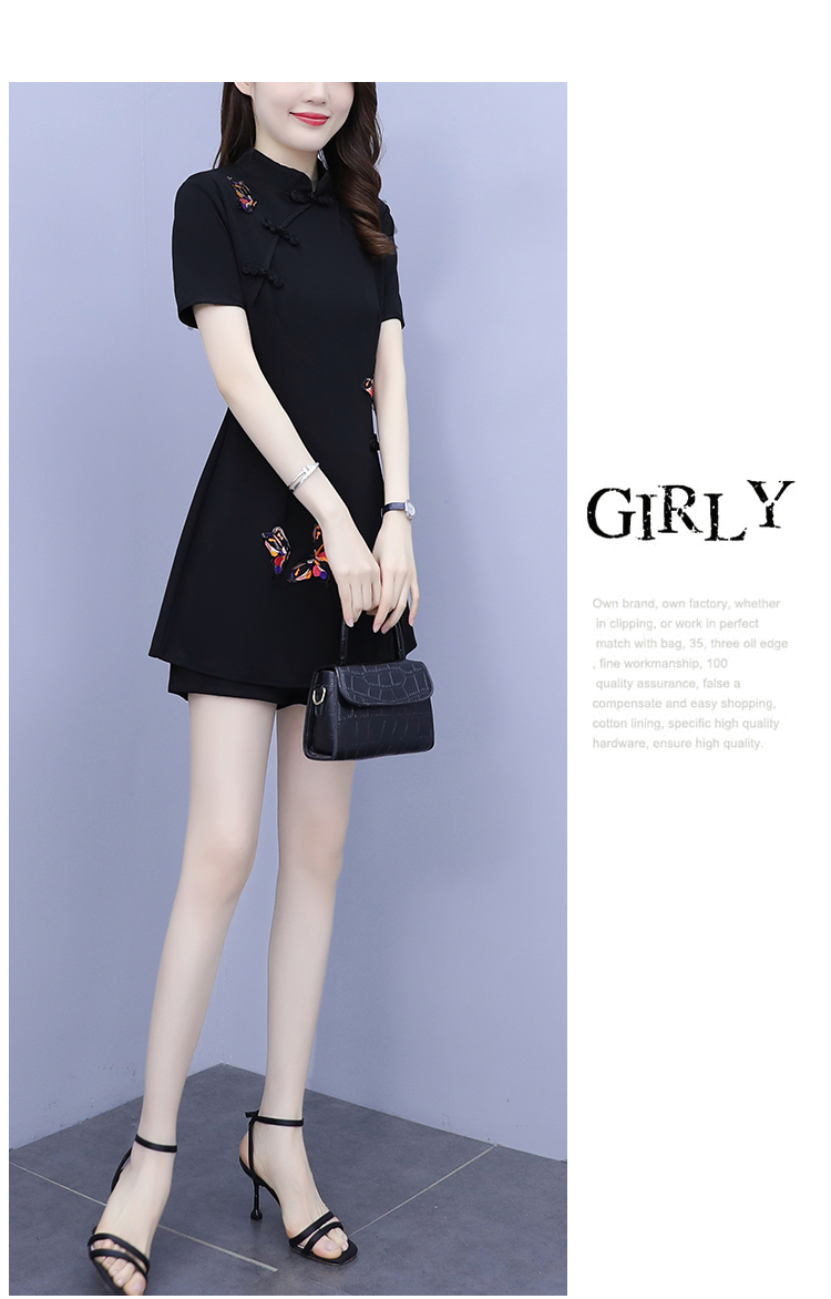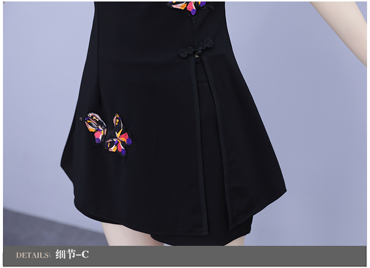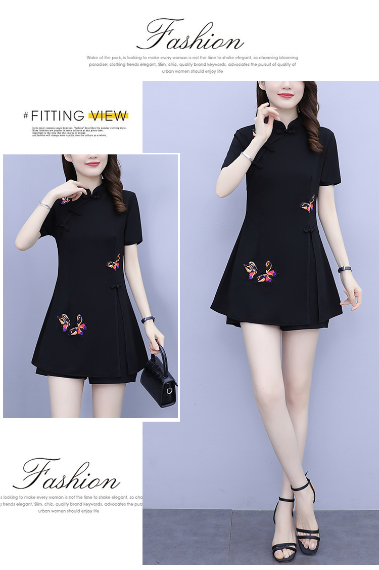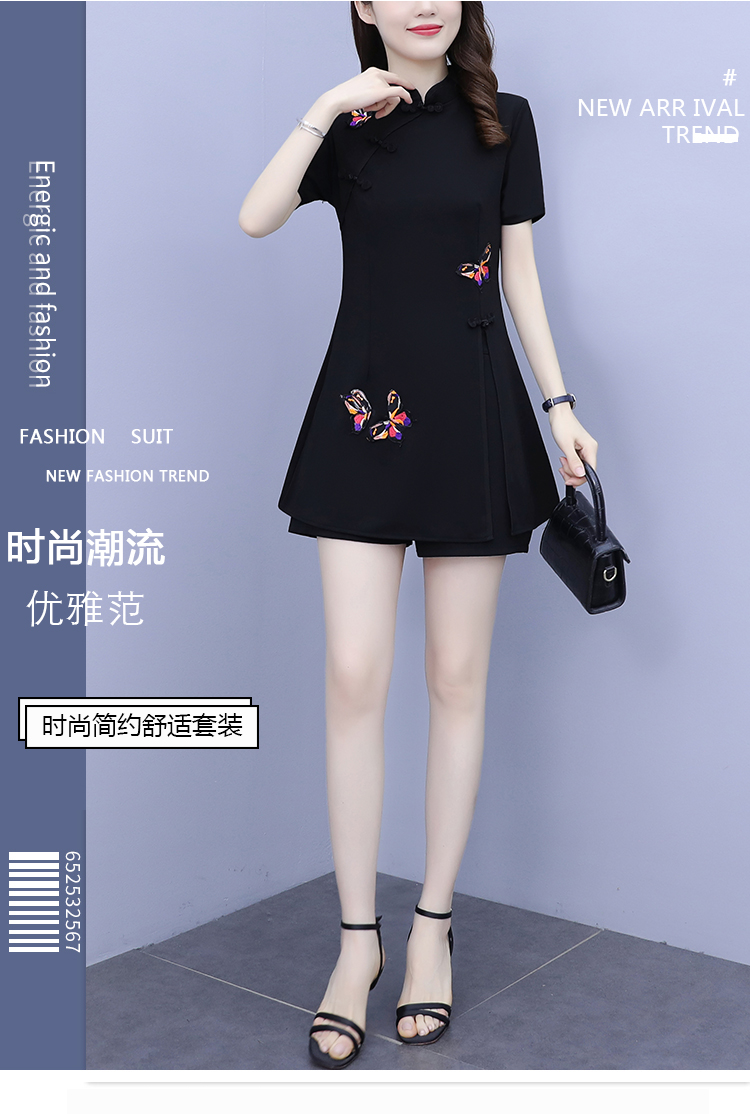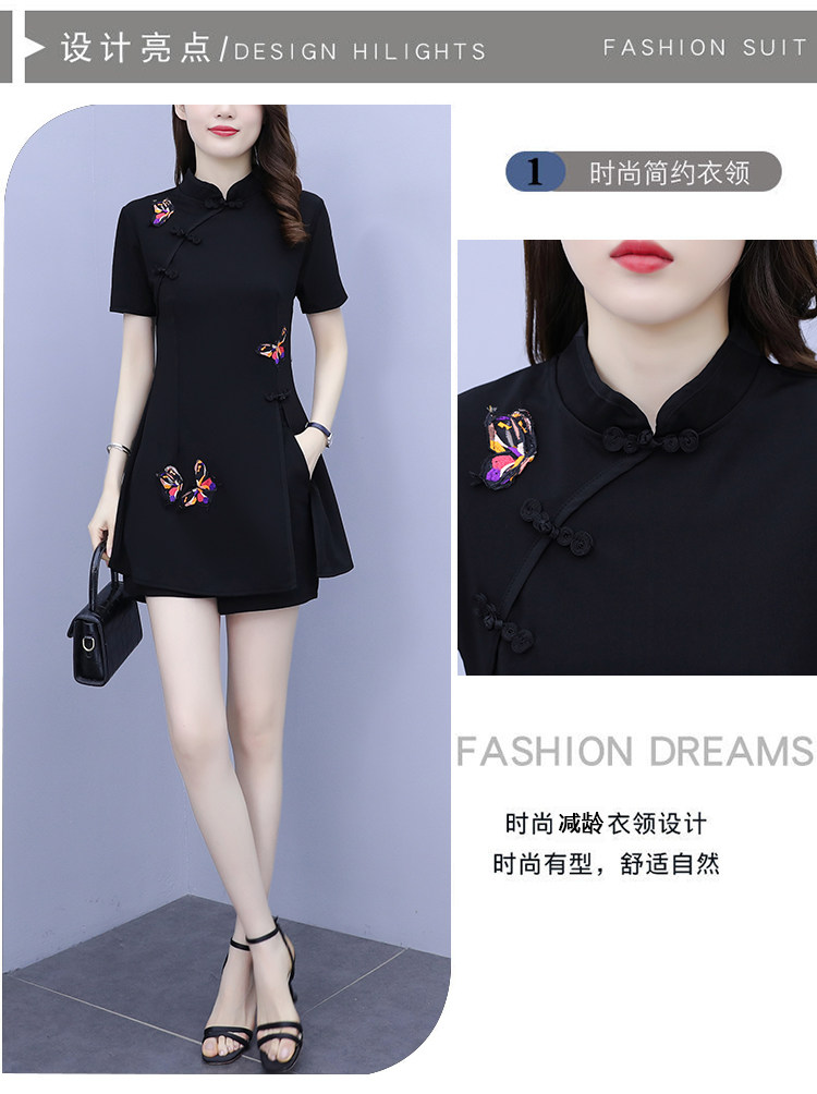 RM19784#大码女装2023夏新款民族风复古改良旗袍上衣+短裤两件套套装