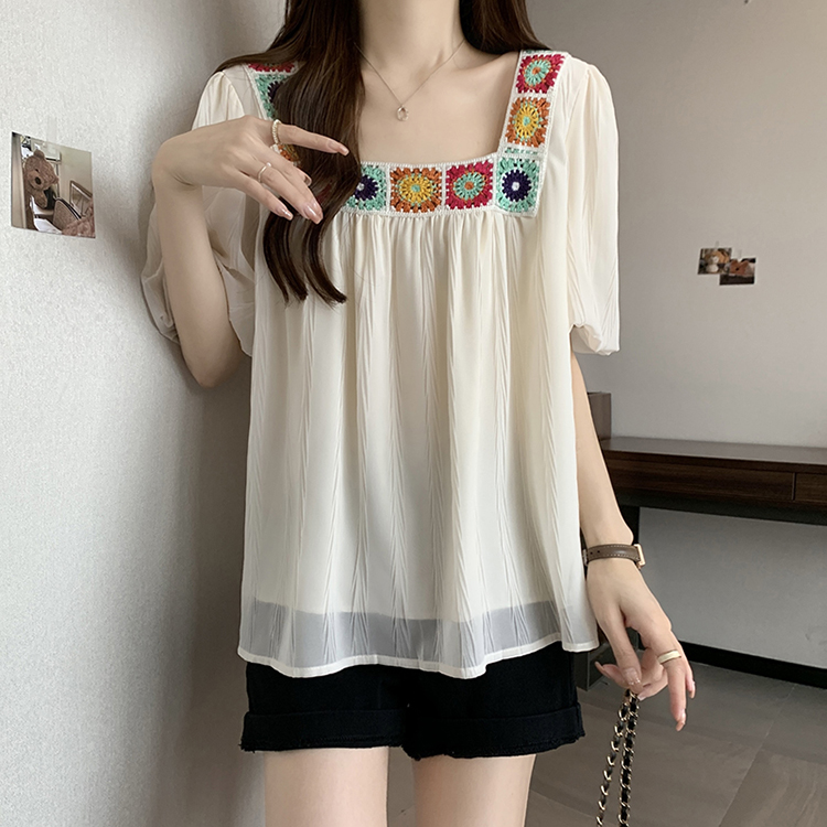 RM20221#夏装新款胖mm刺绣泡泡袖减龄洋气衬衣娃娃衫超仙气质上衣