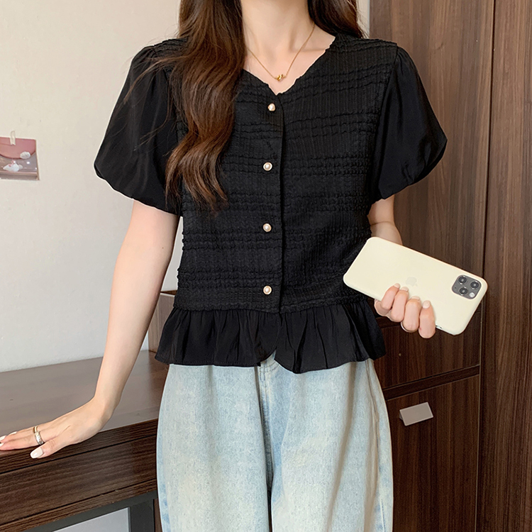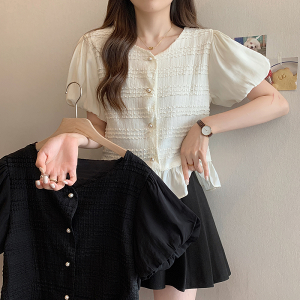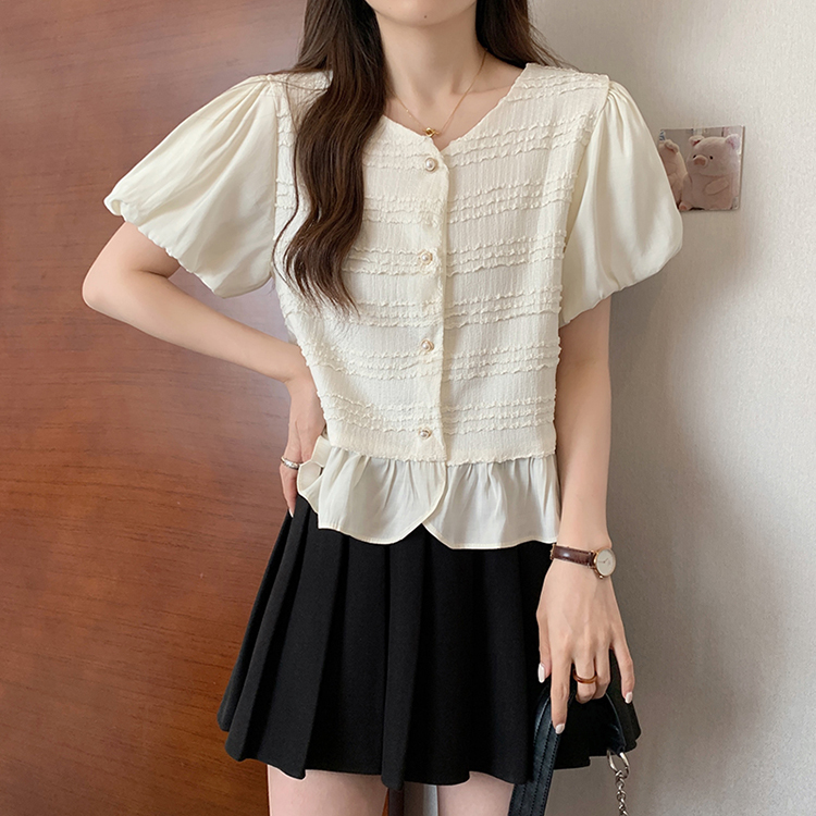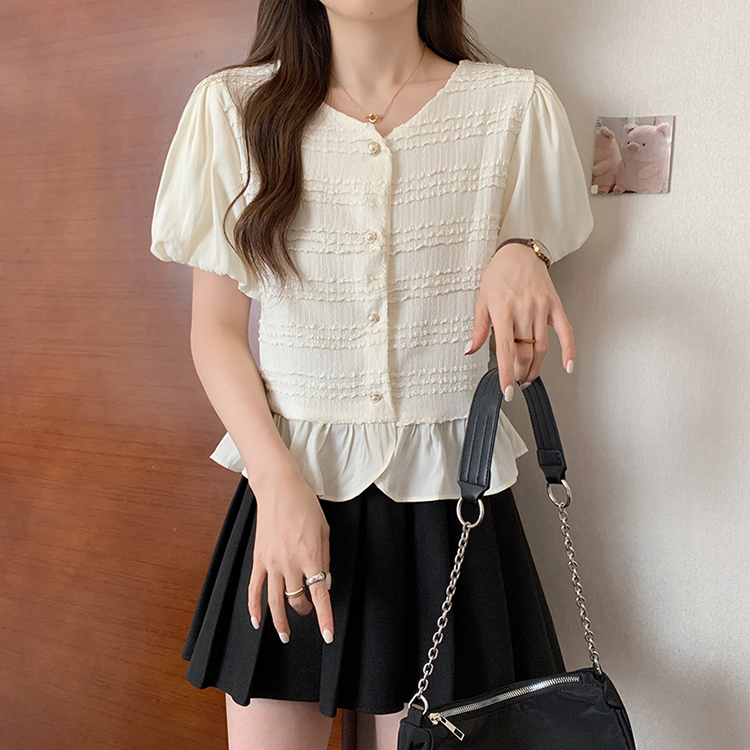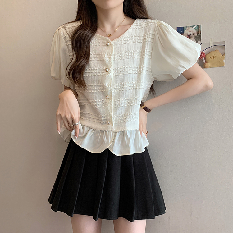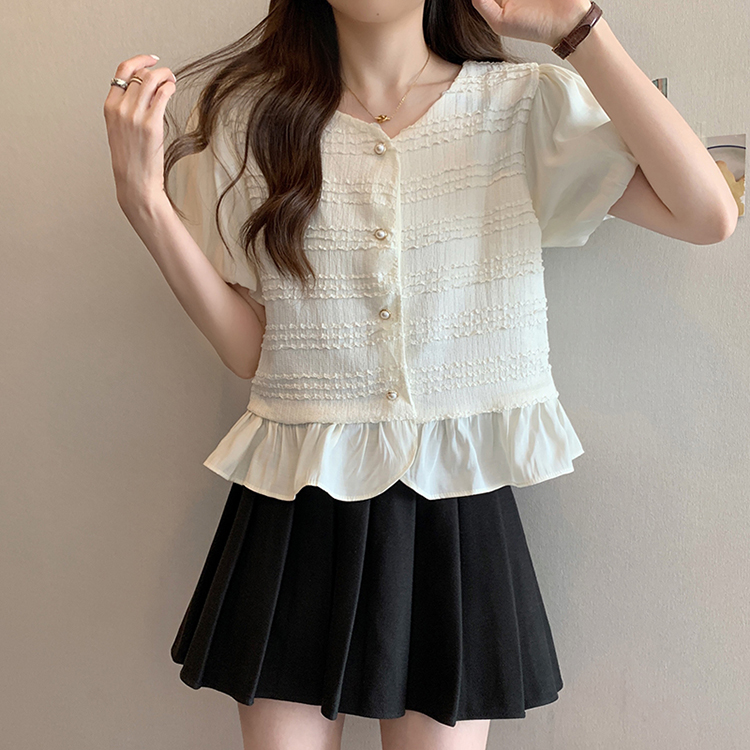 RM20229#夏装新款胖mm大码女多巴胺穿搭肌理感木耳边开衫小衫衬衣
