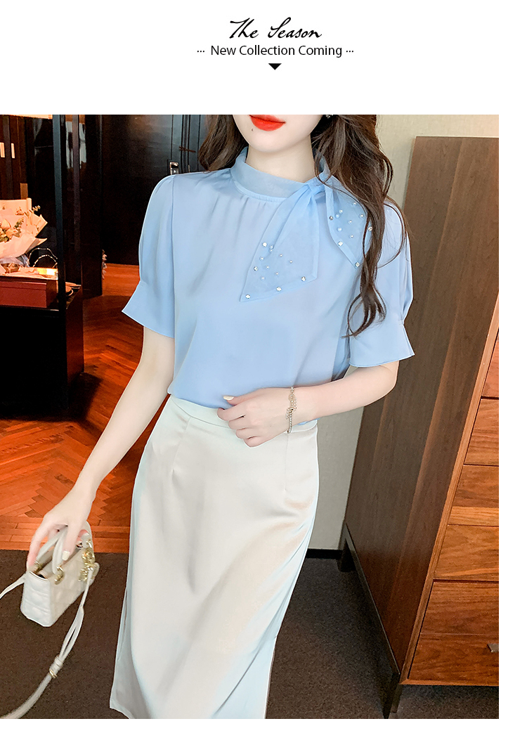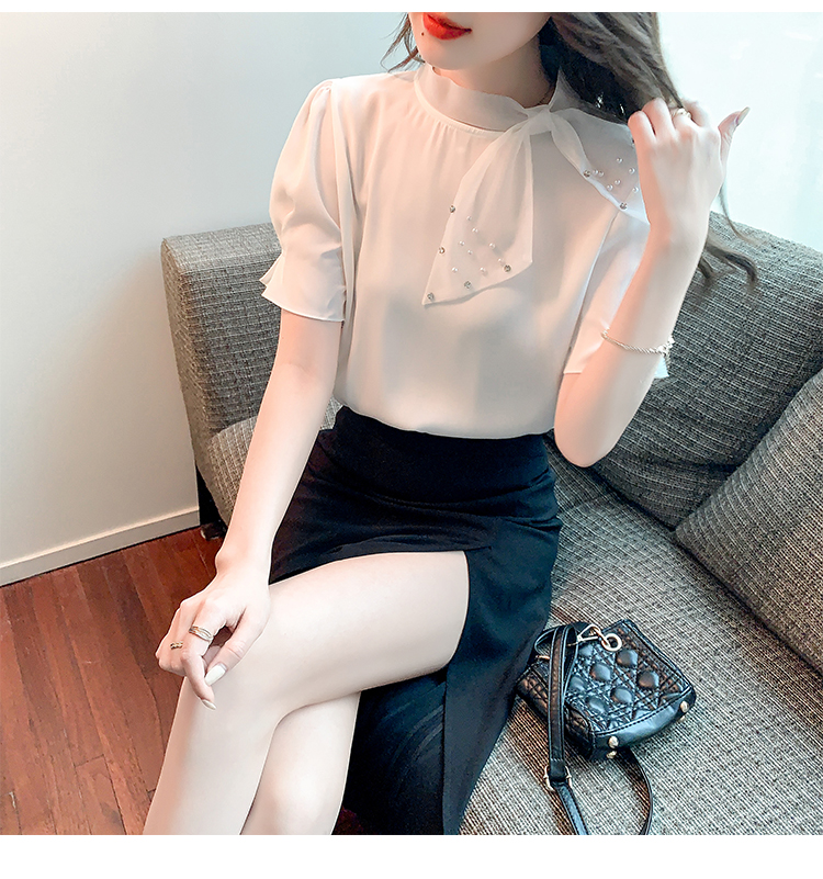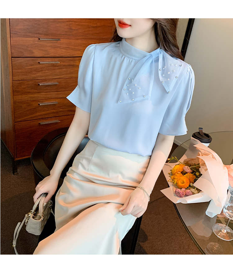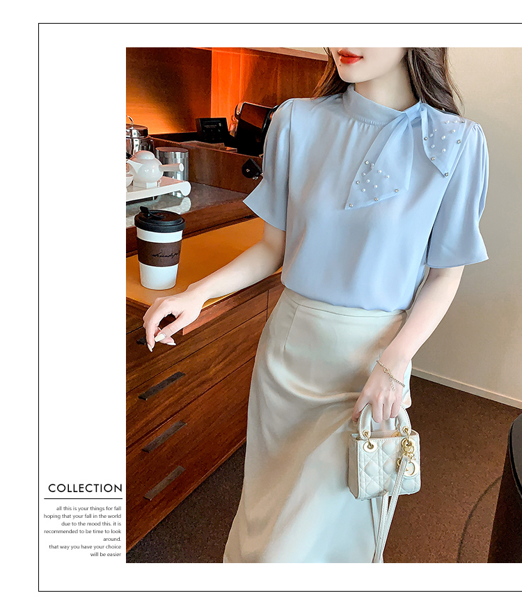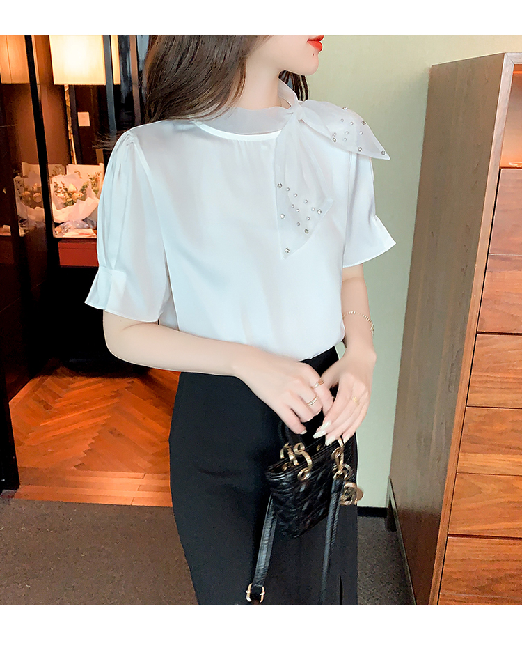 RM20242#夏季新款洋气设计感蝴蝶结短袖上衣时尚百搭显瘦打底内搭小衫