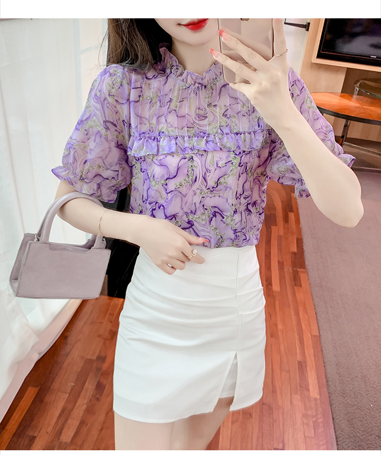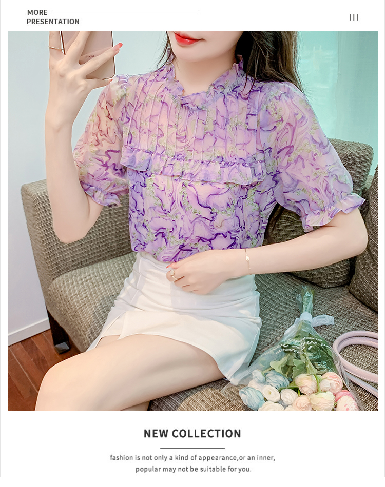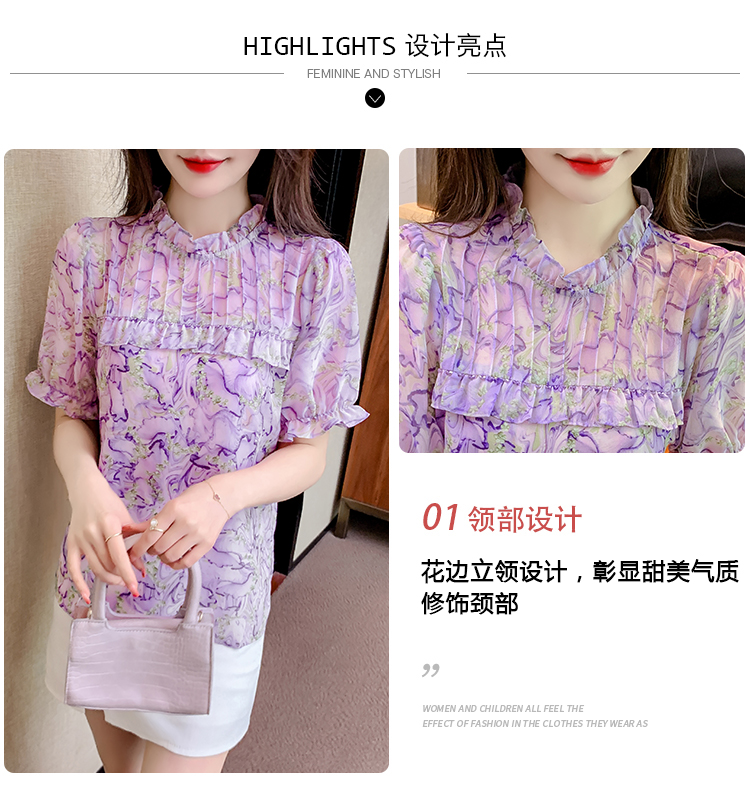 RM20245#夏季新款立领碎花雪纺衫气质上衣衬衫洋气小衫宽松显瘦遮肚