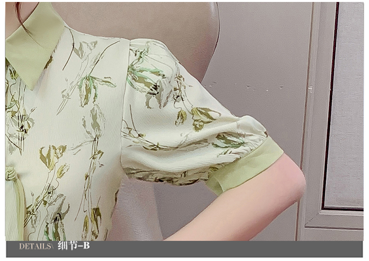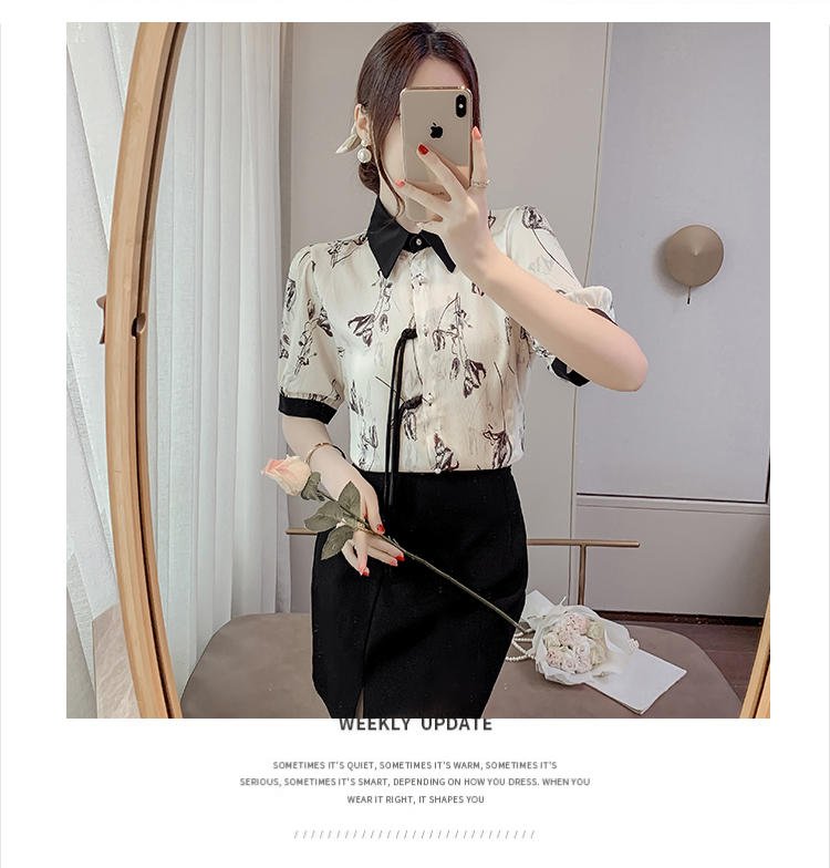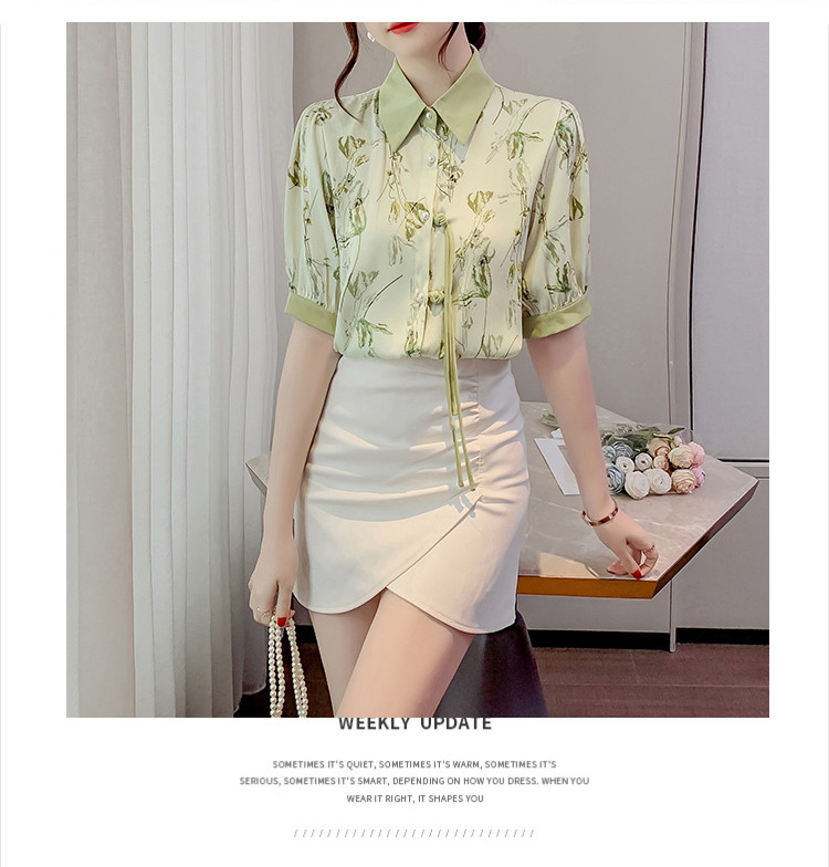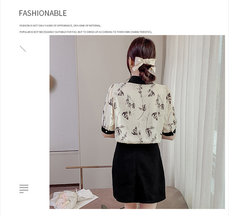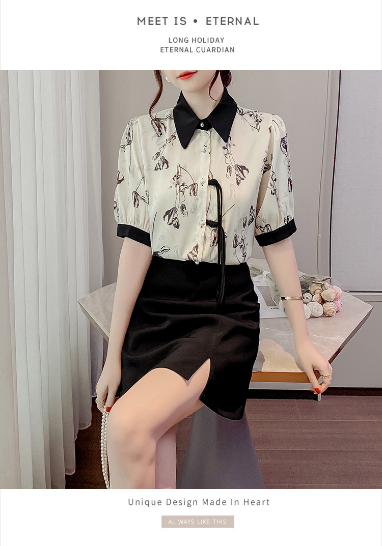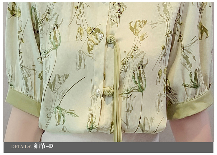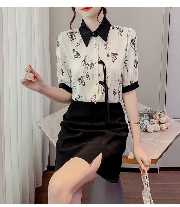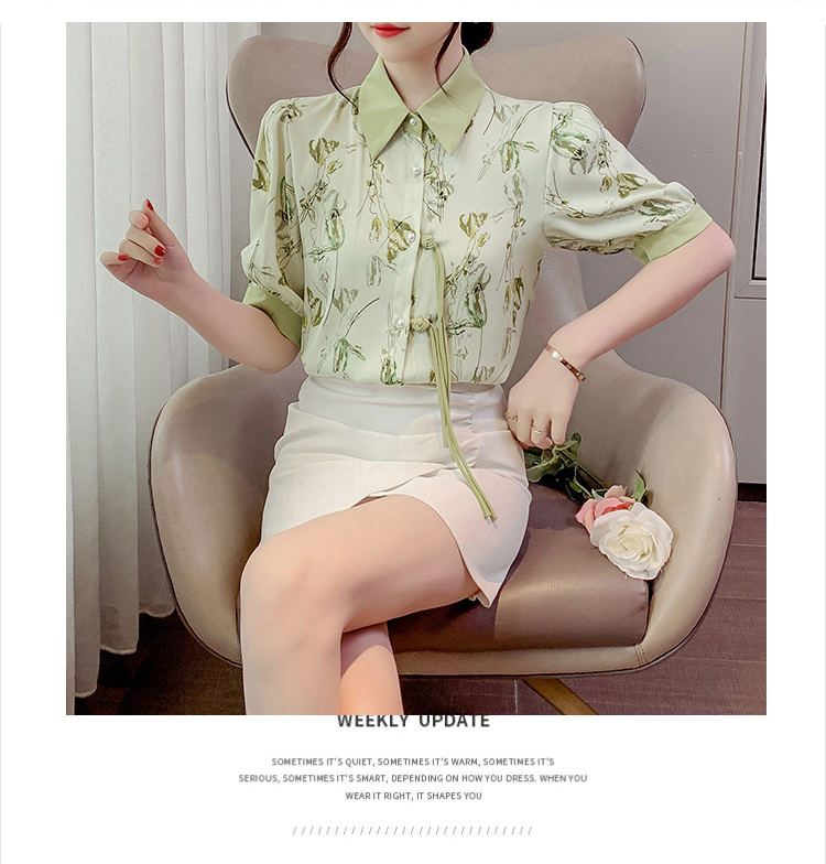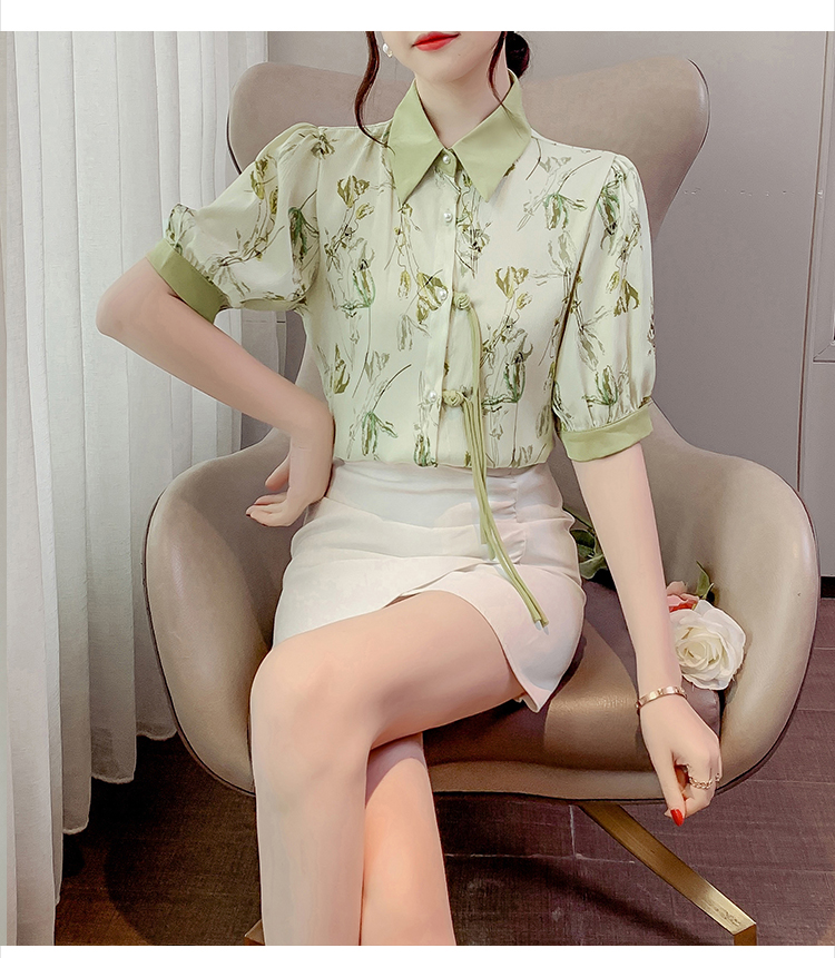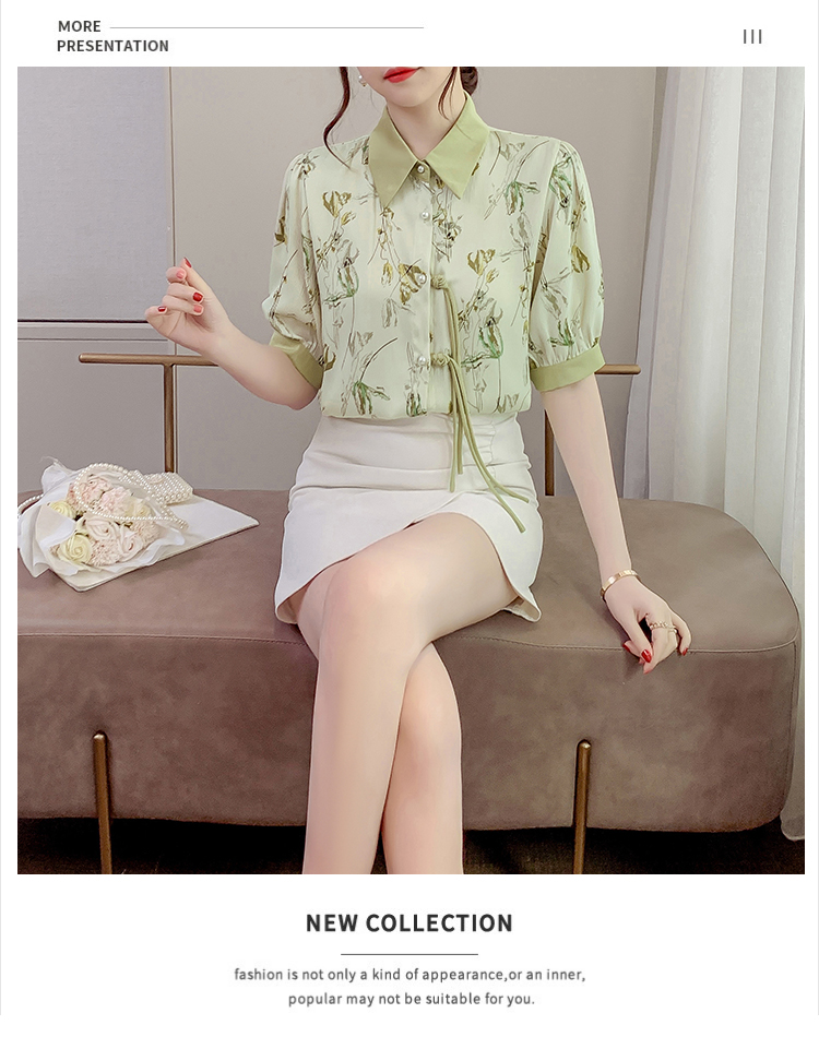 RM20246#复古写意水墨印花国风盘扣流苏POLO领短袖衬衫女2023夏季新款上衣