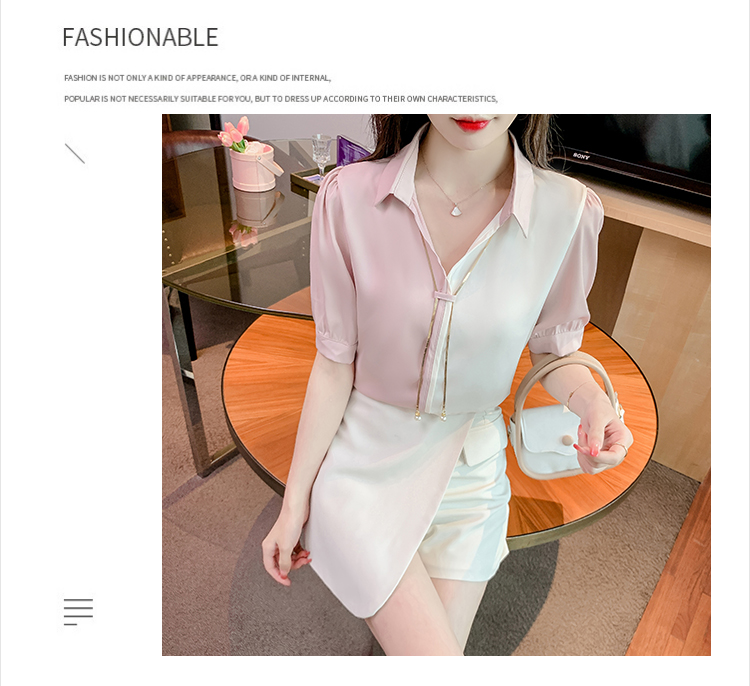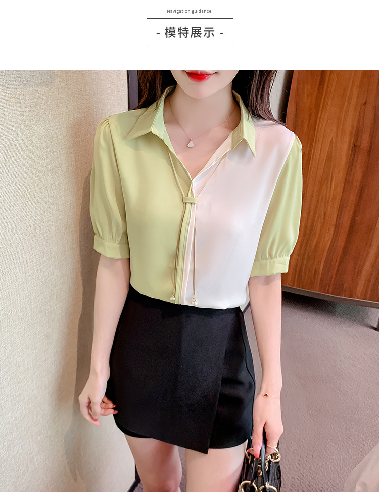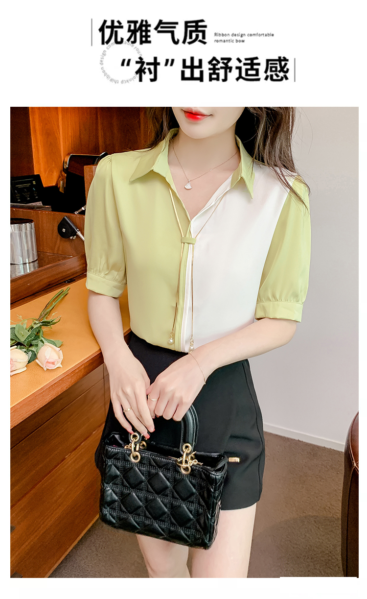 RM20247#短袖雪纺衬衫女2023年新款夏季宽洋气POLO领上衣气质漂亮小衫衬衣