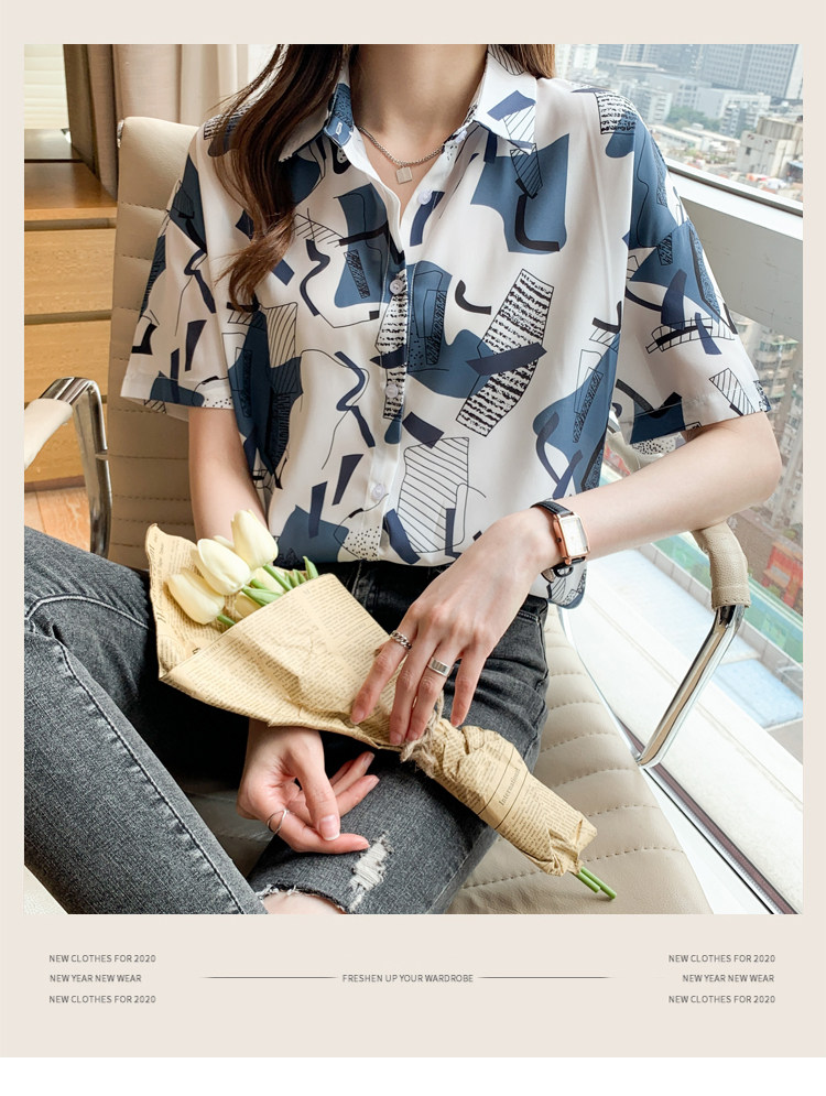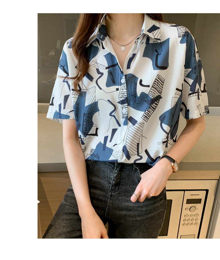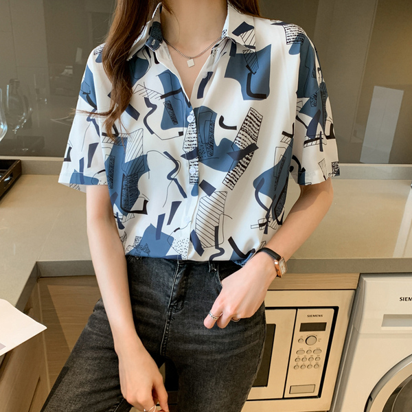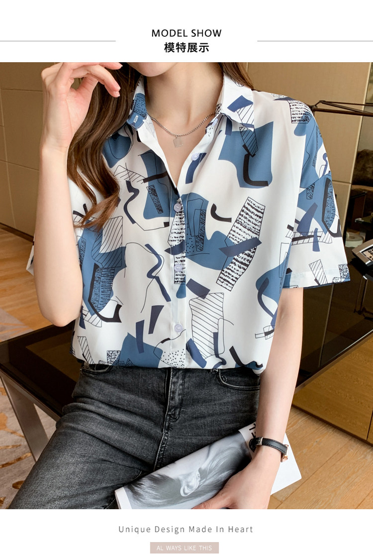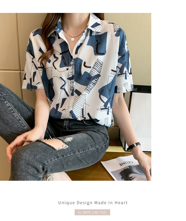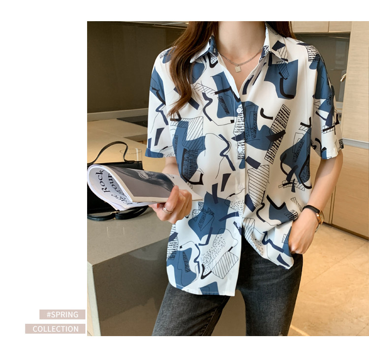 RM20277#洋气休闲夏季女装沙滩翻领短袖雪纺衫上衣开衫衬衫打底港风