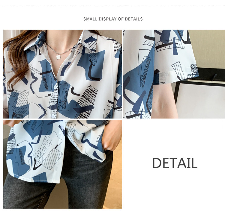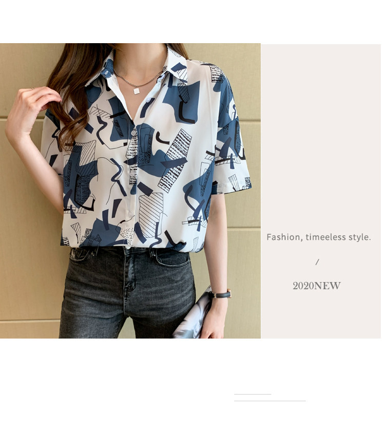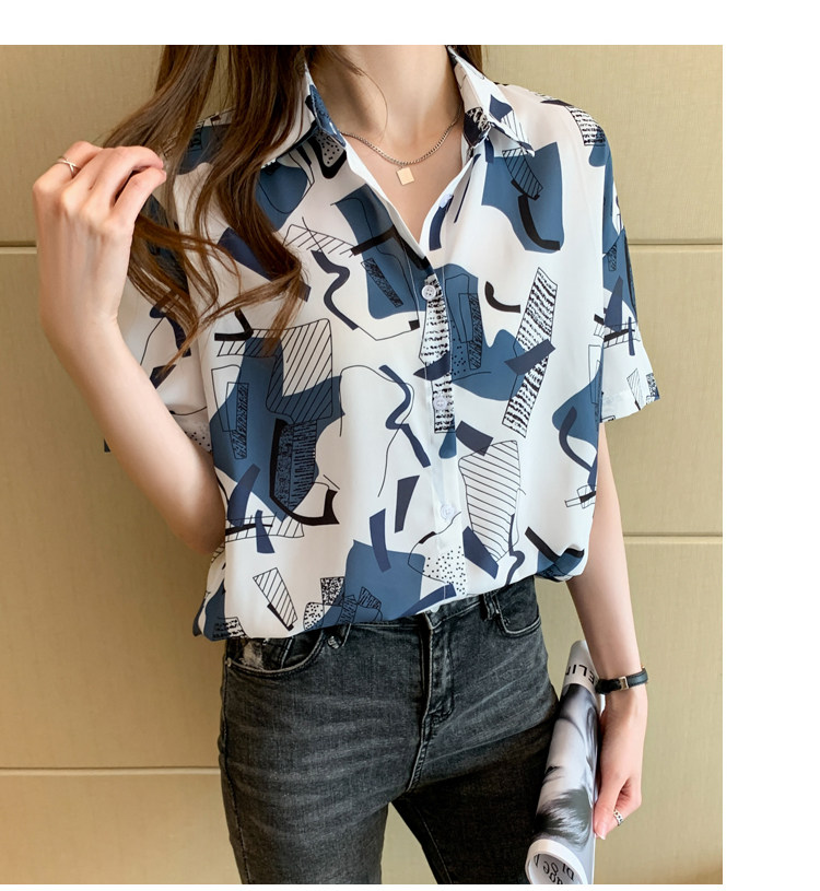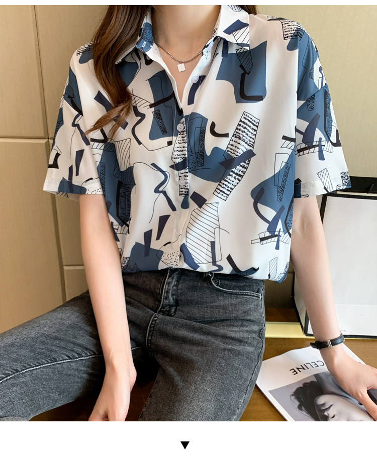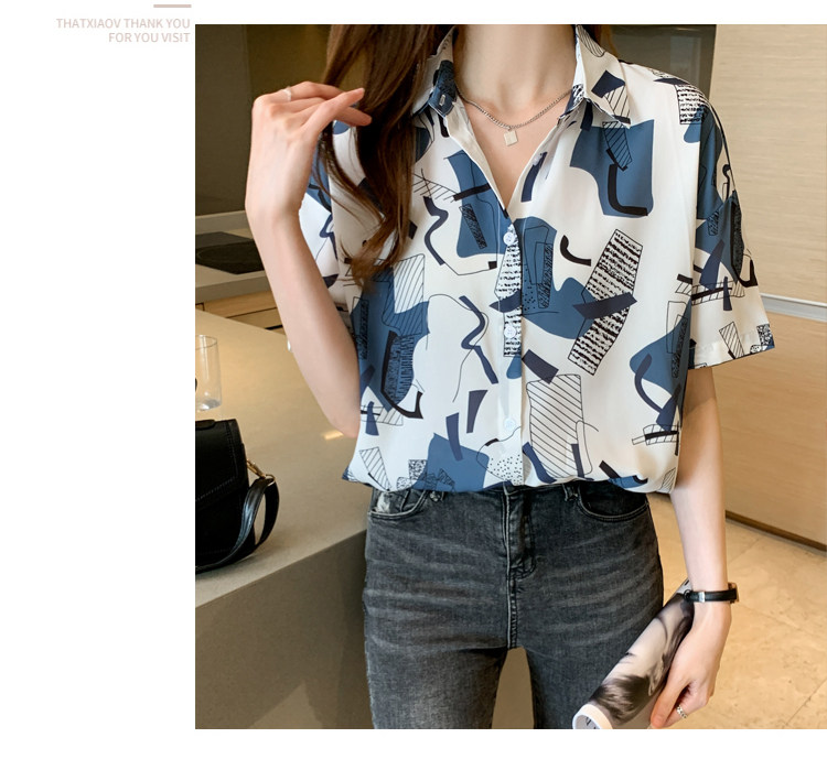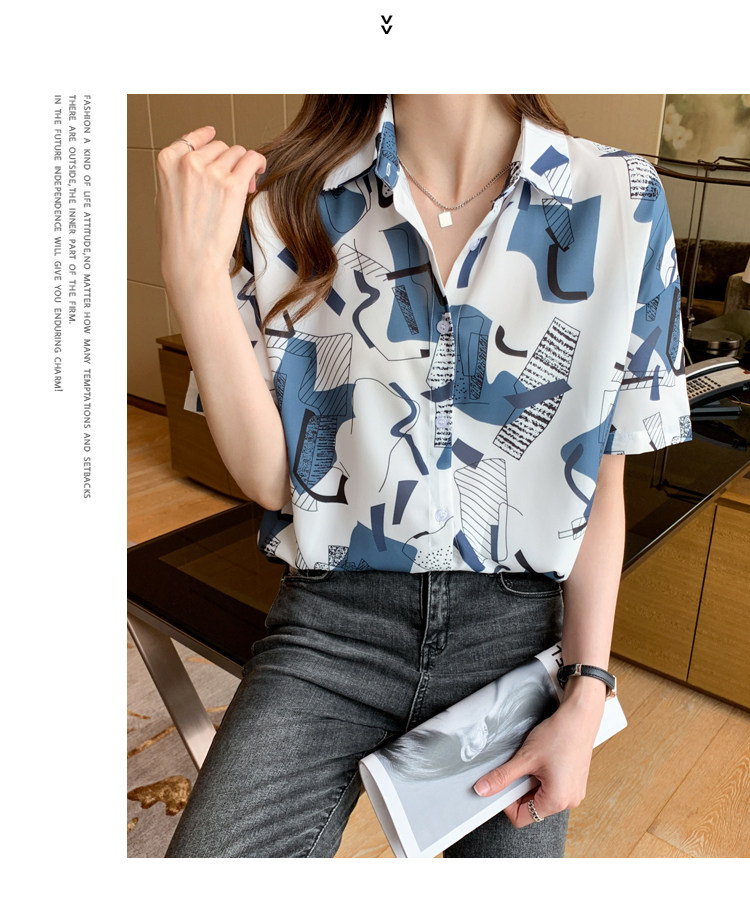 RM20277#洋气休闲夏季女装沙滩翻领短袖雪纺衫上衣开衫衬衫打底港风