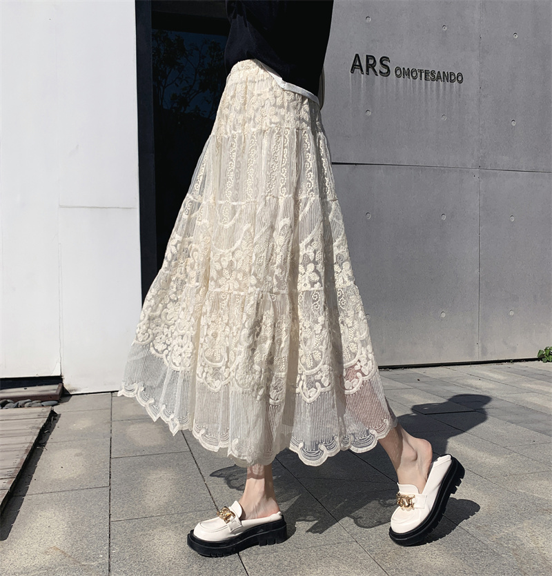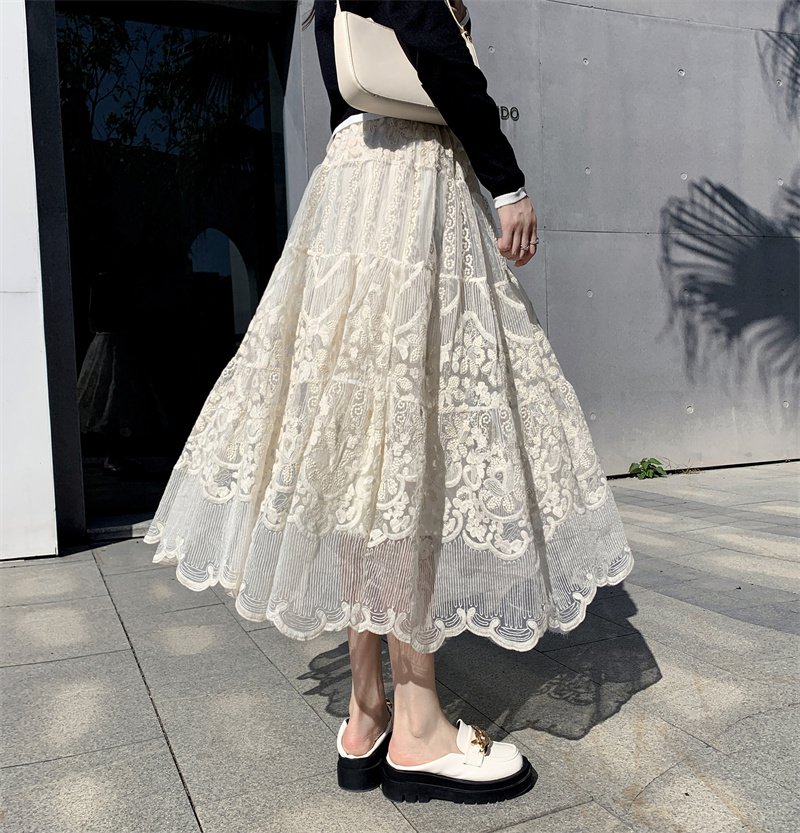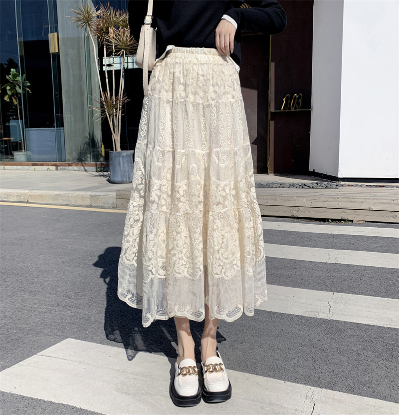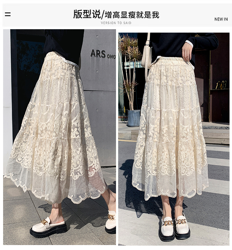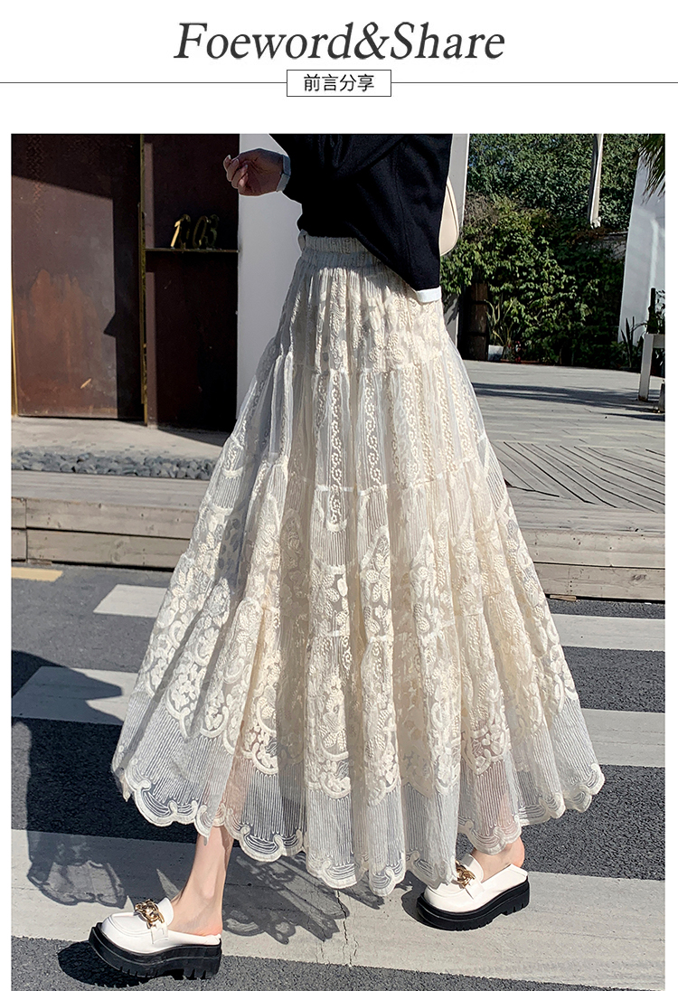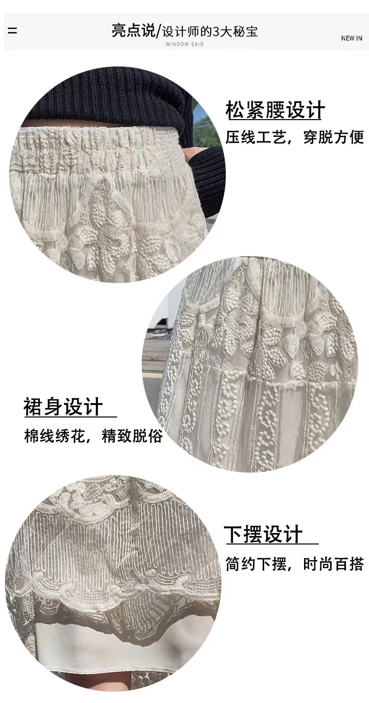 RM20591#刺绣蕾丝半身裙女2023秋季新款高腰显瘦a字裙秋中长款大摆仙女裙