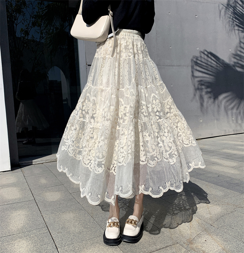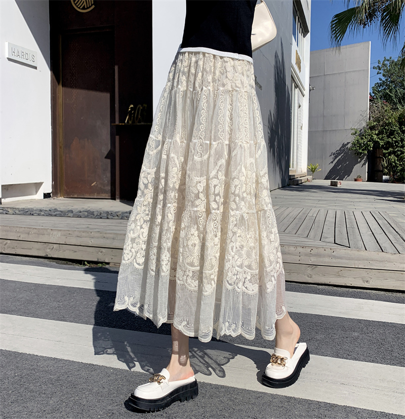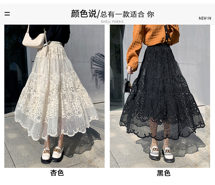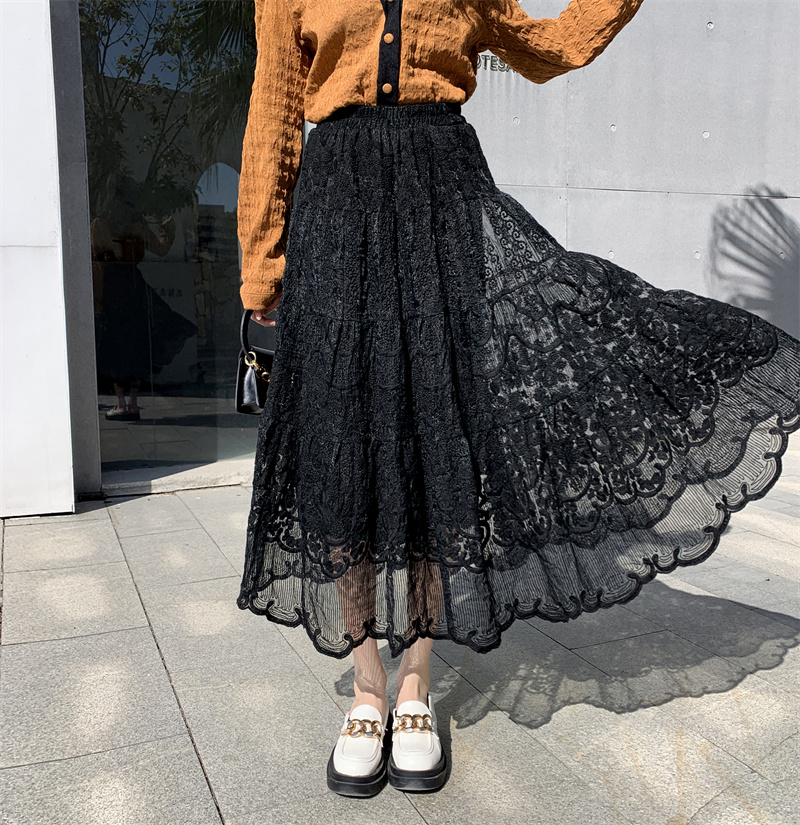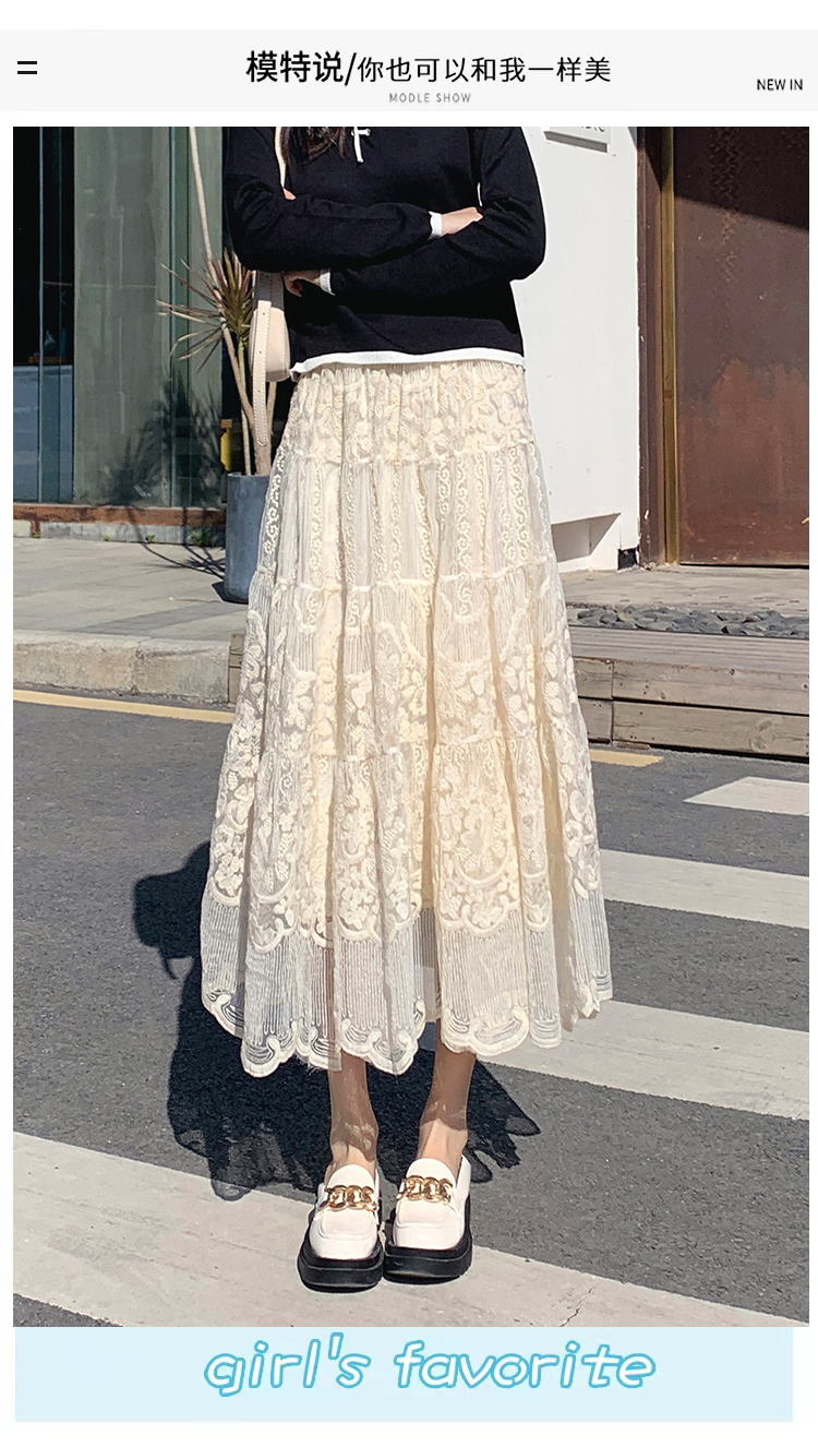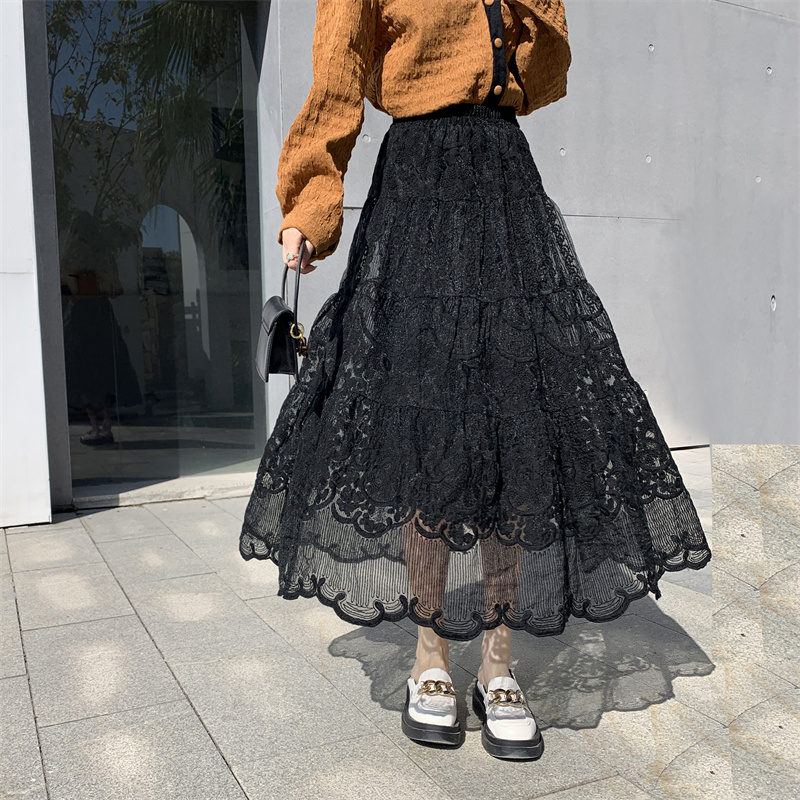 RM20591#刺绣蕾丝半身裙女2023秋季新款高腰显瘦a字裙秋中长款大摆仙女裙