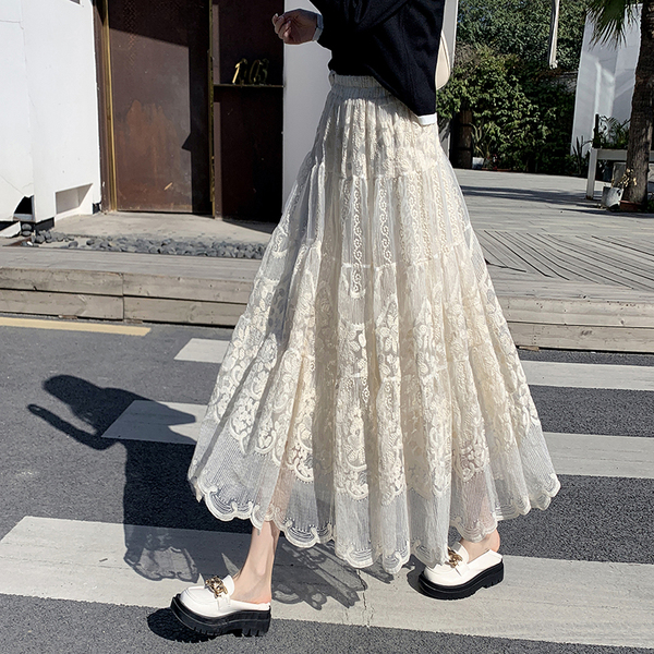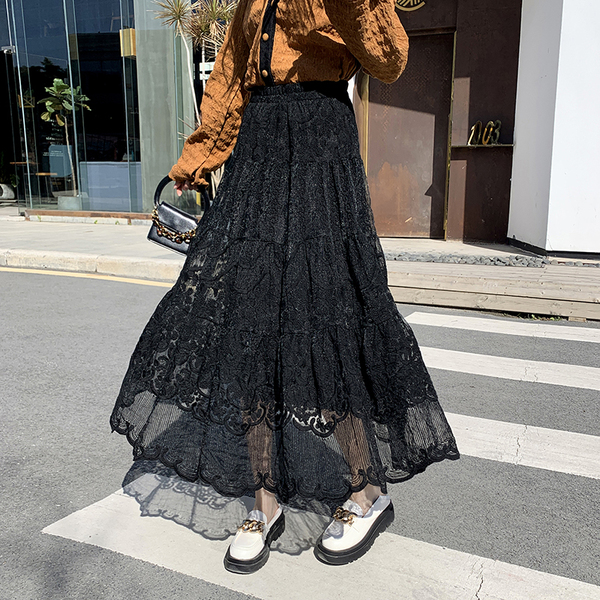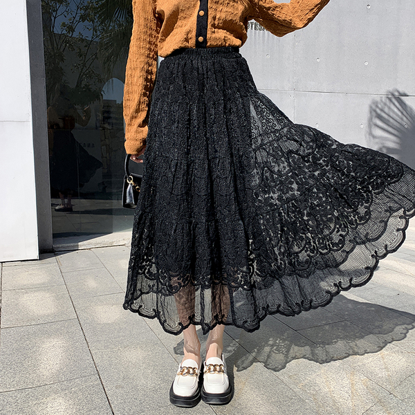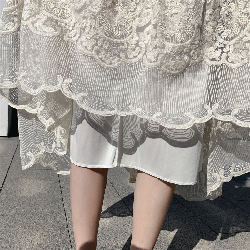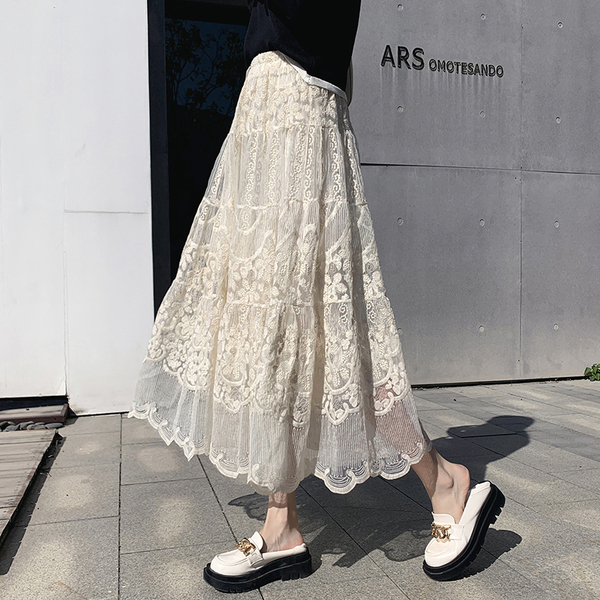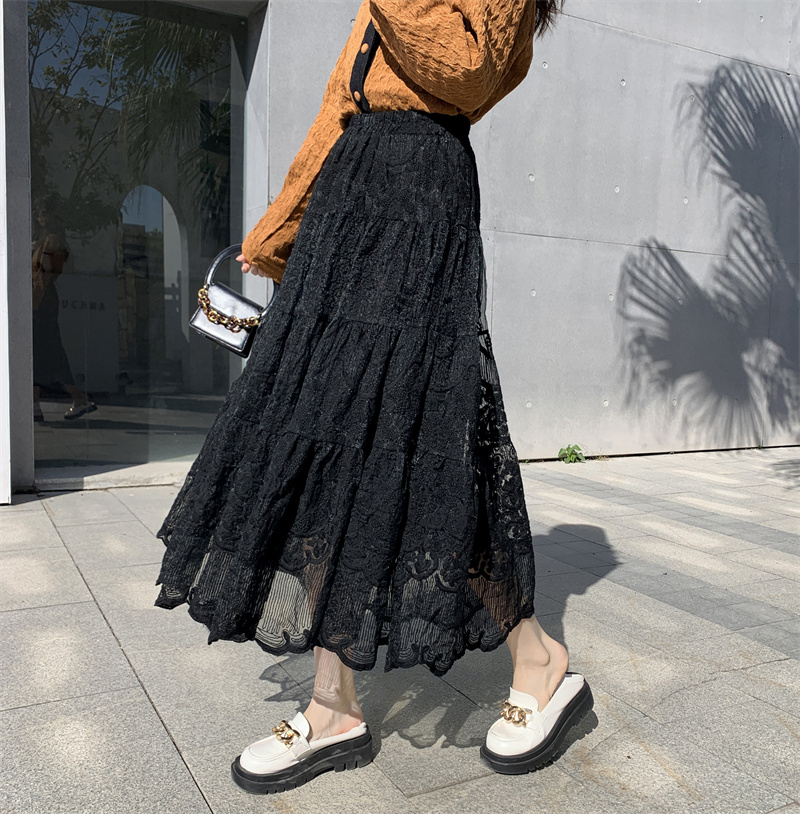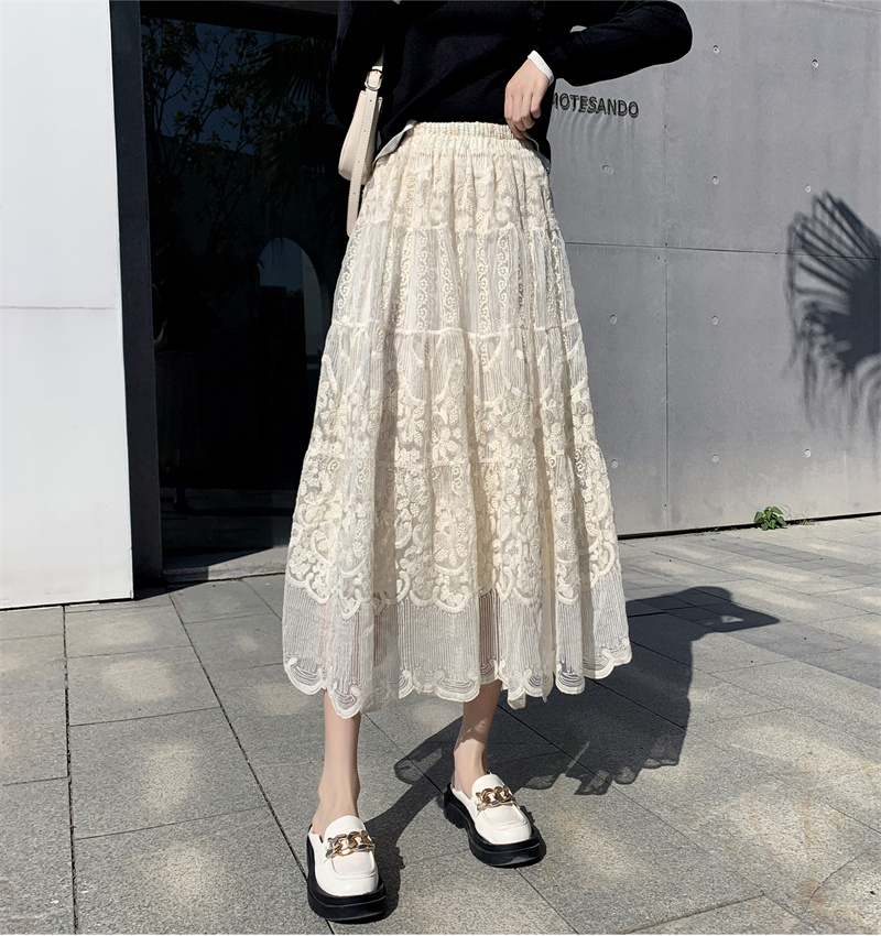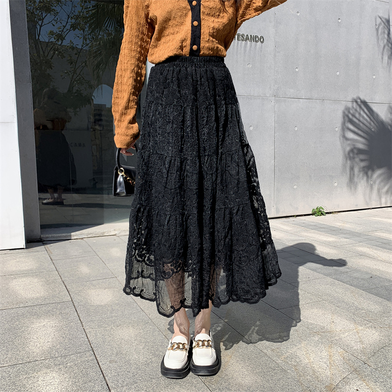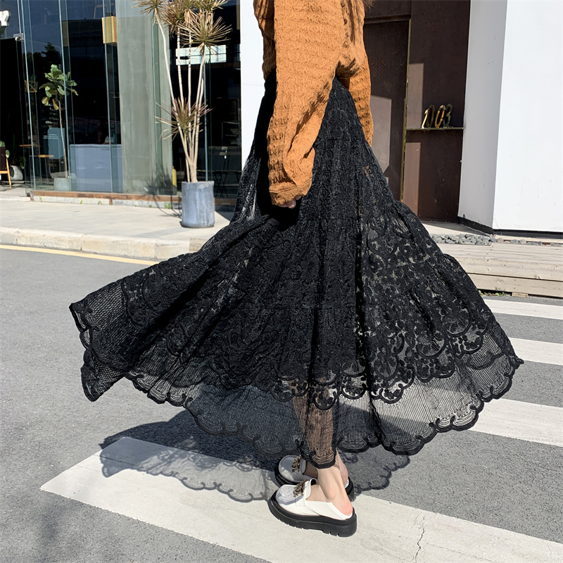 RM20591#刺绣蕾丝半身裙女2023秋季新款高腰显瘦a字裙秋中长款大摆仙女裙
