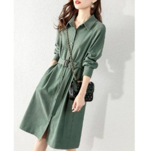 RM20623#新款长袖连衣裙女修身气质裙子通勤收腰系带显瘦衬衫裙子