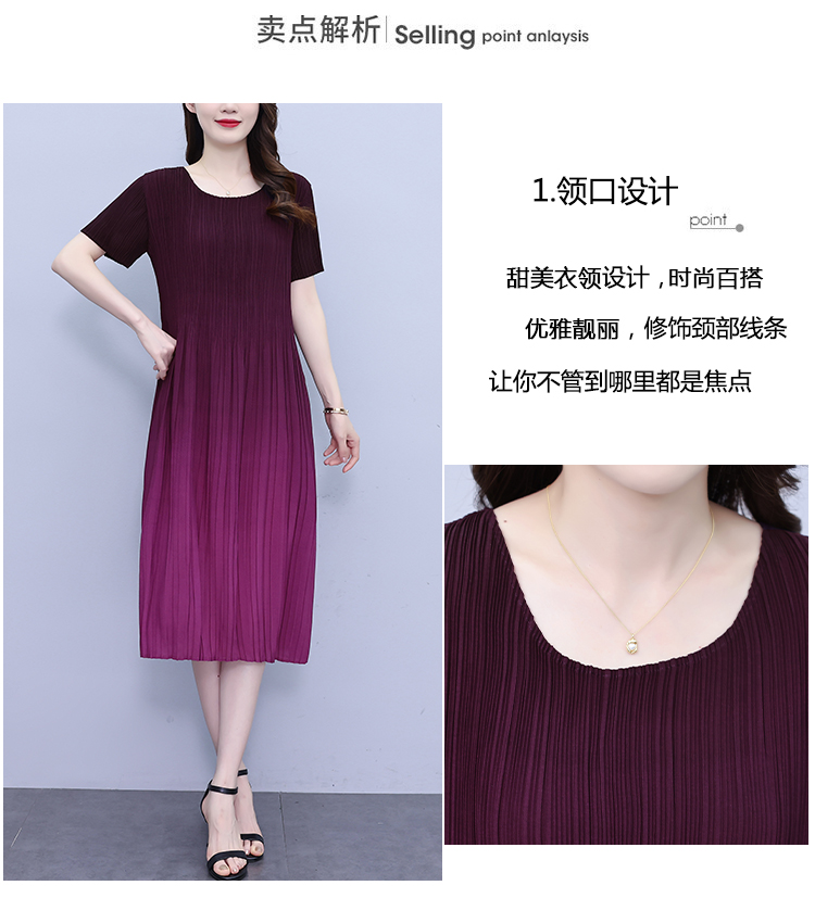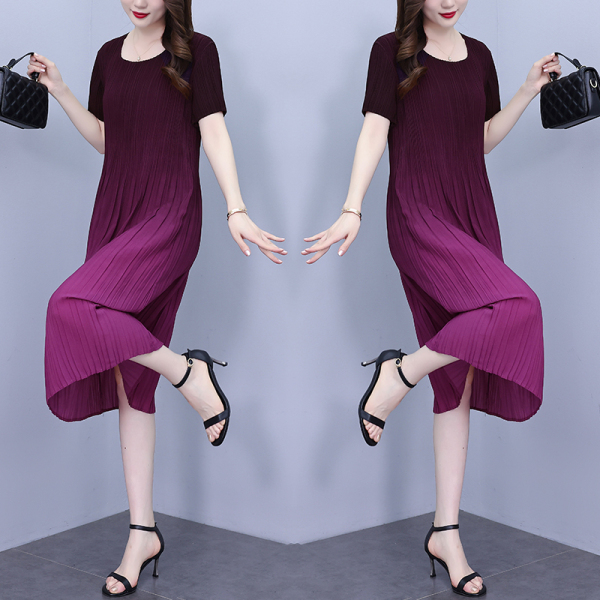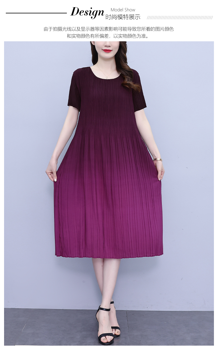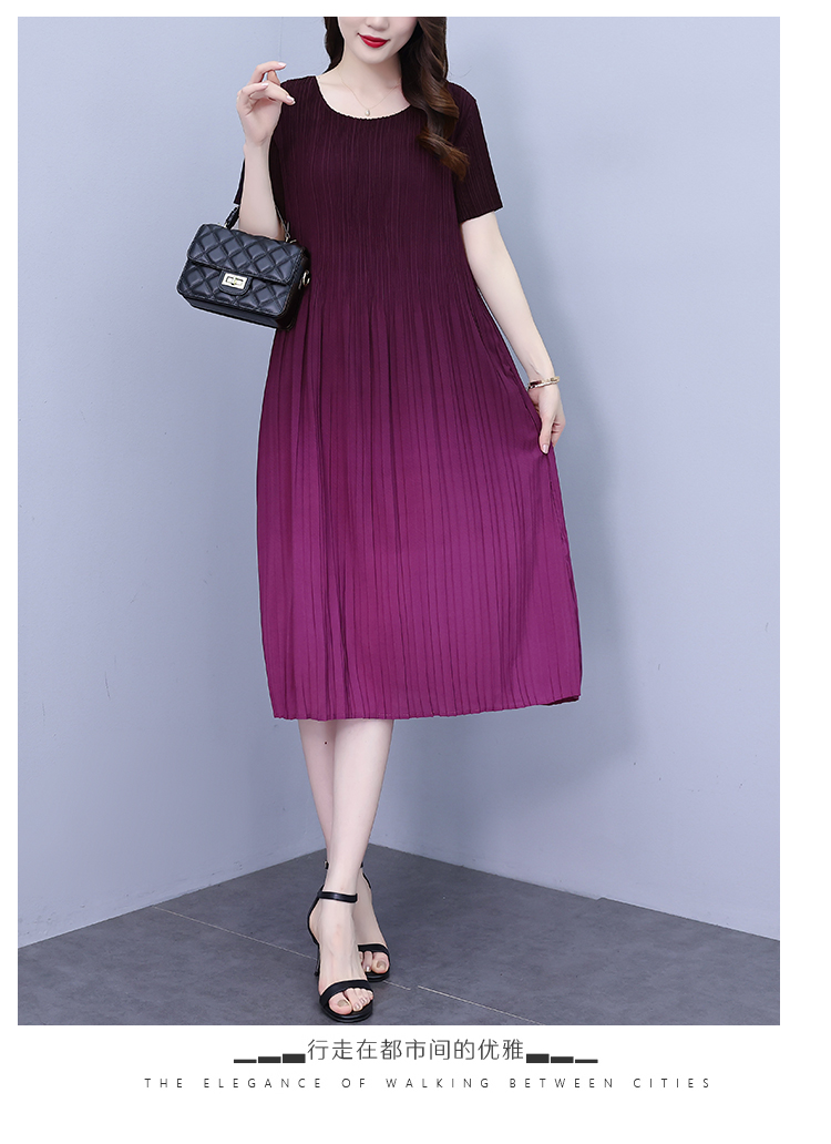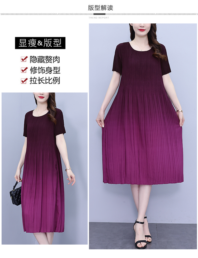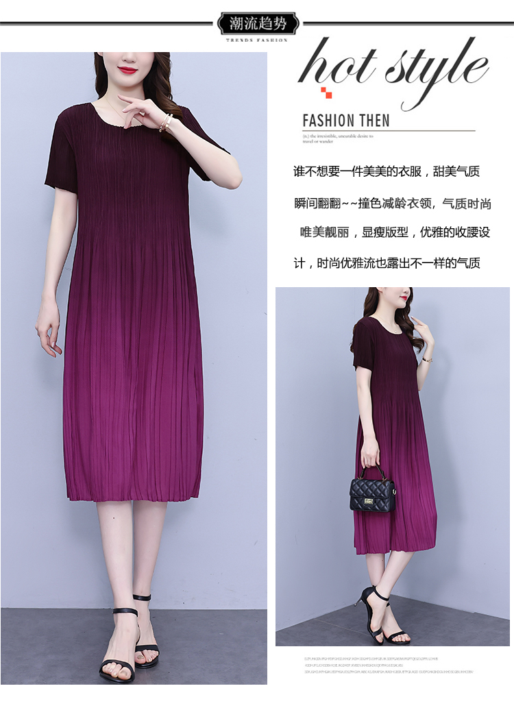 RM20747#胖MM大码女装宽松显瘦褶皱渐变时尚个性连衣裙气质修身直筒长裙