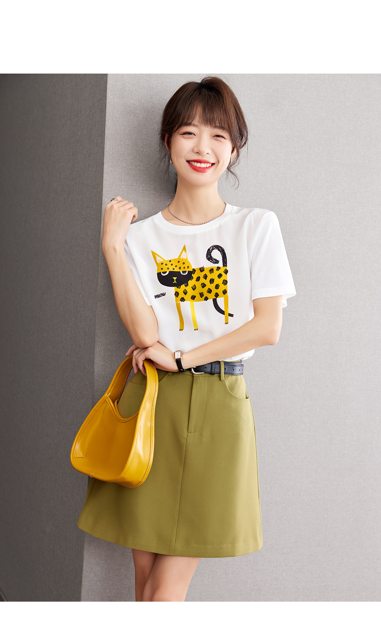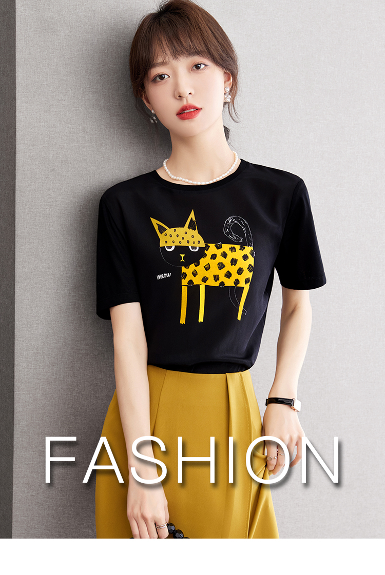 RM21003#减龄印花真丝短袖t恤女2023夏季独特设计柔软上衣