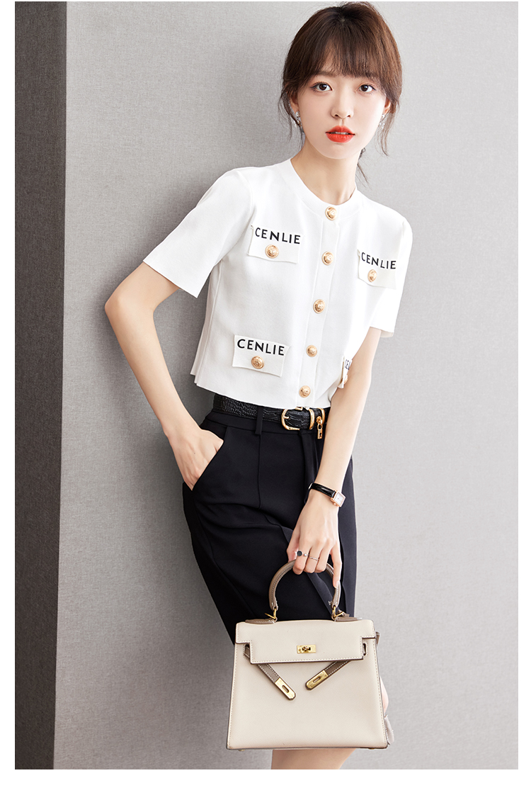 RM21004#夏气质小香风短袖针织开衫女时尚字母刺绣上衣小衫