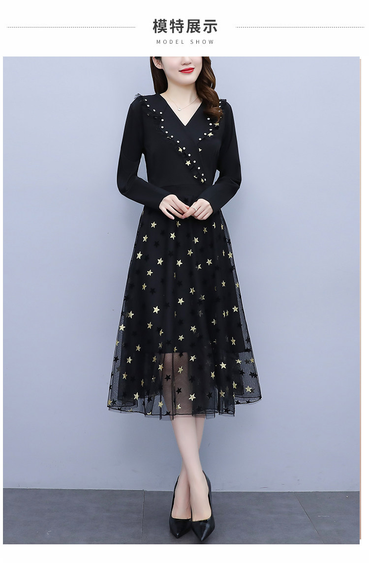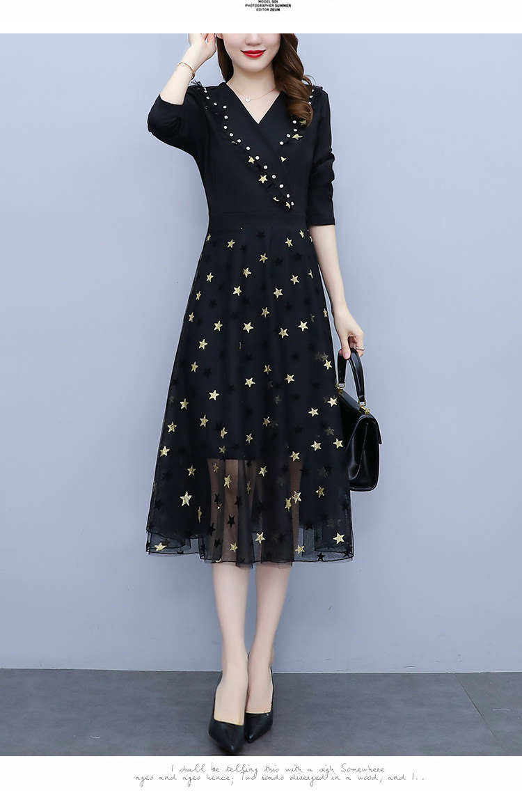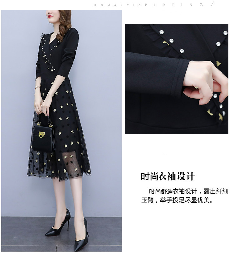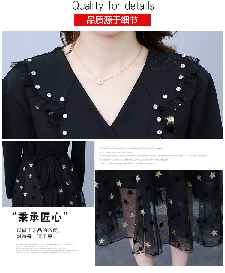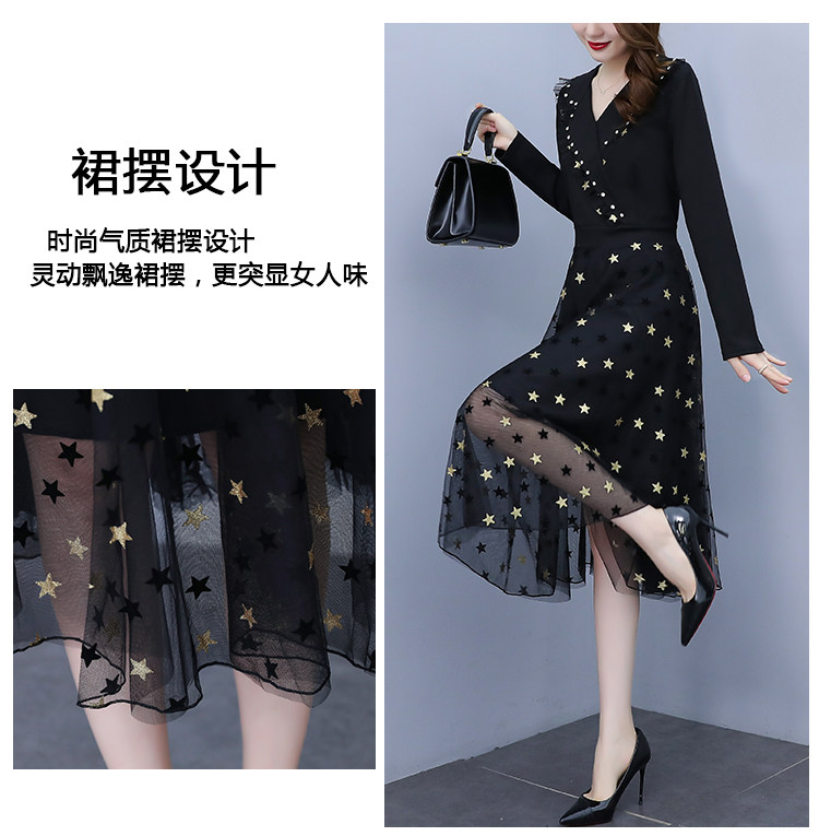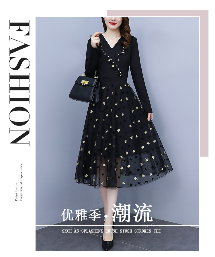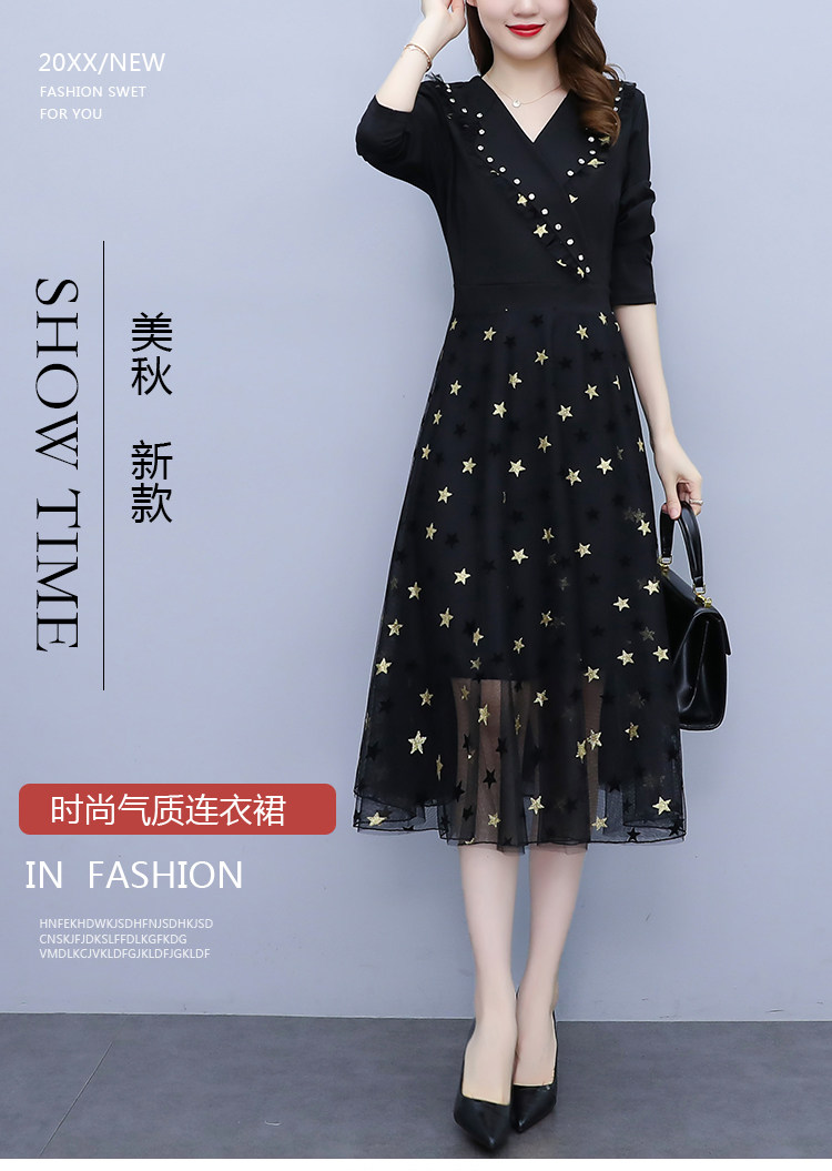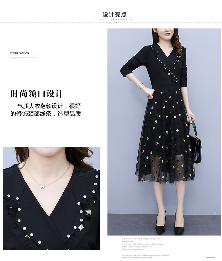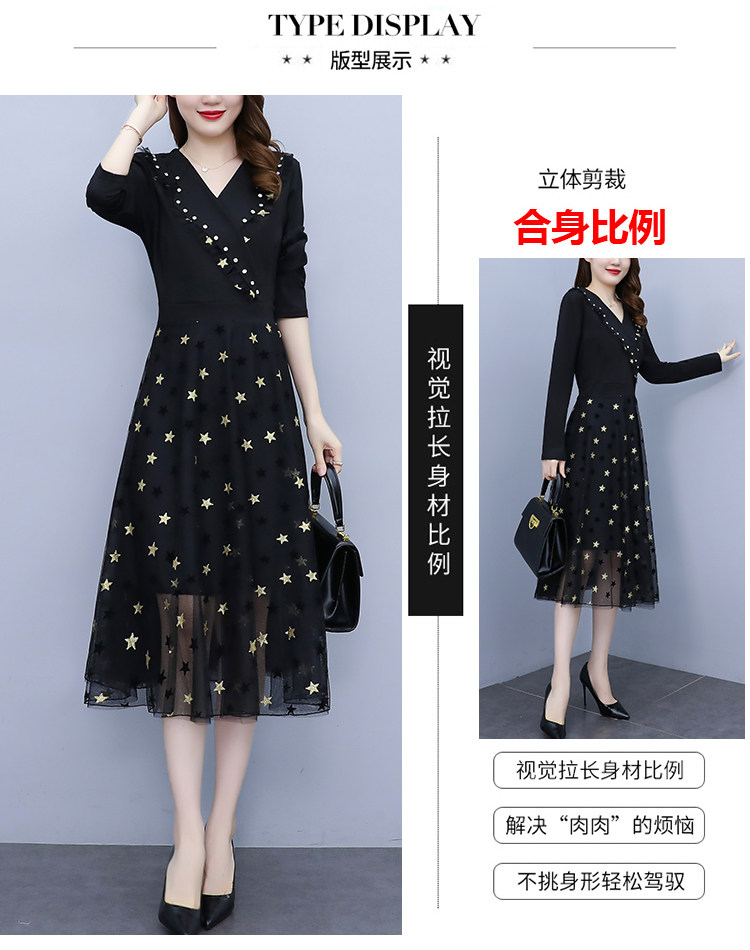 RM21051#韩版大码女装洋气减龄网纱拼接收腰显瘦时尚连衣裙