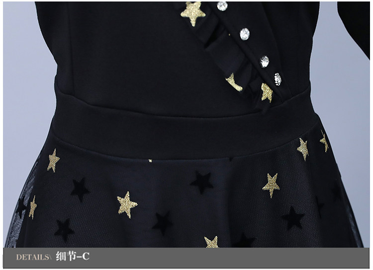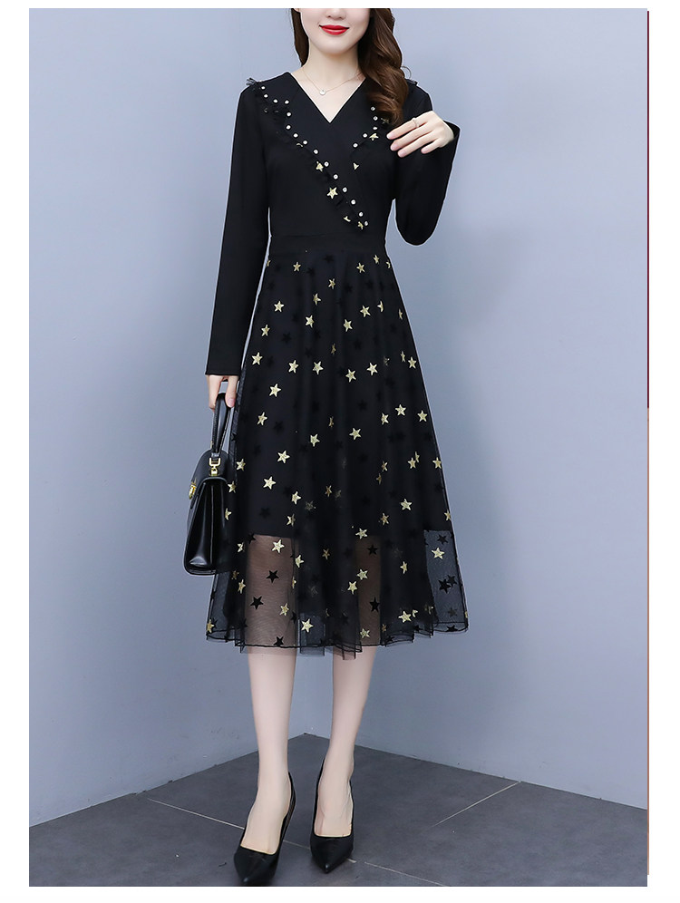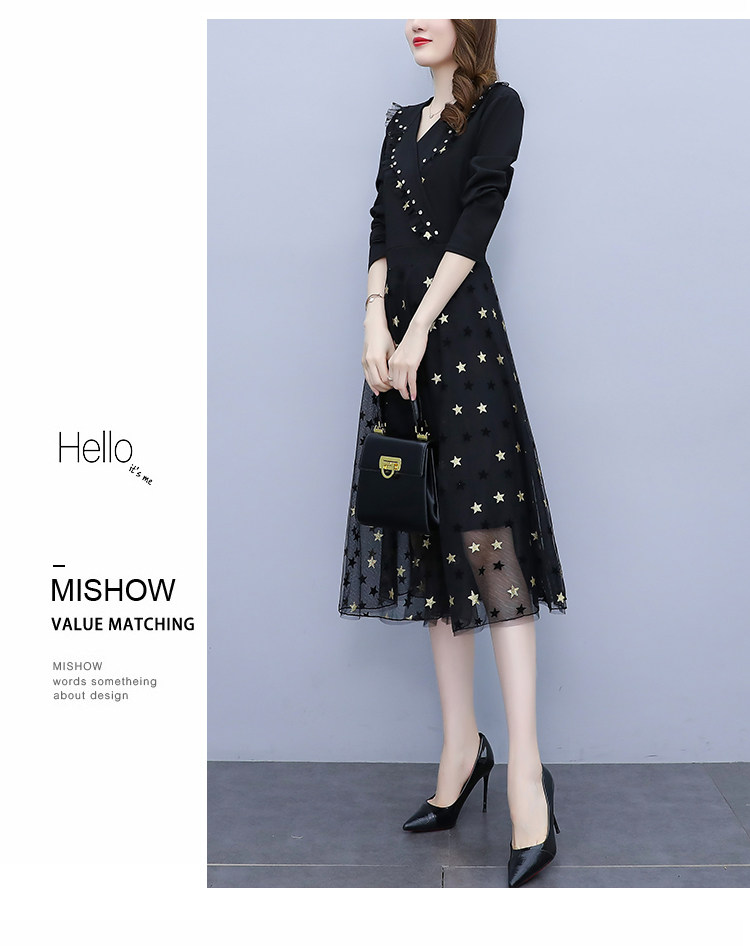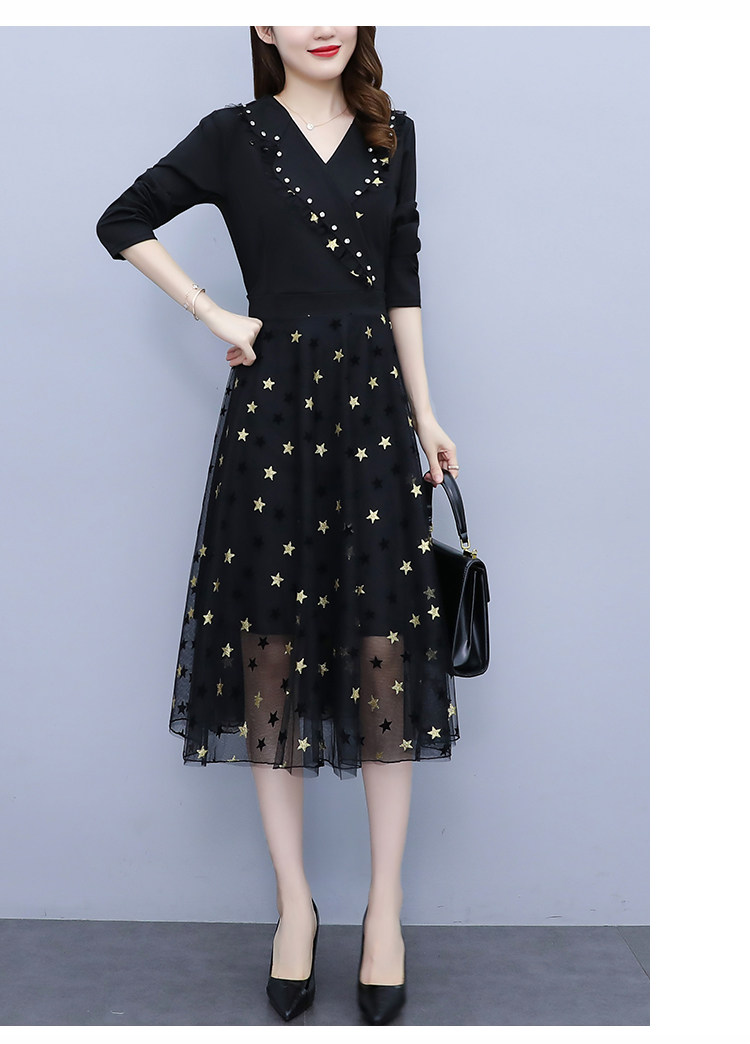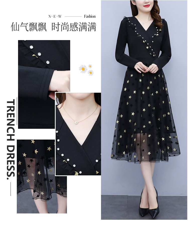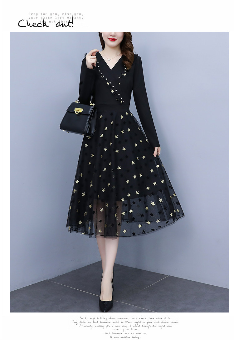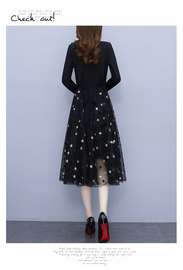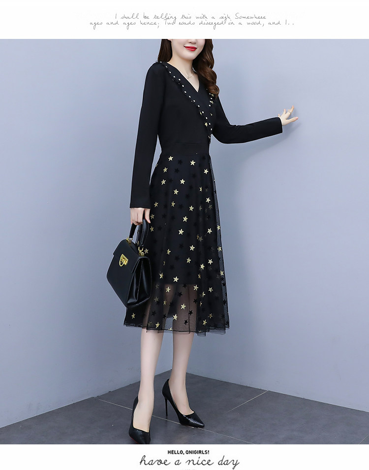 RM21051#韩版大码女装洋气减龄网纱拼接收腰显瘦时尚连衣裙
