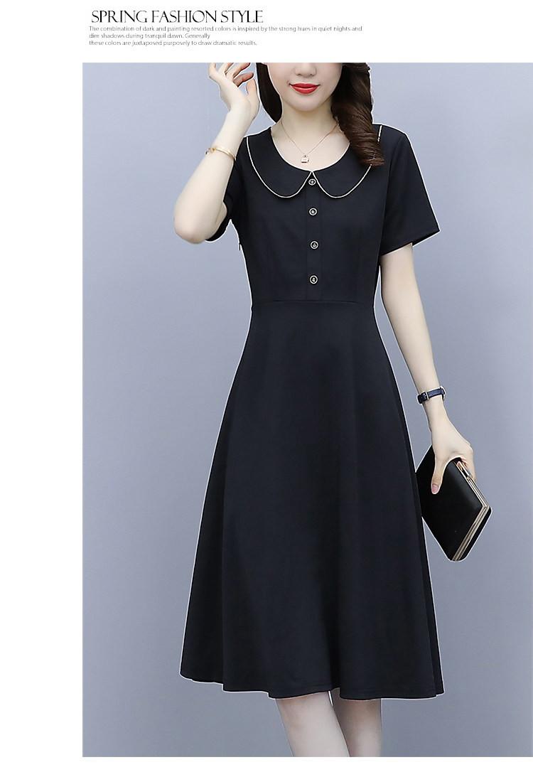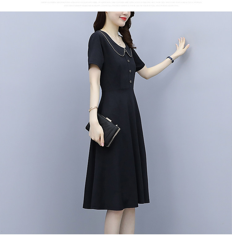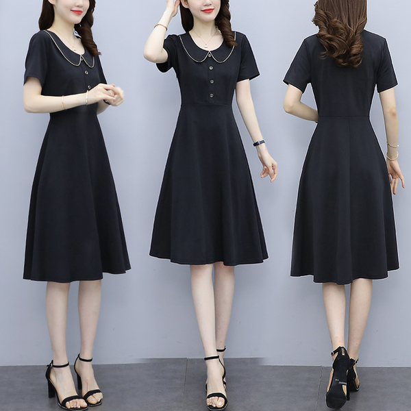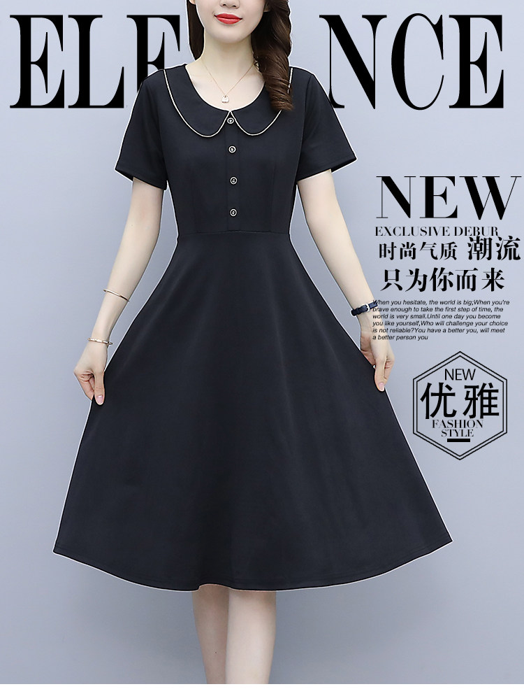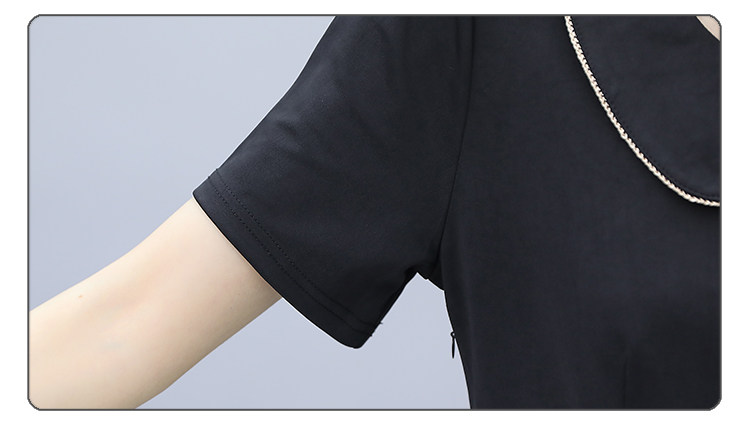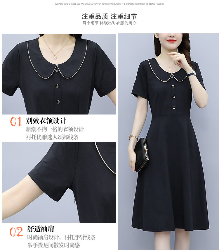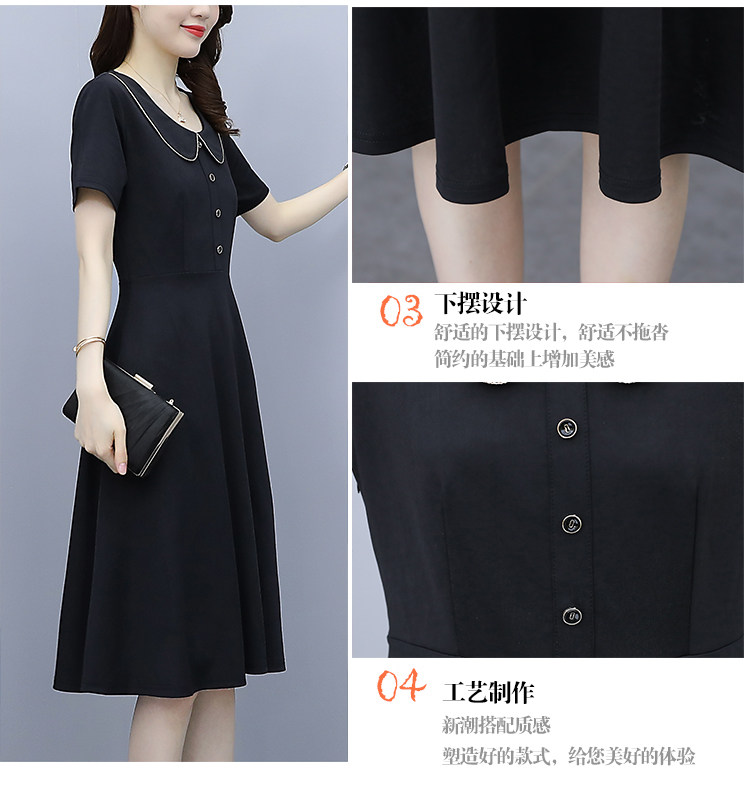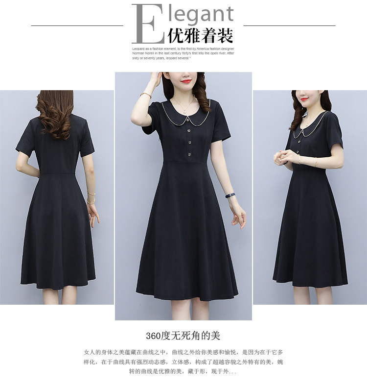 RM21265#夏季新款大码女装时尚洋气黑色修身显瘦短袖连衣裙