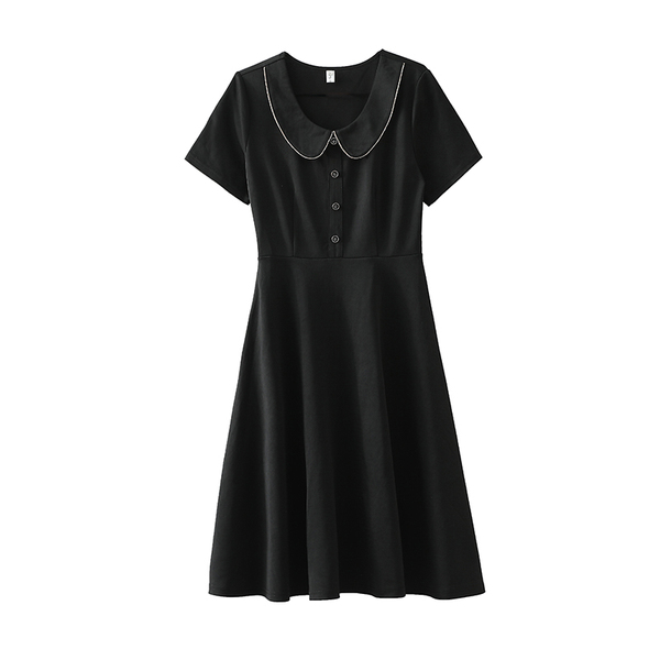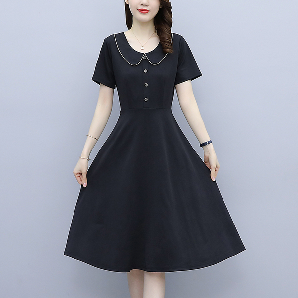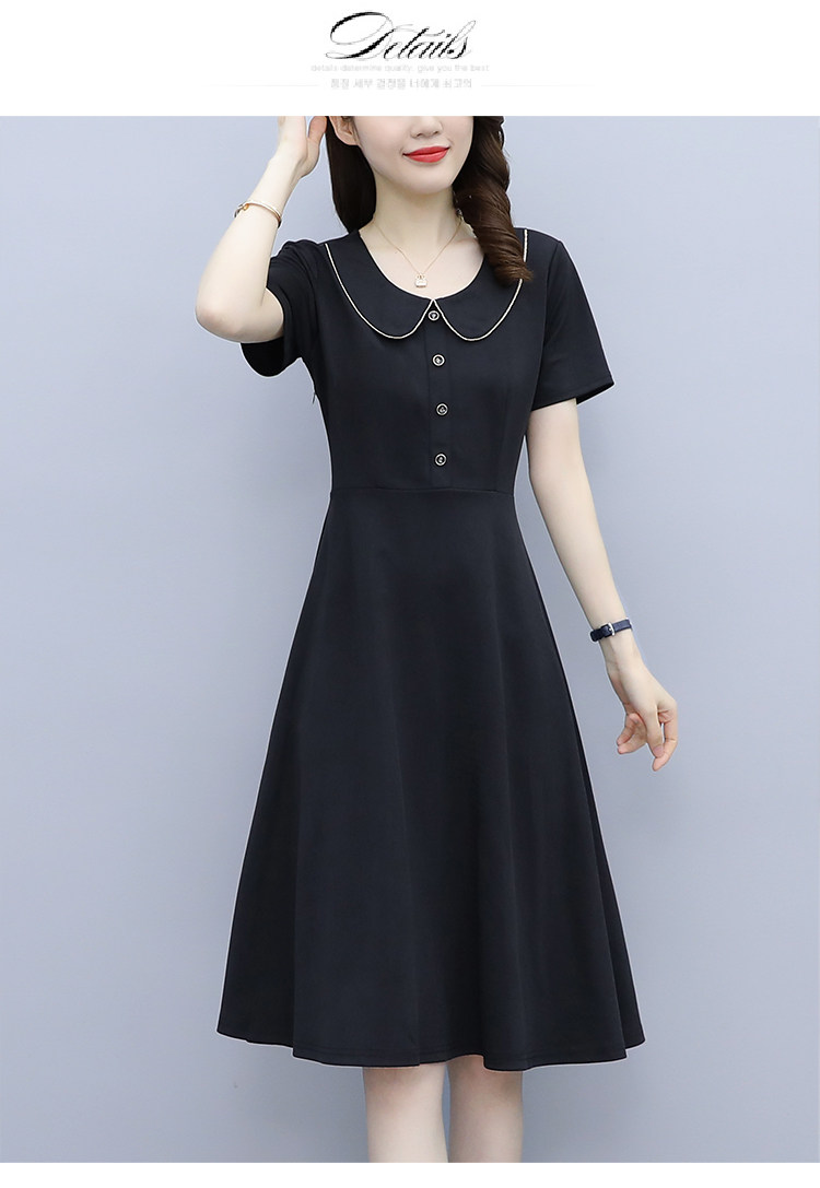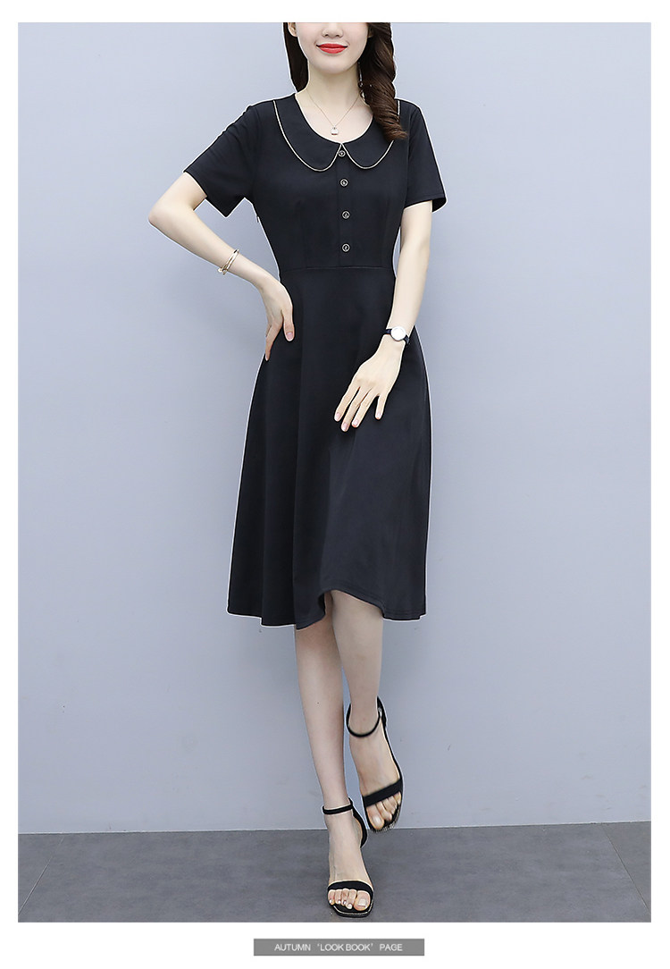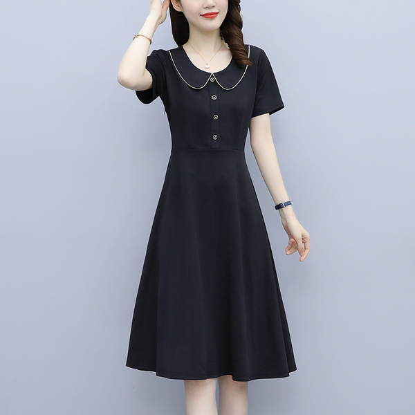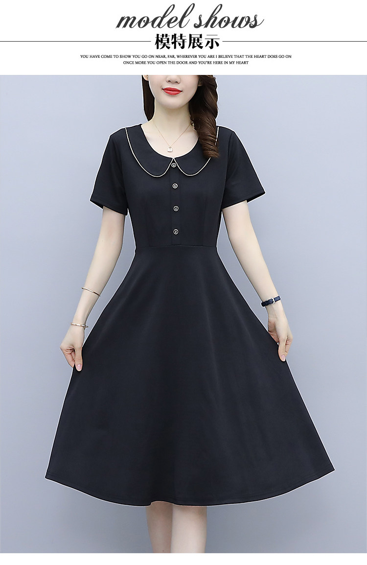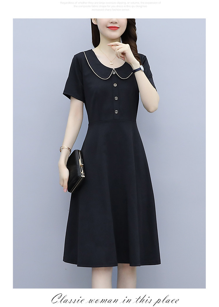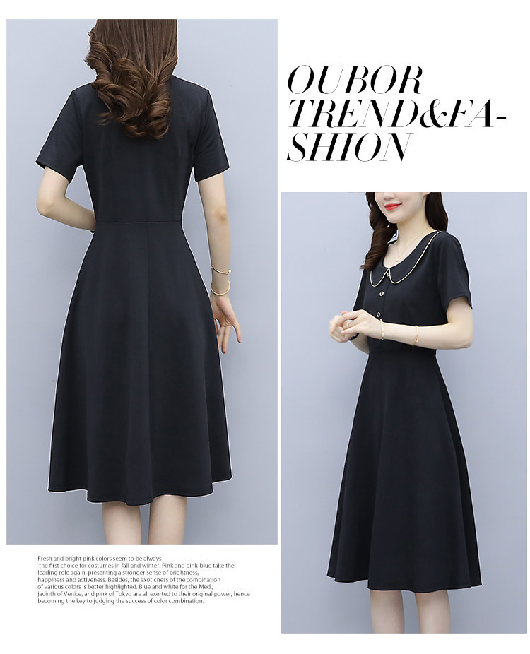 RM21265#夏季新款大码女装时尚洋气黑色修身显瘦短袖连衣裙