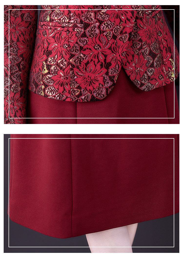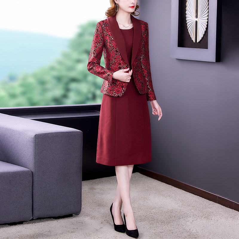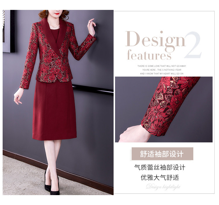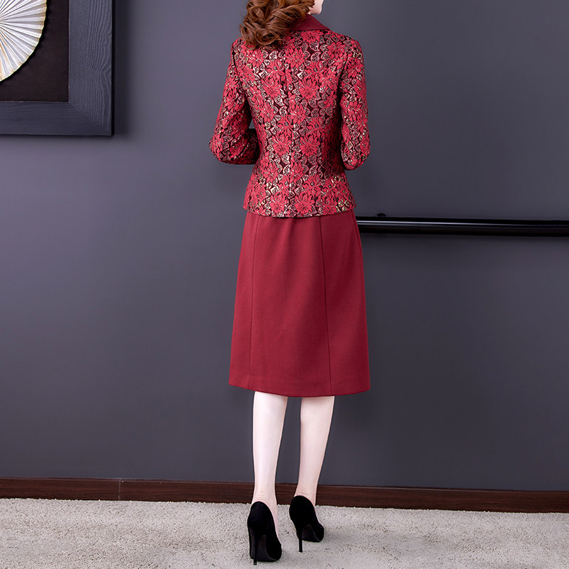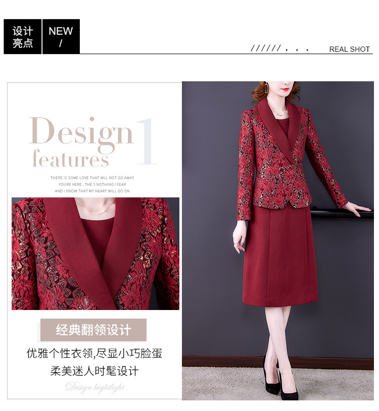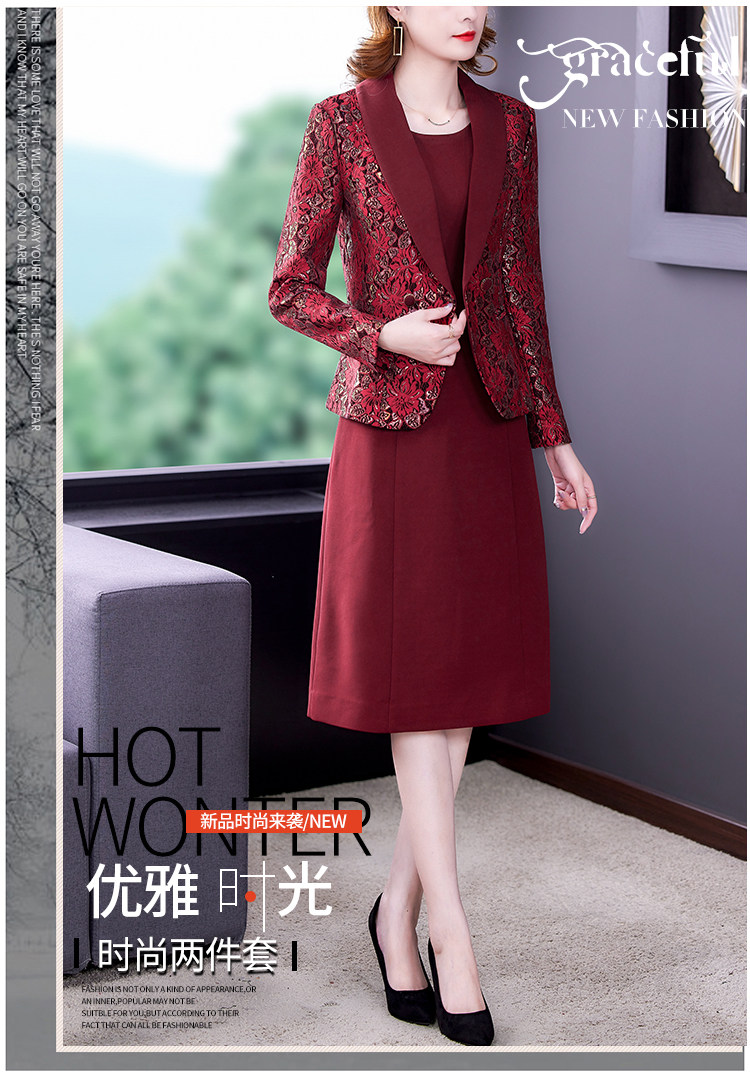 RM21285#红色小香风套装裙两件套秋装新款2023大码女装喜婆婆洋气修身套裙