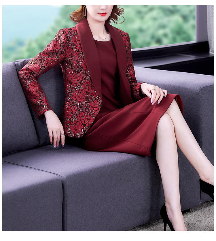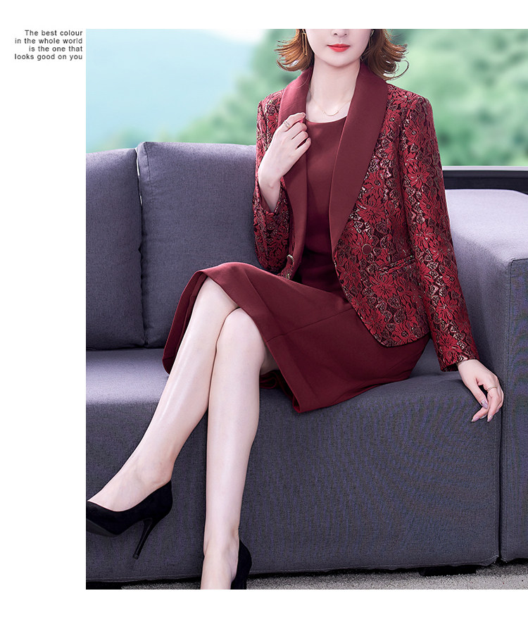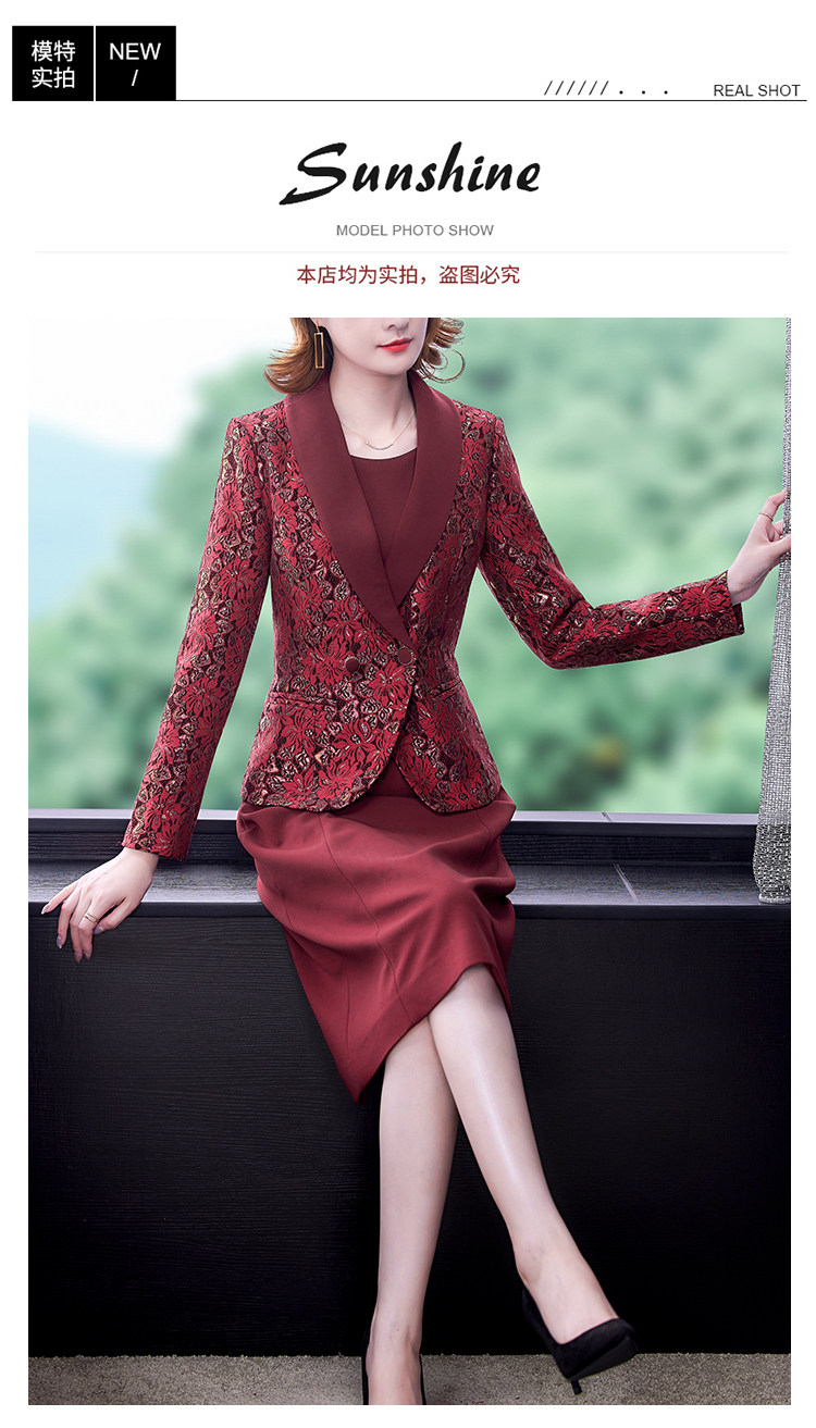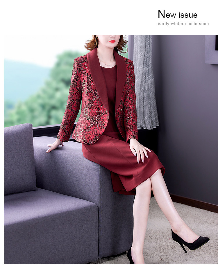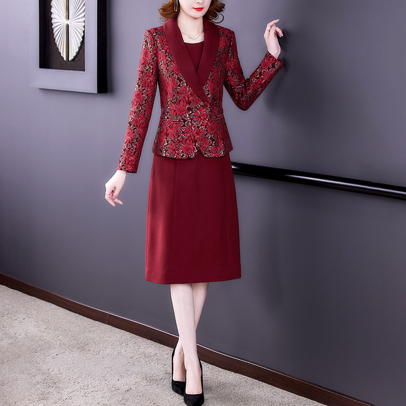 RM21285#红色小香风套装裙两件套秋装新款2023大码女装喜婆婆洋气修身套裙