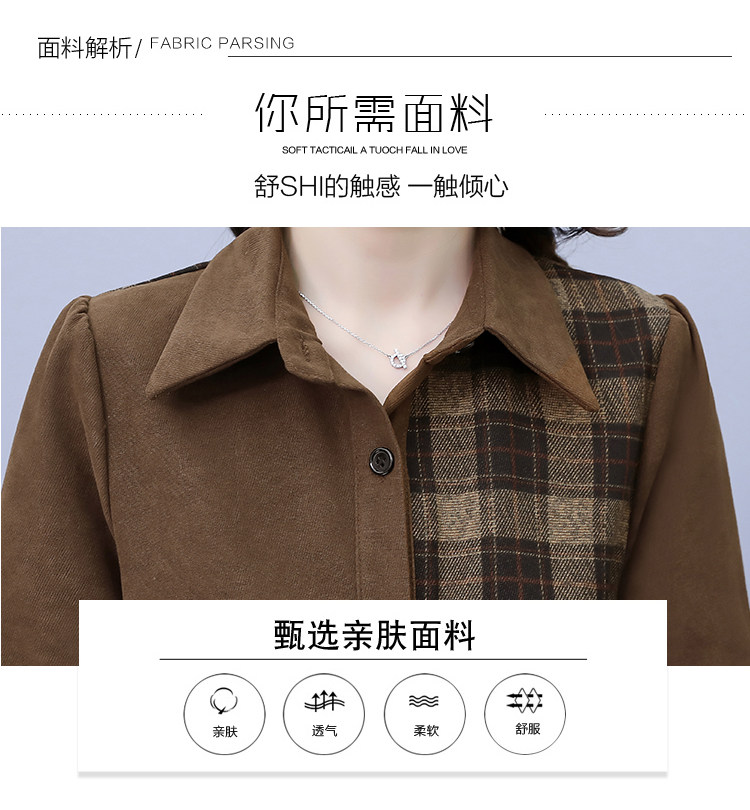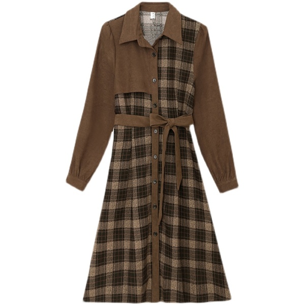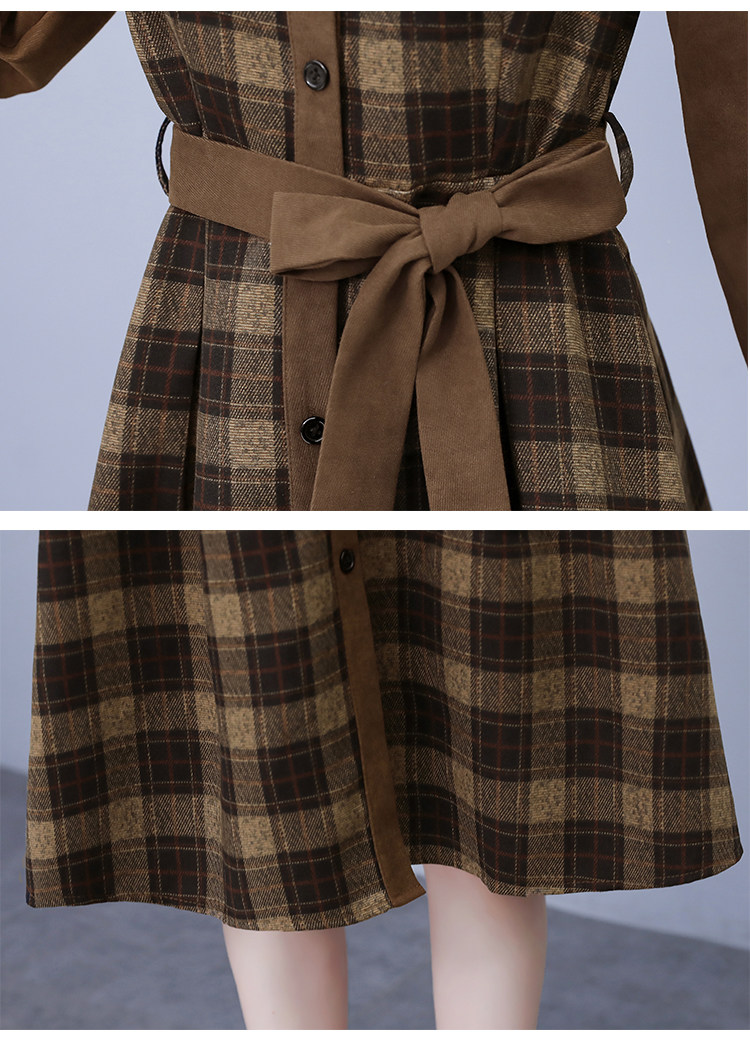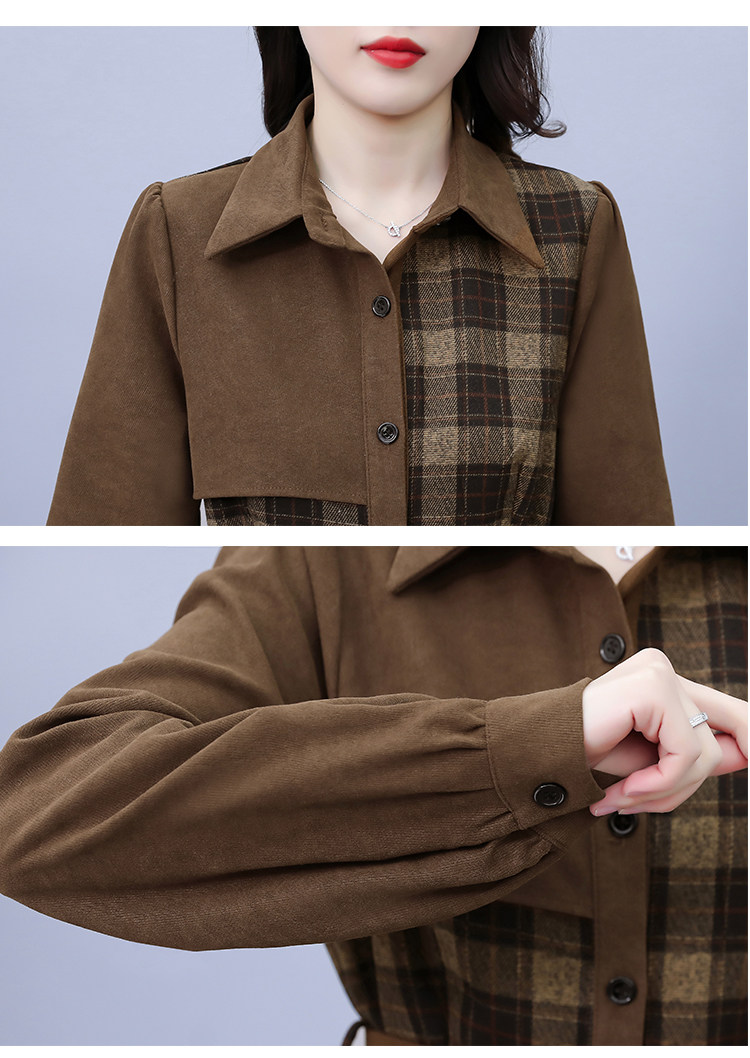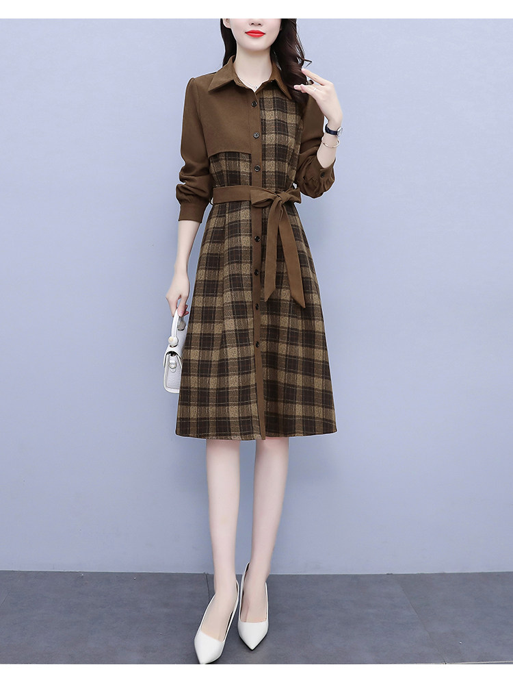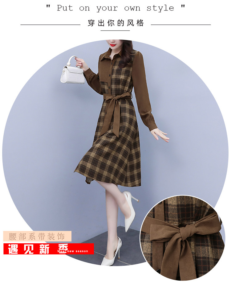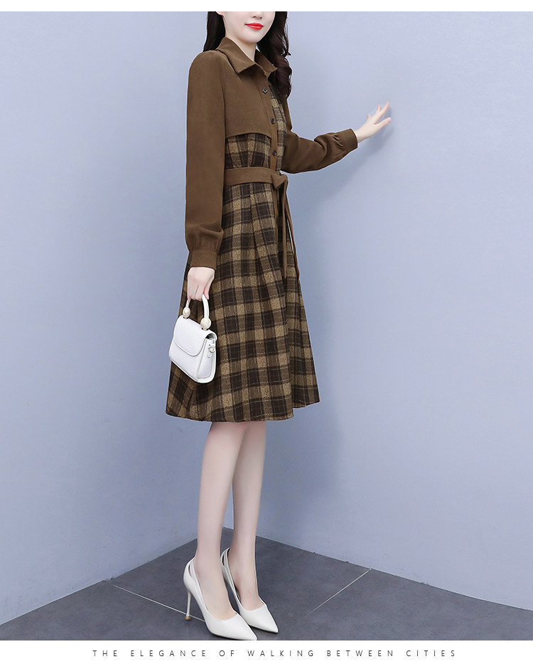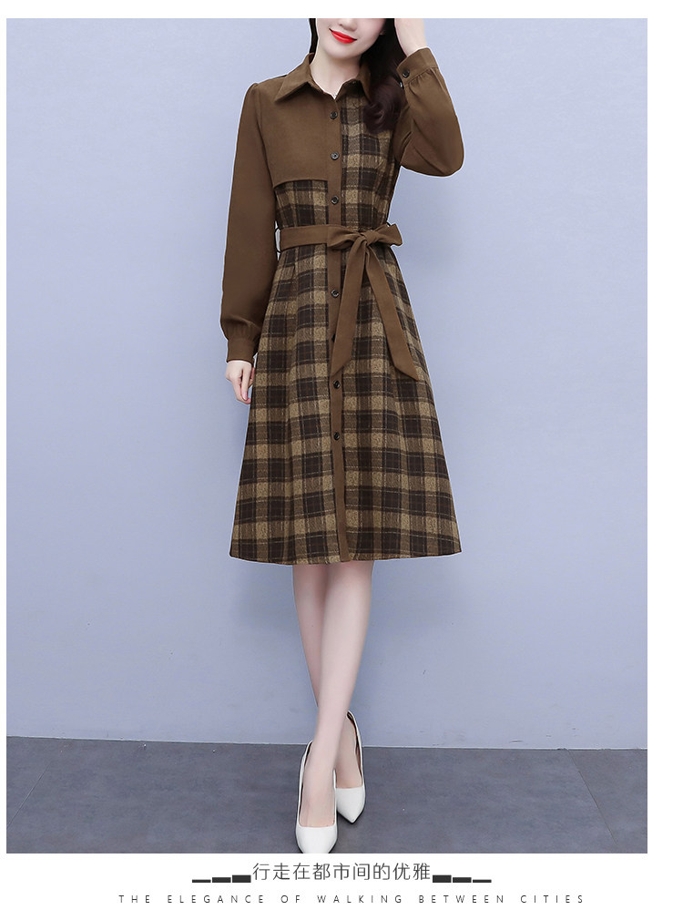 RM21299#大码女装百搭格纹撞色拼接套头衬衫领减龄显瘦连衣裙