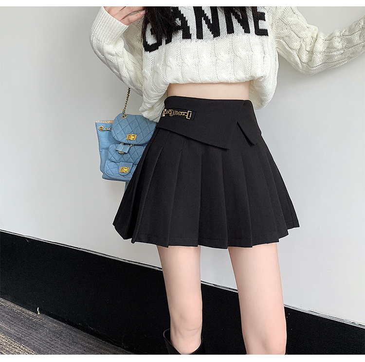 RM21470#胖MM秋冬新款减龄设计感遮肚子显瘦高腰百褶半身裙防走光短裙