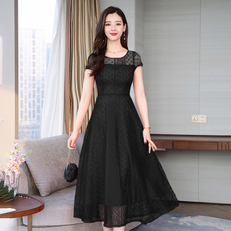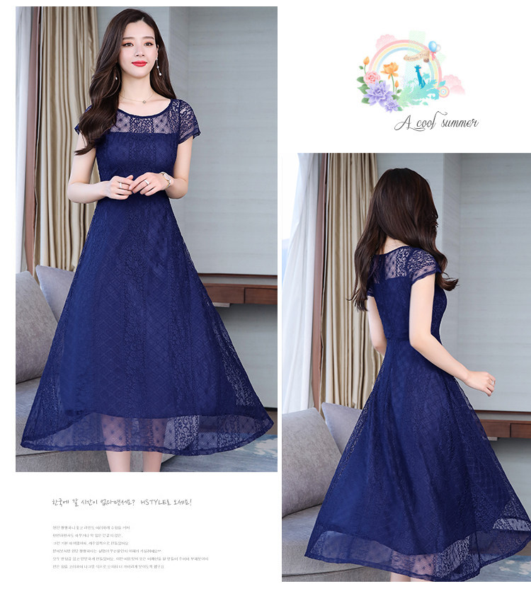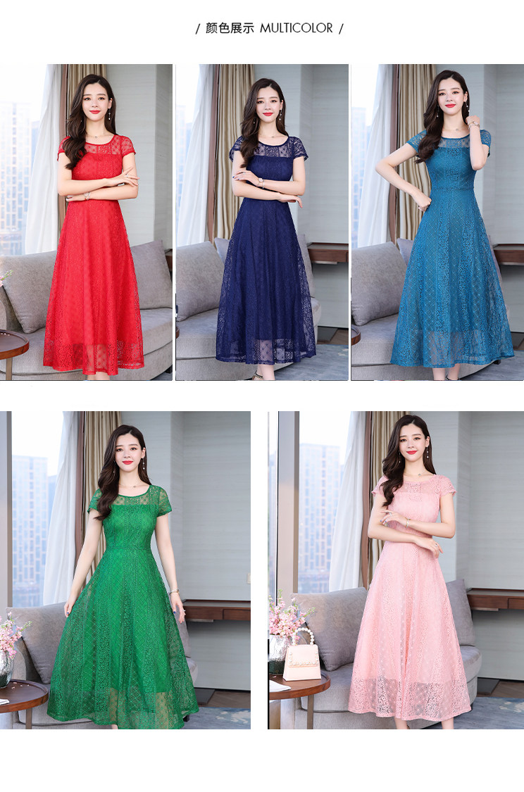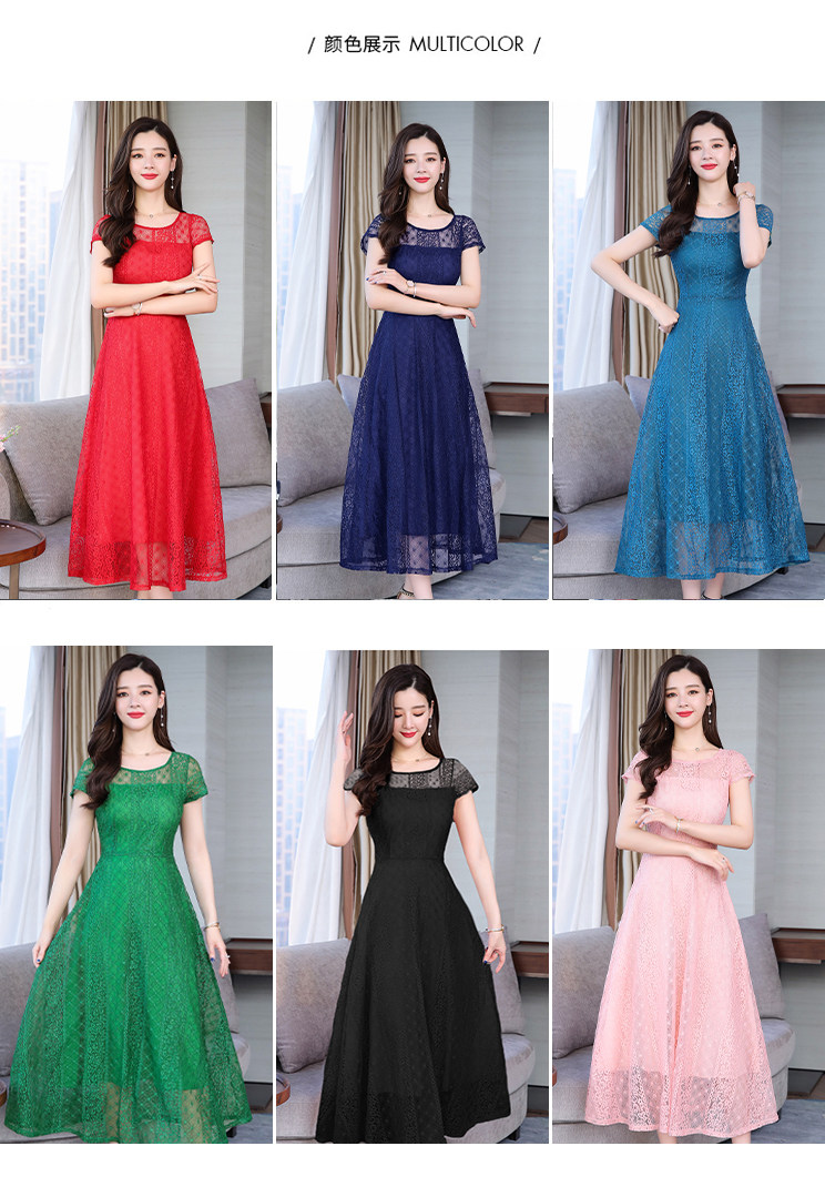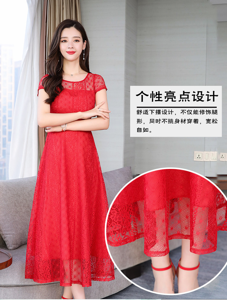 RY1725#加肥加大码女装胖mm夏装 打底衫女200斤宽松显瘦中长款蕾丝连衣裙