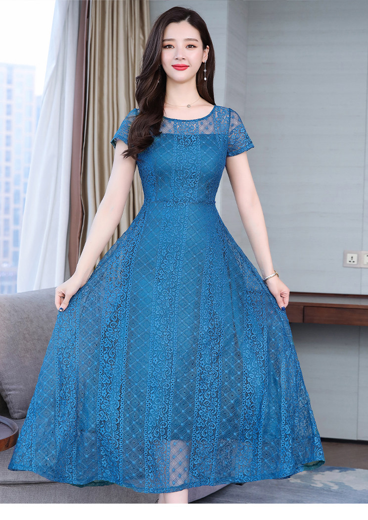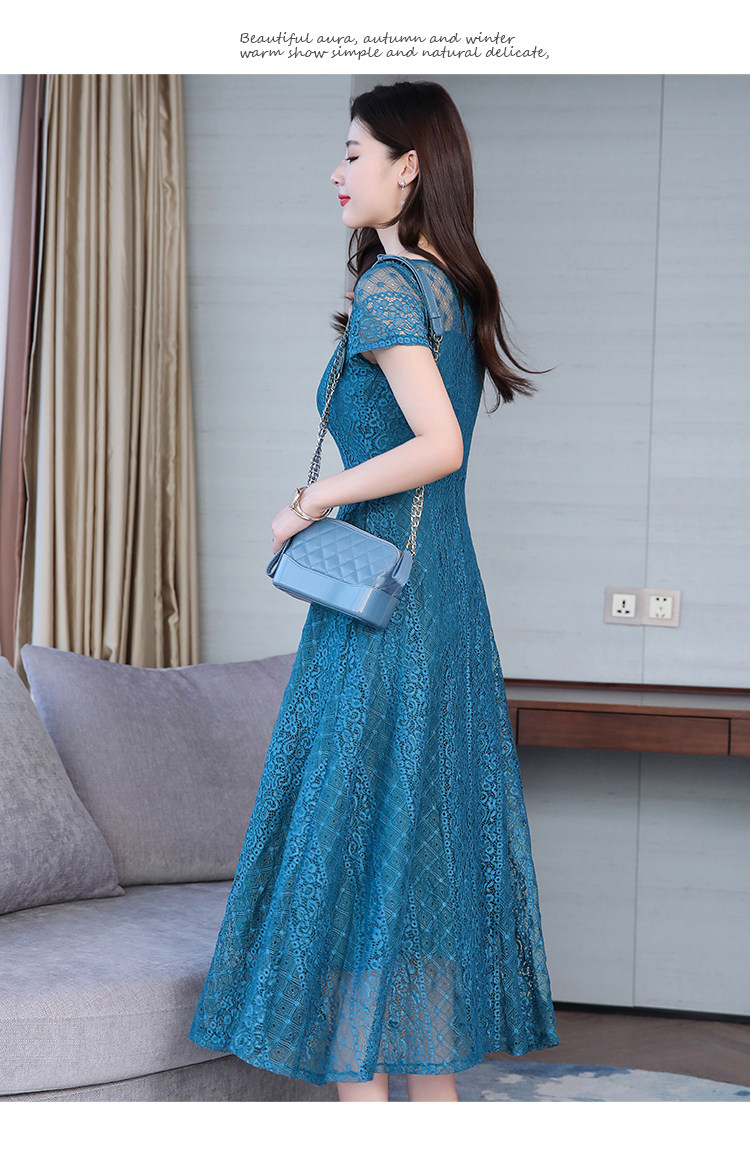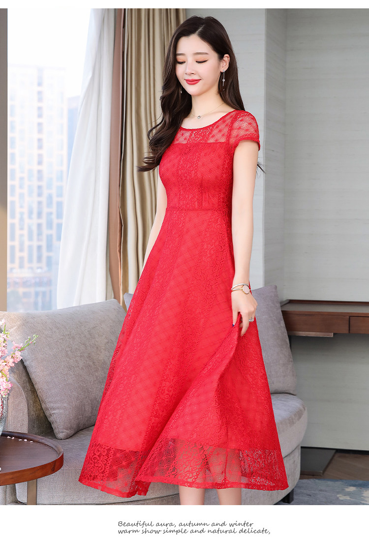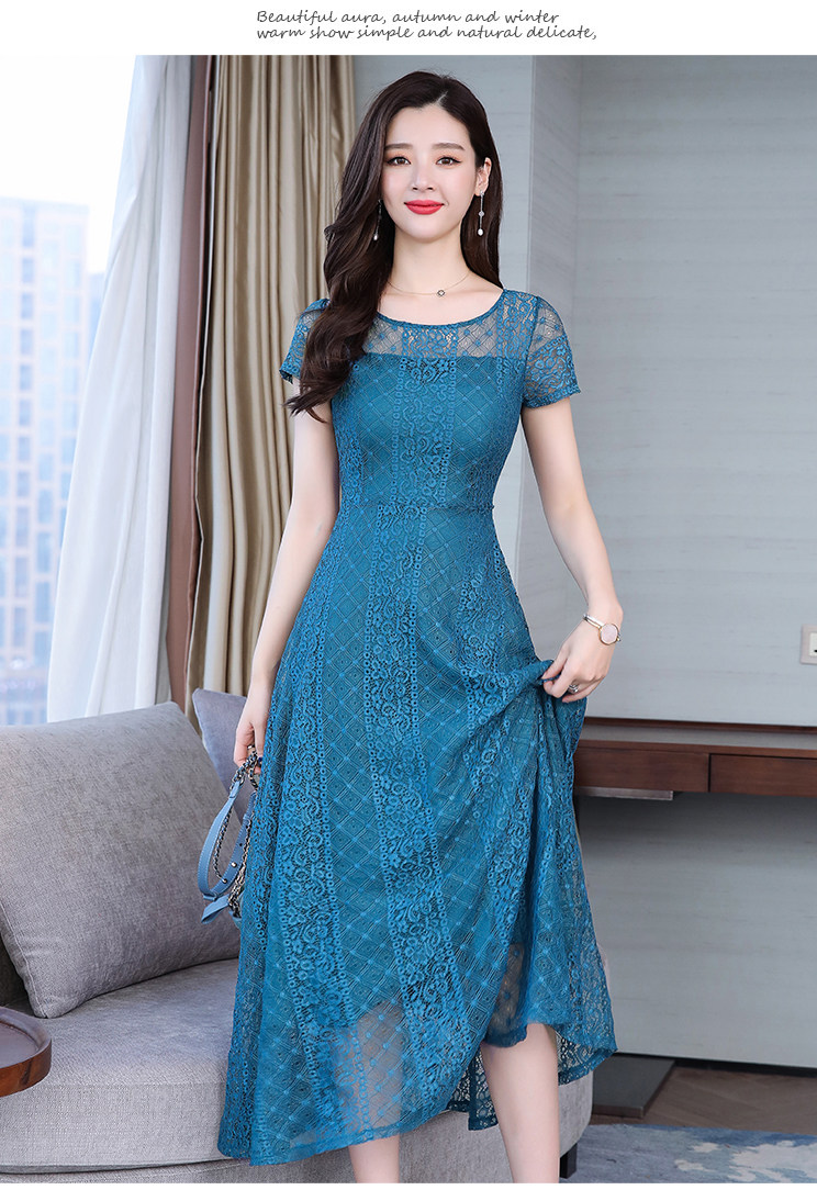 RY1725#加肥加大码女装胖mm夏装 打底衫女200斤宽松显瘦中长款蕾丝连衣裙