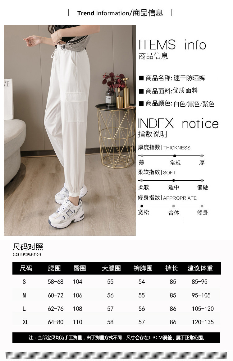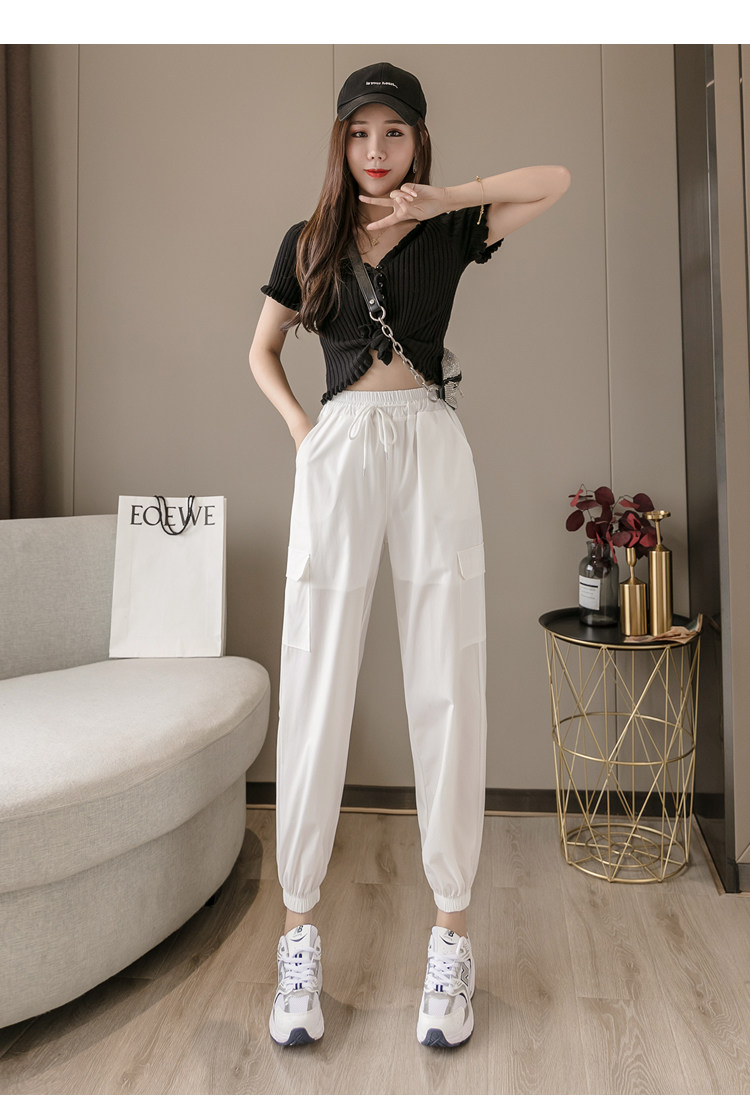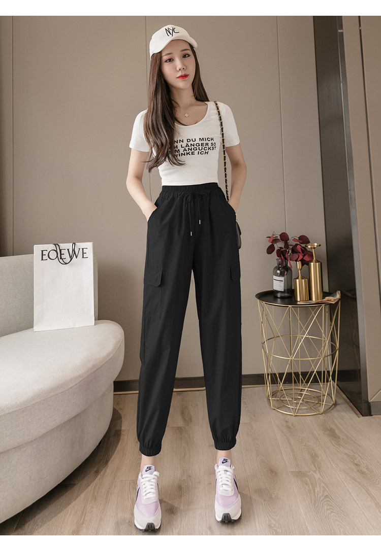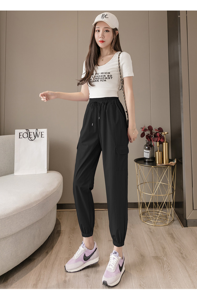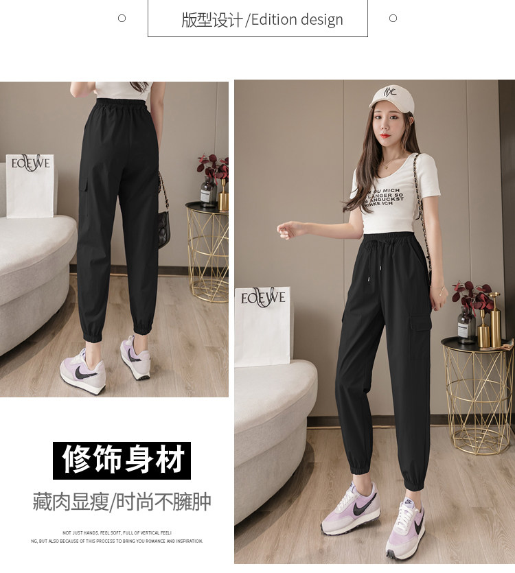 RY1731#速干防晒裤松紧腰宽松束脚九分裤轻薄透气休闲运动裤
